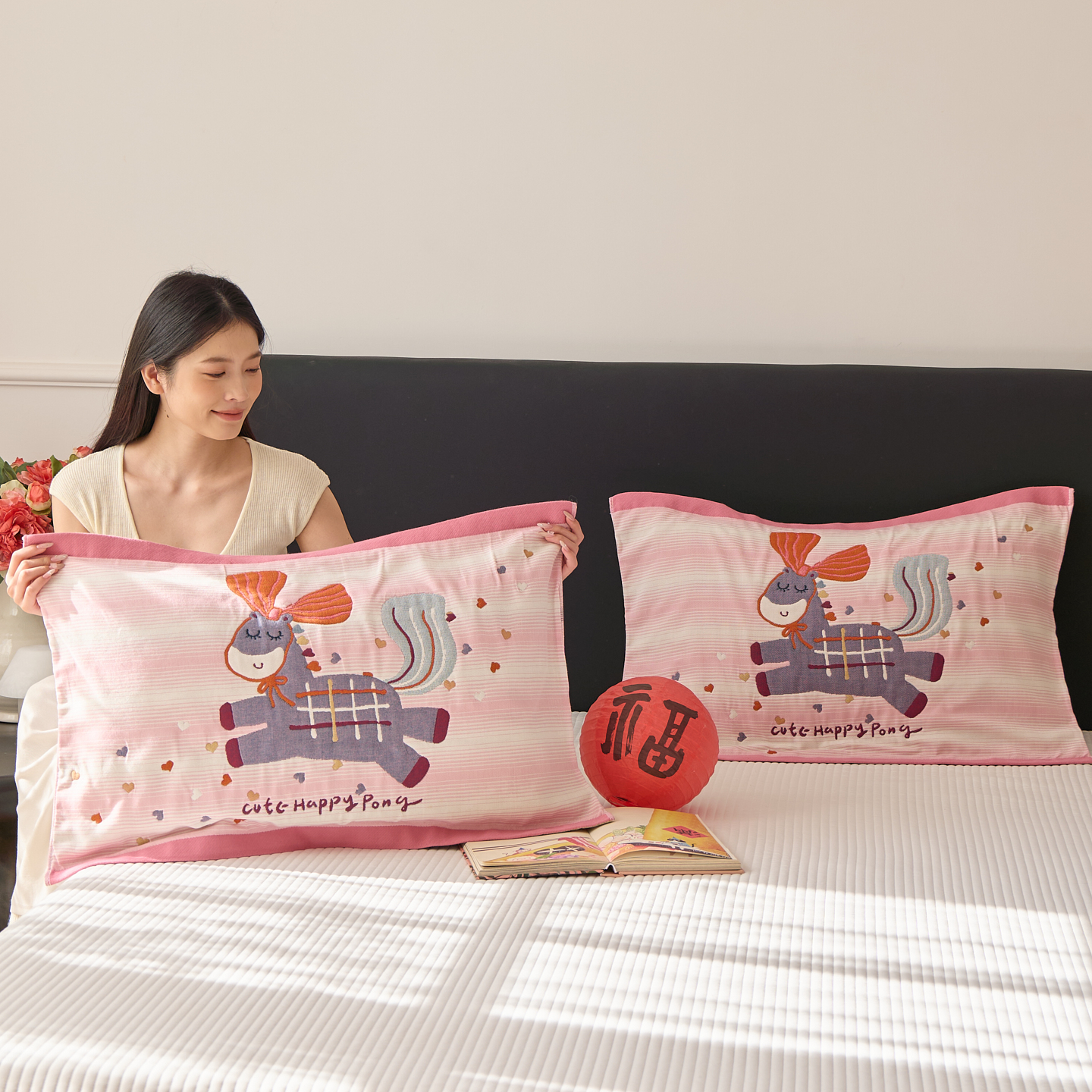 商品名称:沐瑟家纺 2026新款纯棉八层枕巾-马 恋爱马粉