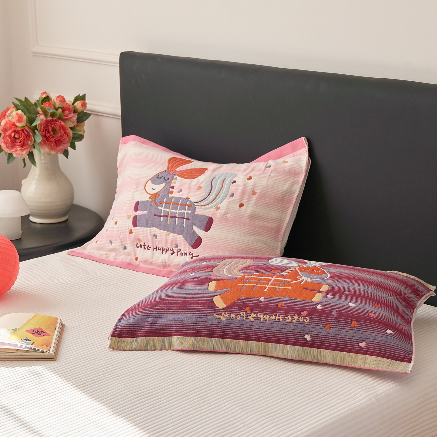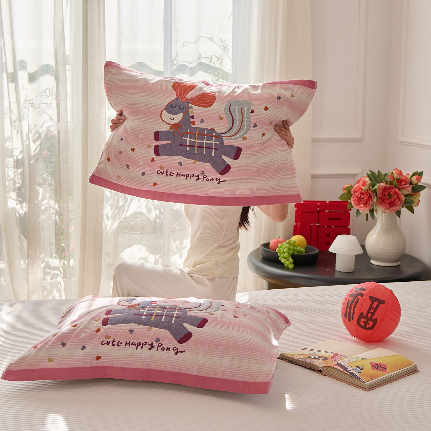 沐瑟家纺 2026新款纯棉八层枕巾-马 恋爱马粉