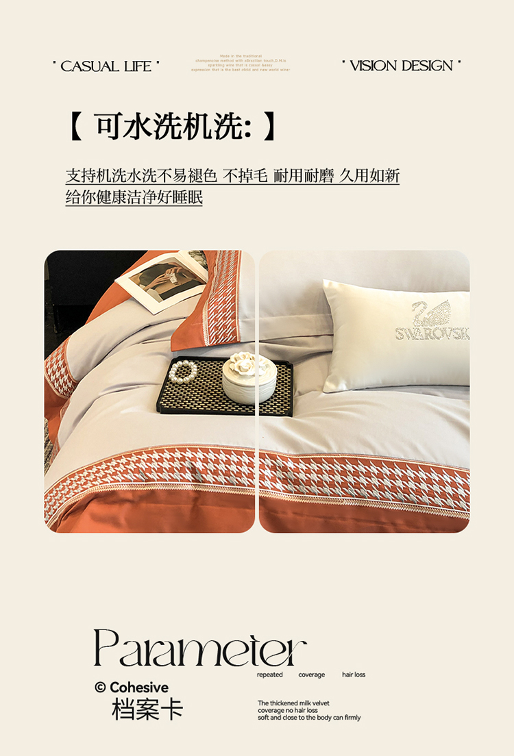 当前位置: 91家纺网 > 商品网购 > 床品套件 > 四件套 > 贡缎全棉四件套 > (可开发票)高档礼盒装超柔超细旦50S长绒棉磨毛刺绣四件套全棉100%纯棉秋冬加厚床品 淡雅灰-千鸟格-A类超细旦超柔长绒棉