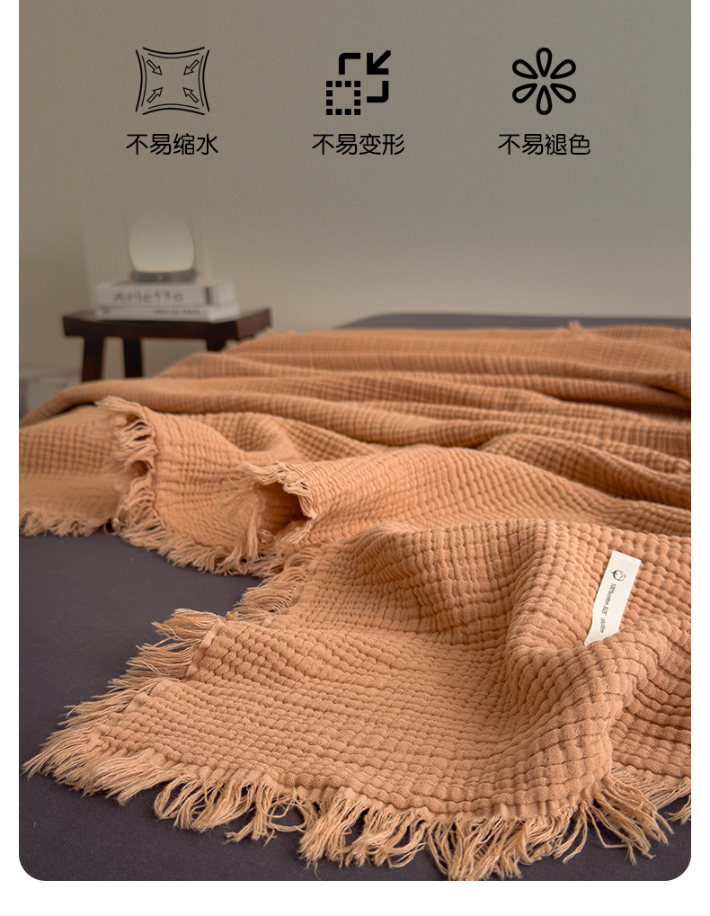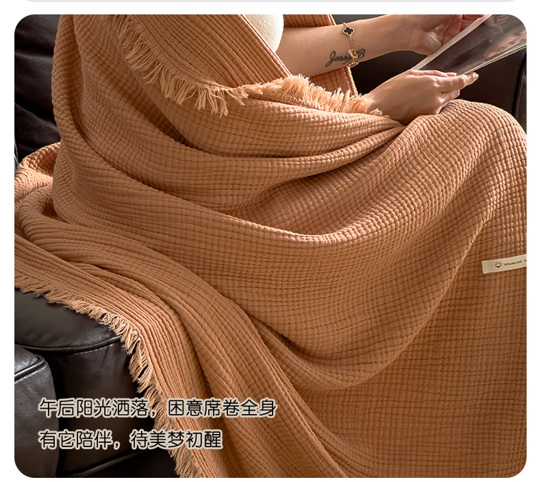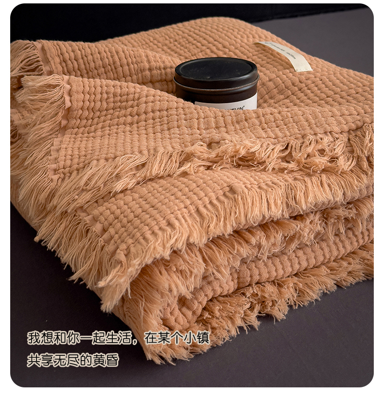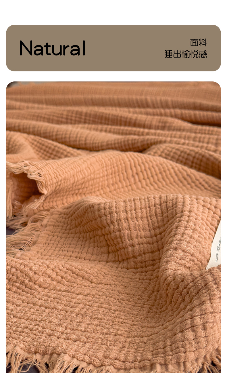 商品名称:兄弟坊 2026新款美拉德全棉夏被纱布毯空调毯飞机毯 雅居-焦枣色