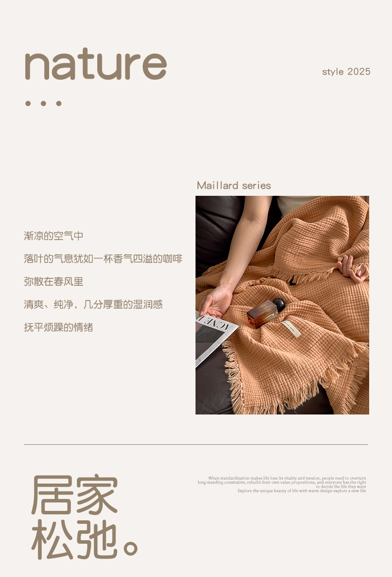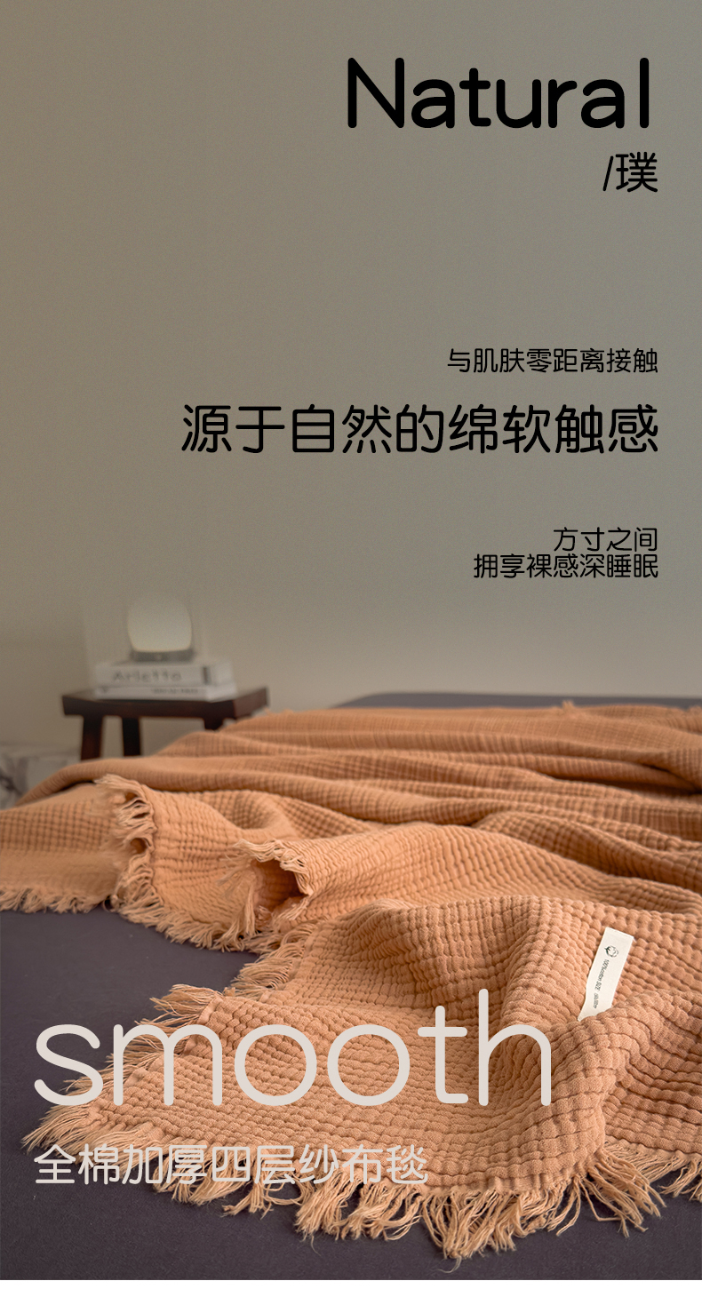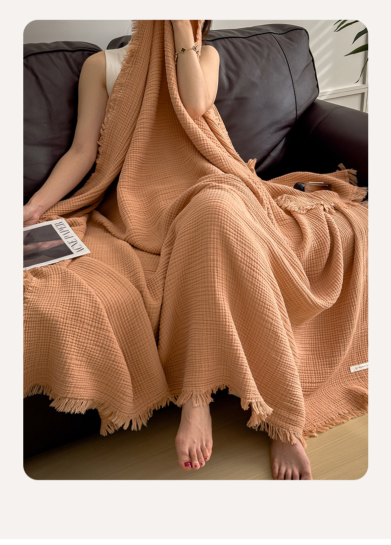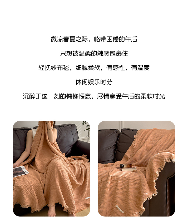 商品名称:兄弟坊 2026新款美拉德全棉夏被纱布毯空调毯飞机毯 雅居-焦枣色
