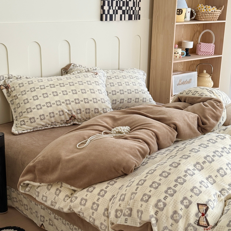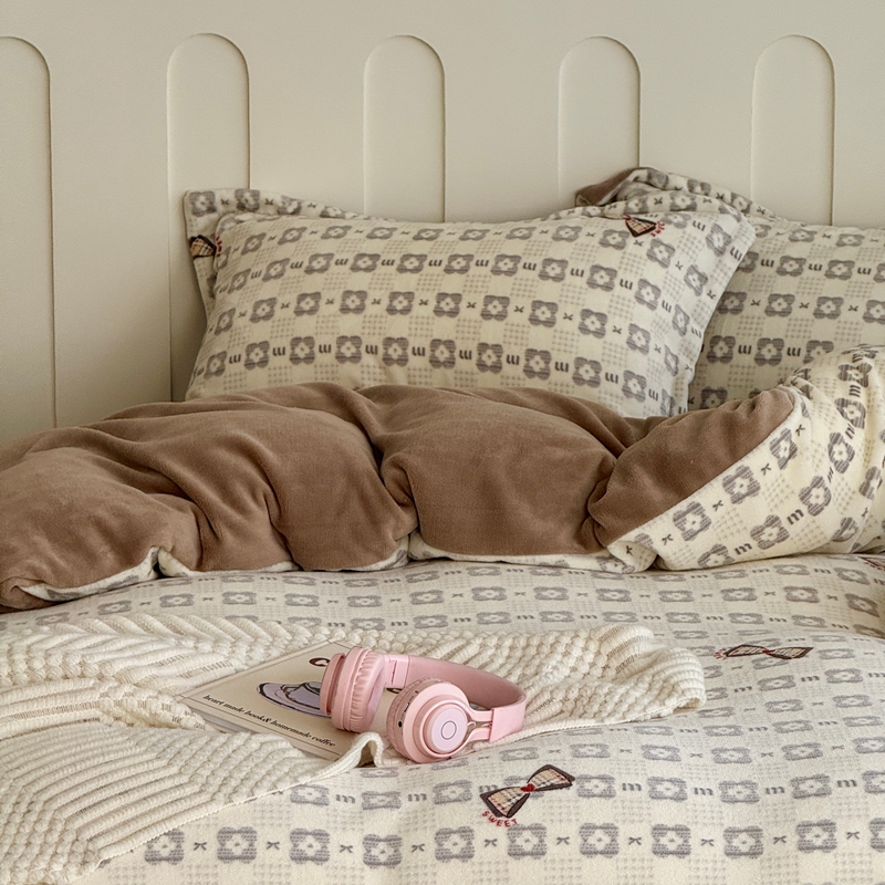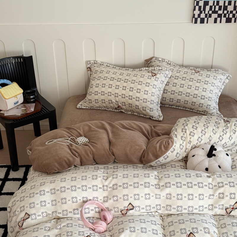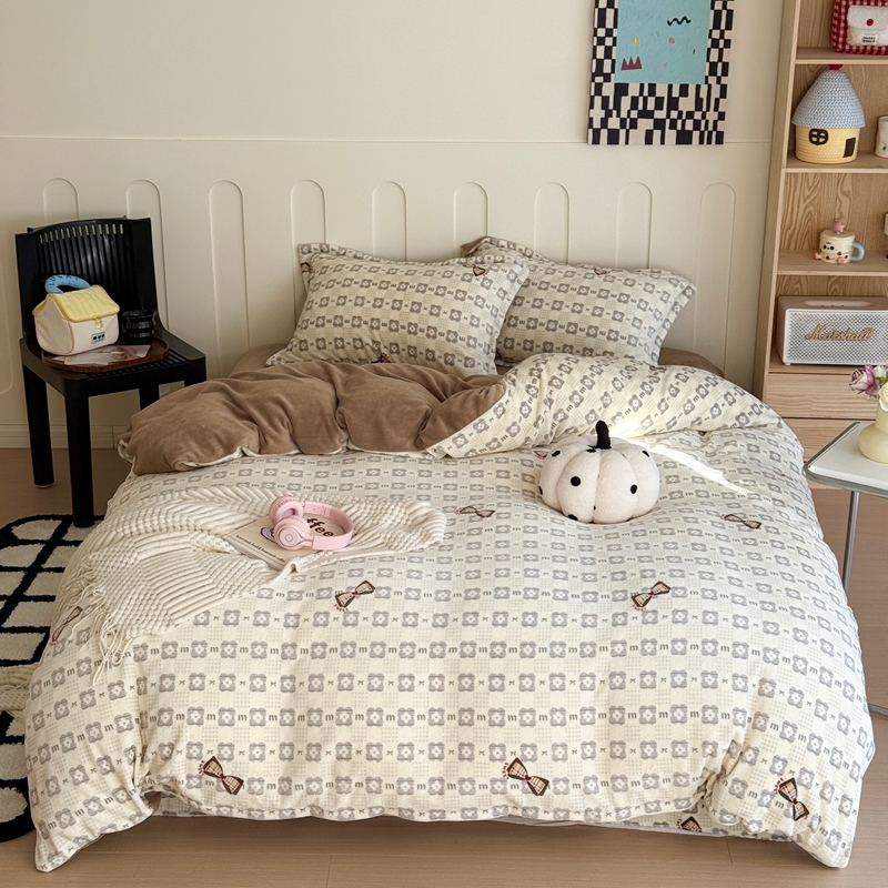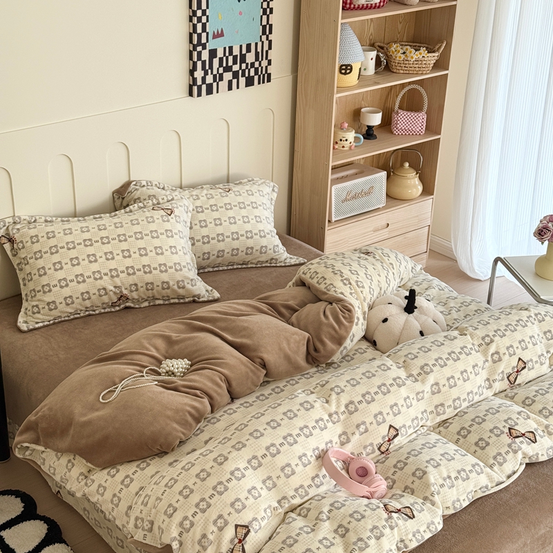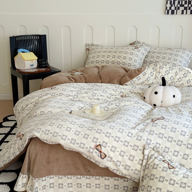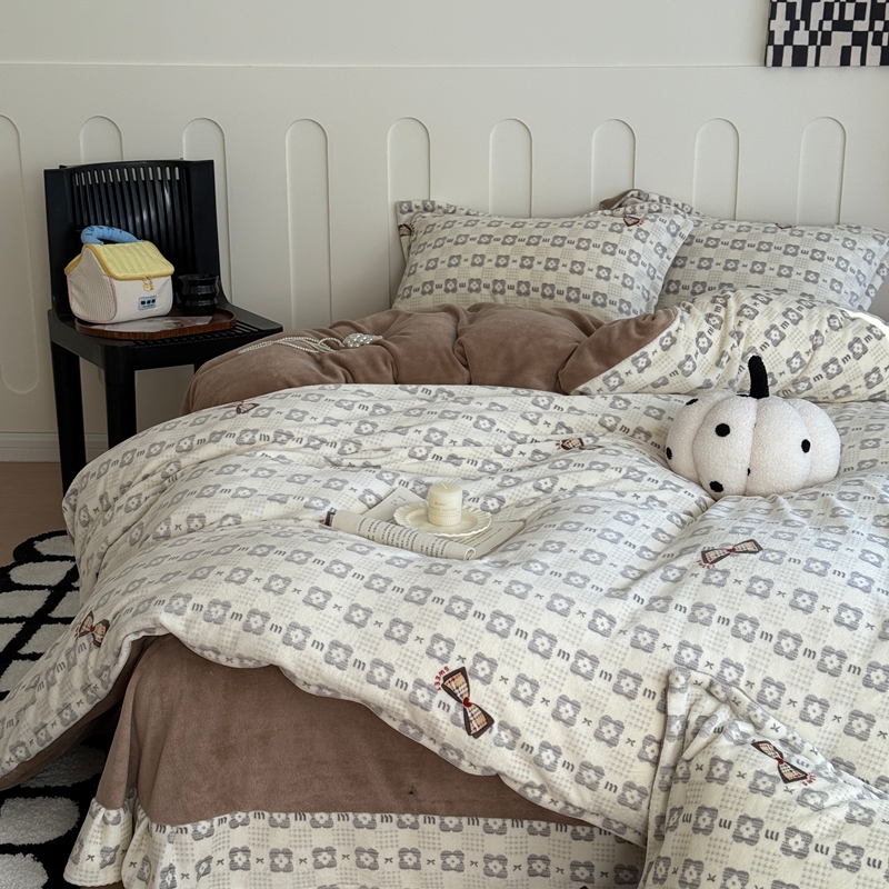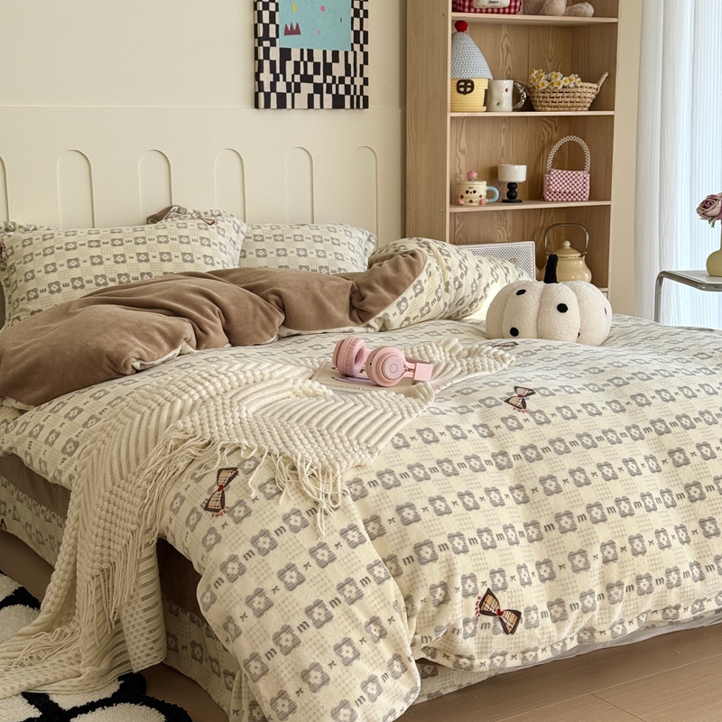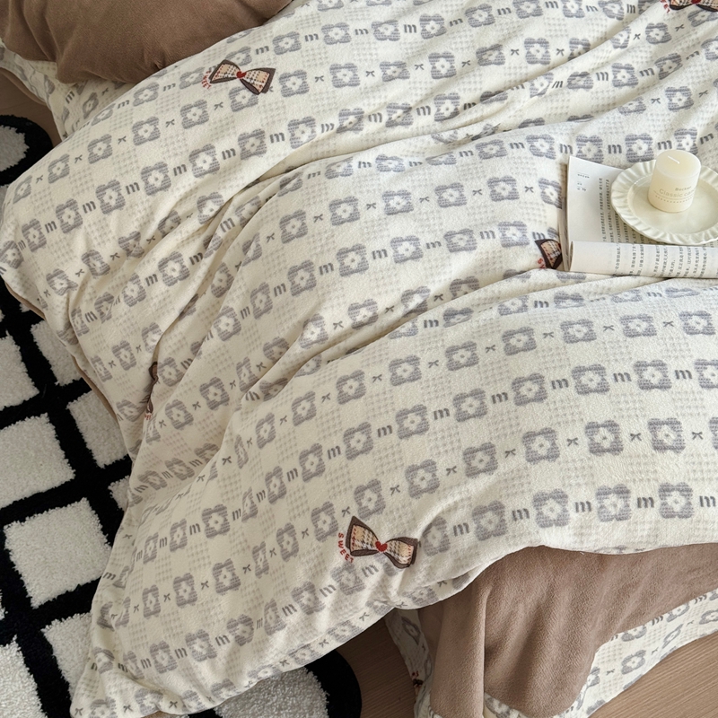 于果 2025新款牛奶绒印花四件套 蝴蝶结