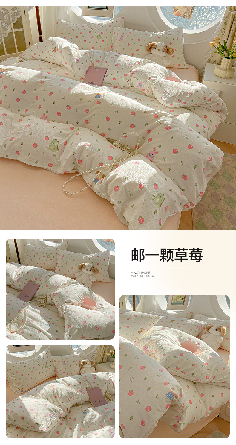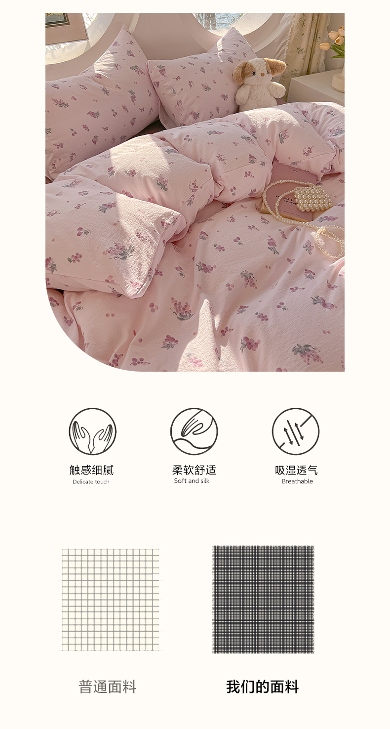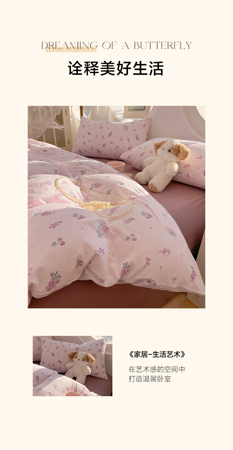 当前位置: 91家纺网 > 商品网购 > 床品套件 > 四件套 > 其它四件套 > 韩巢家纺 2025新款奶呼呼云感双层纱印花四件套 葡萄七分甜