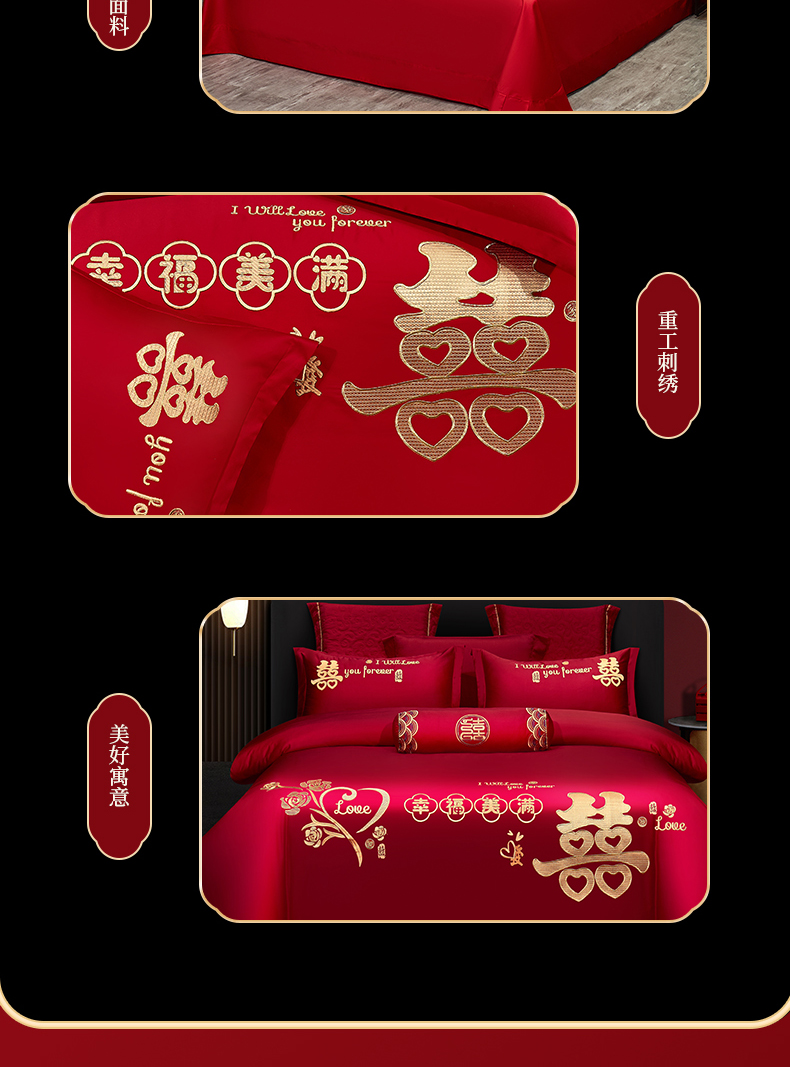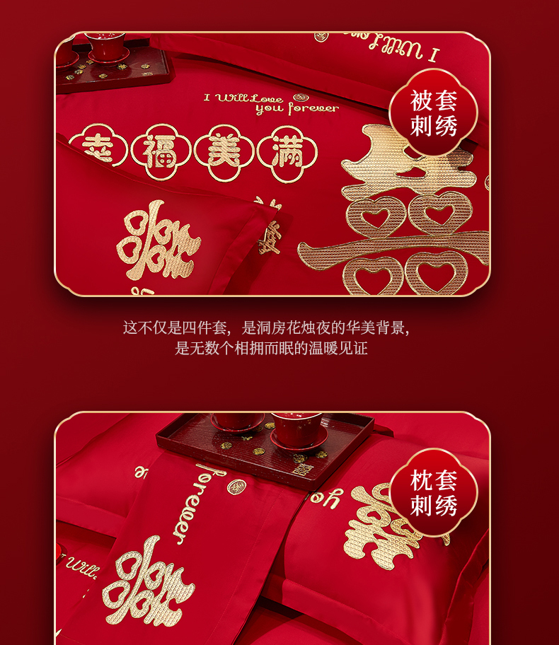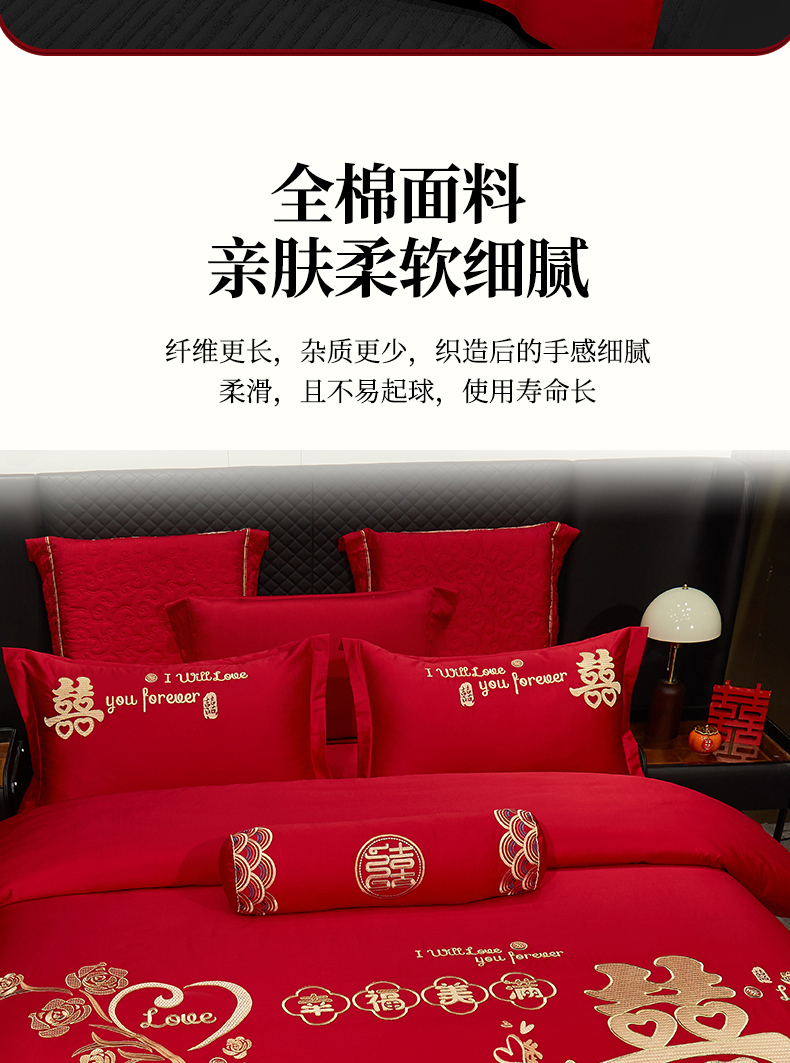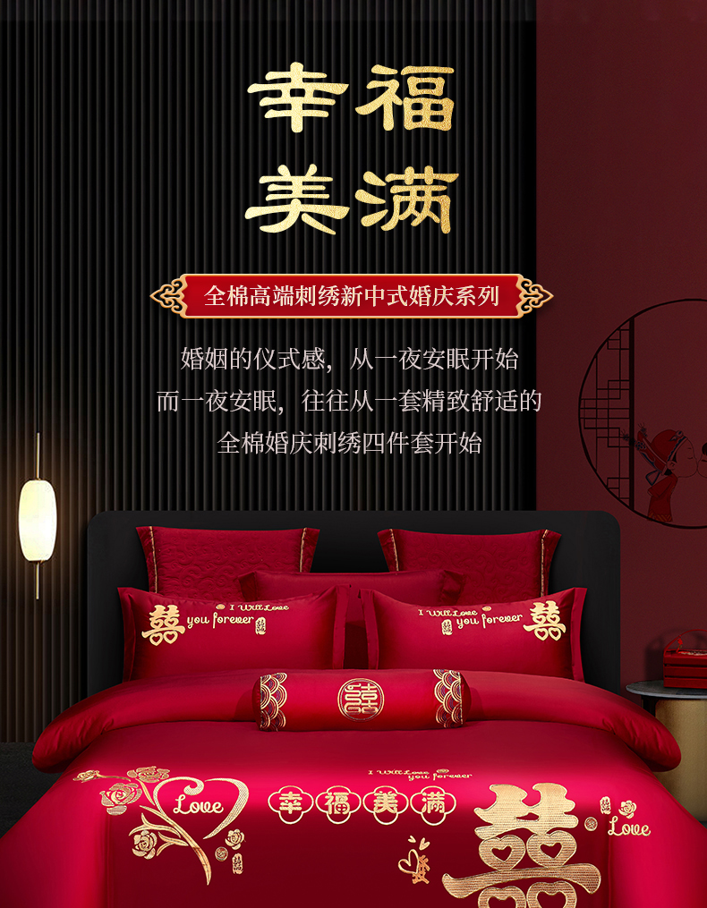 当前位置: 91家纺网 > 商品网购 > 床品套件 > 四件套 > 婚庆四件套 > 浩情国际婚庆供货中心 2026新款100%全棉长绒棉纯棉婚庆四件套结婚刺绣六件套多件套长期供货 幸福美满