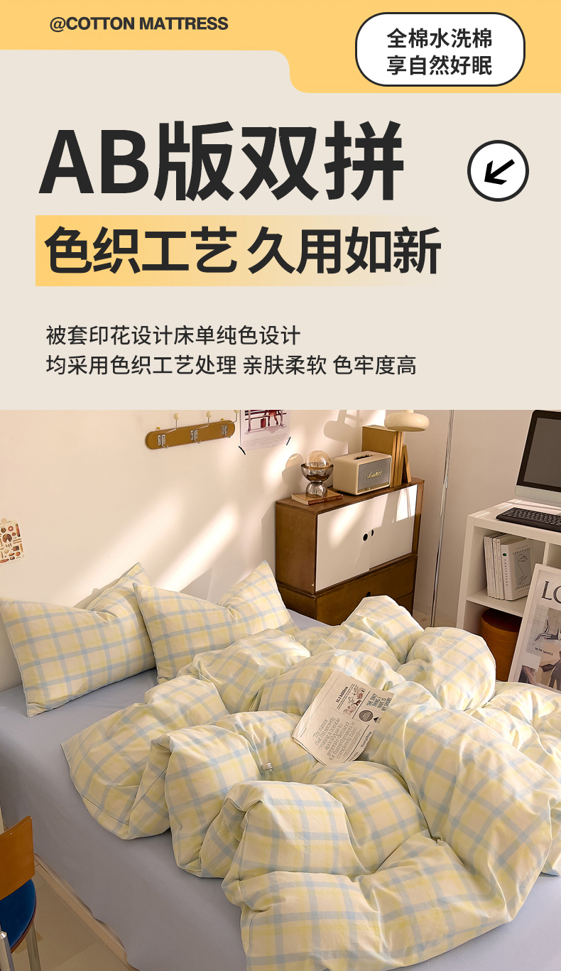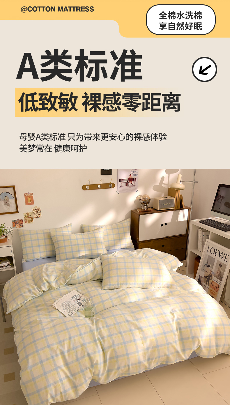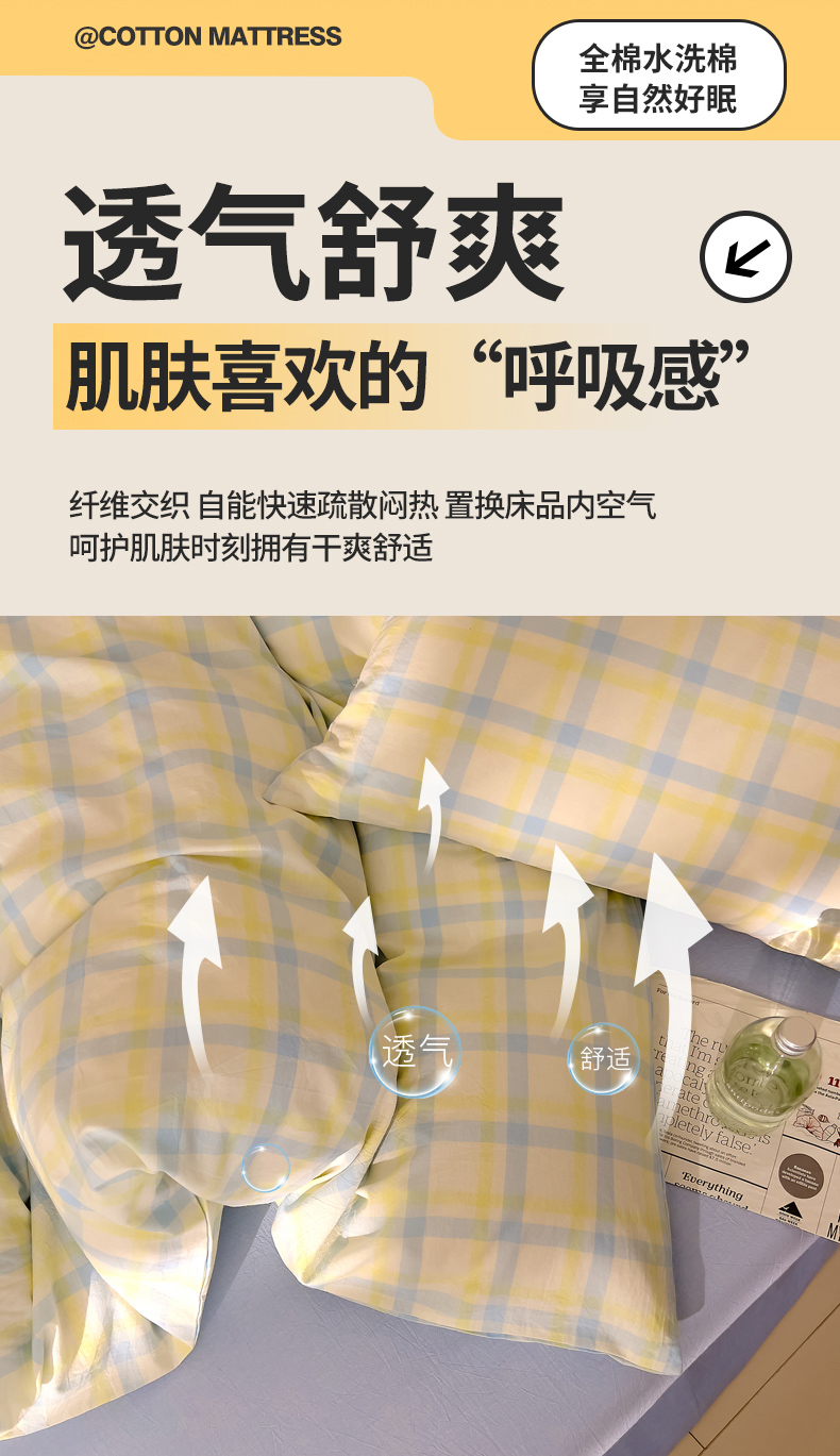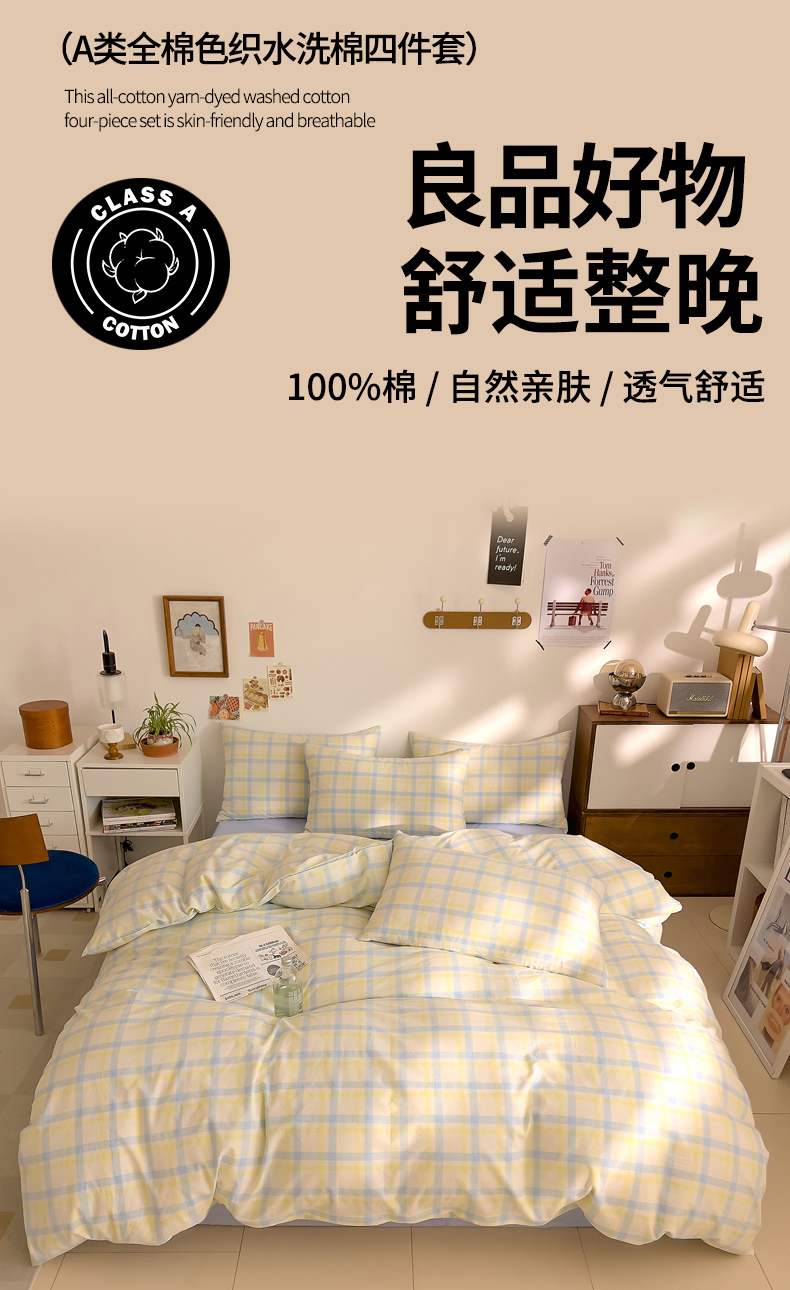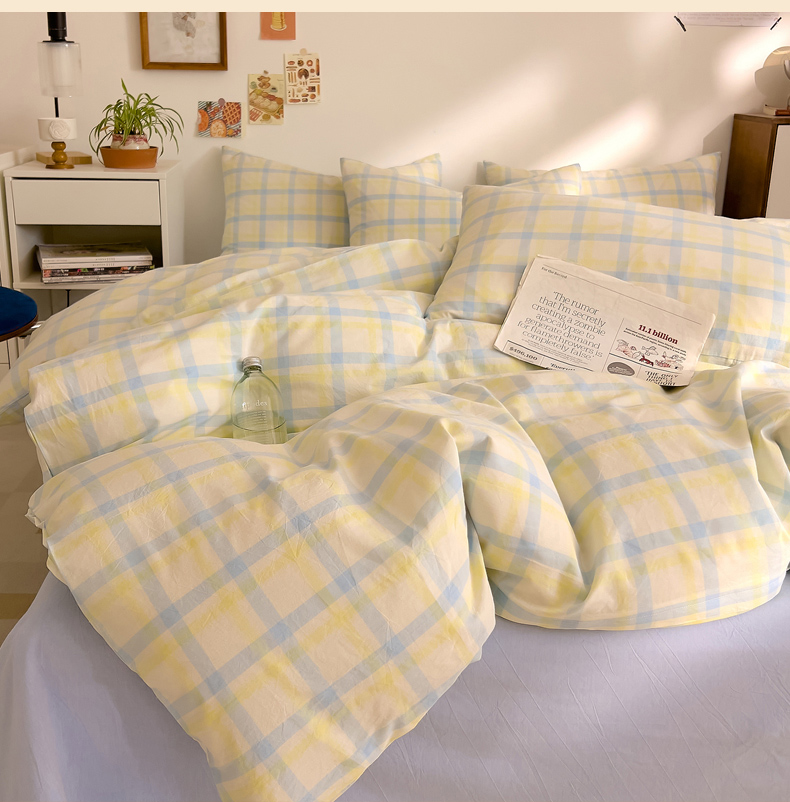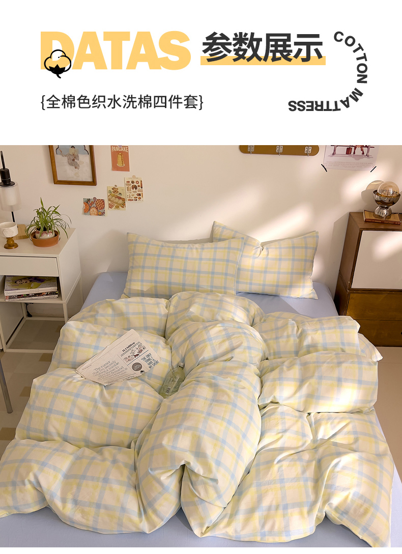 当前位置: 91家纺网 > 商品网购 > 床品套件 > 四件套 > 全棉普通四件套 > DoDo 兜兜 2026新款全棉纯棉A类条格水洗棉四件套-可定做尺寸 禾里-黄蓝