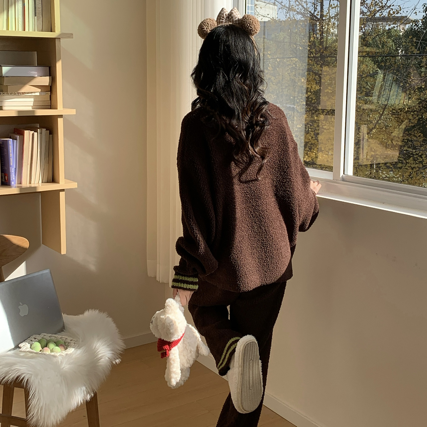 商品名称:多乐娜 2025新款出口日单高定款半边绒家居服重量高达1600g高级出口品质非市面普货(控价!请不要低于165元销售!!!!!) 暖棕色