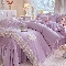 (总)专柜品质苏米娜家纺2026春夏韩版法式公主风水洗棉床盖款多功能二合一被套 夏被床盖四件套--花颜系列,花颜-樱花粉 ,花颜-梦幻蓝 ,花颜-奶油白, 花颜-嫩芽绿 ,花颜-香芋紫