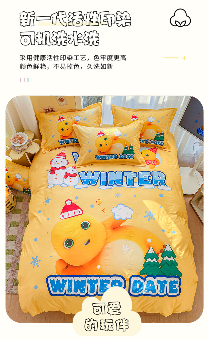 (总)浩诚 2025秋冬新款高克重牛奶绒大版卡通四件套,轻松一刻,冬日暖暖,快乐狂欢,小奶龙,雪地达人