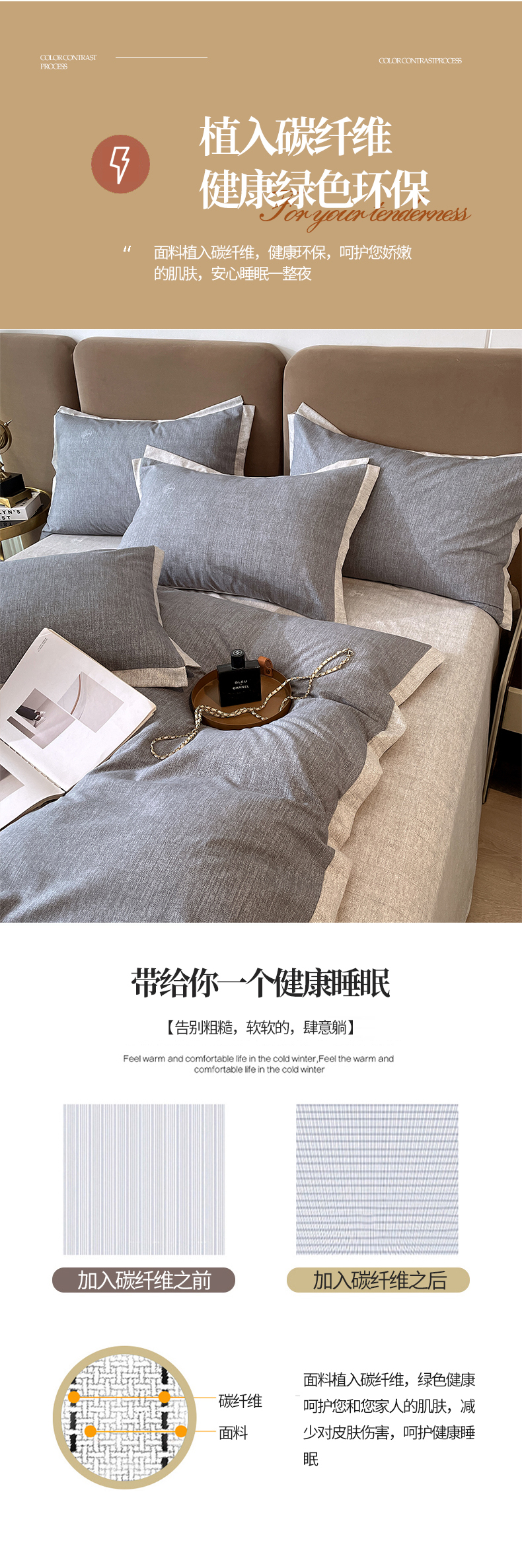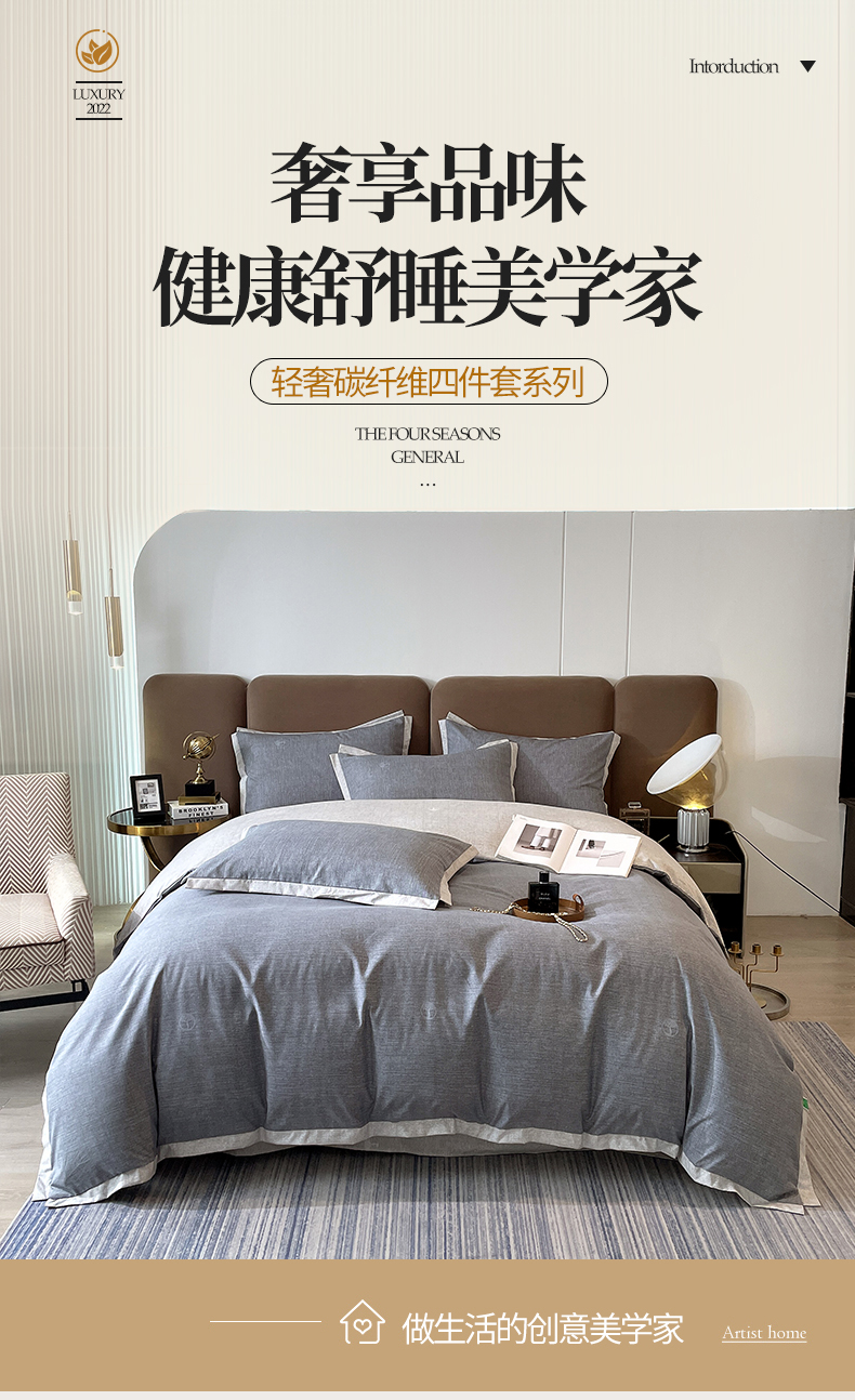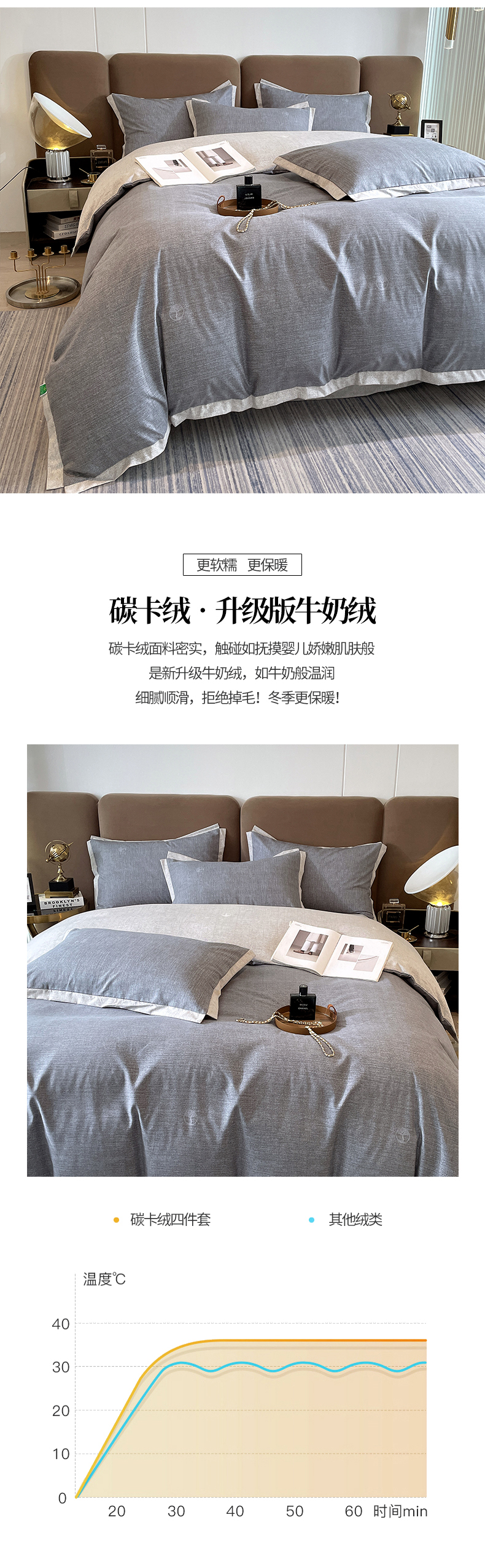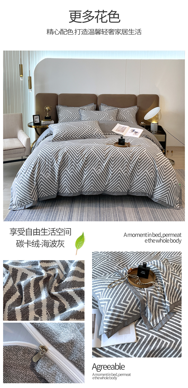 恩和家纺 2026新款森能量碳纤维环保四件套系列 碳卡绒-铅华