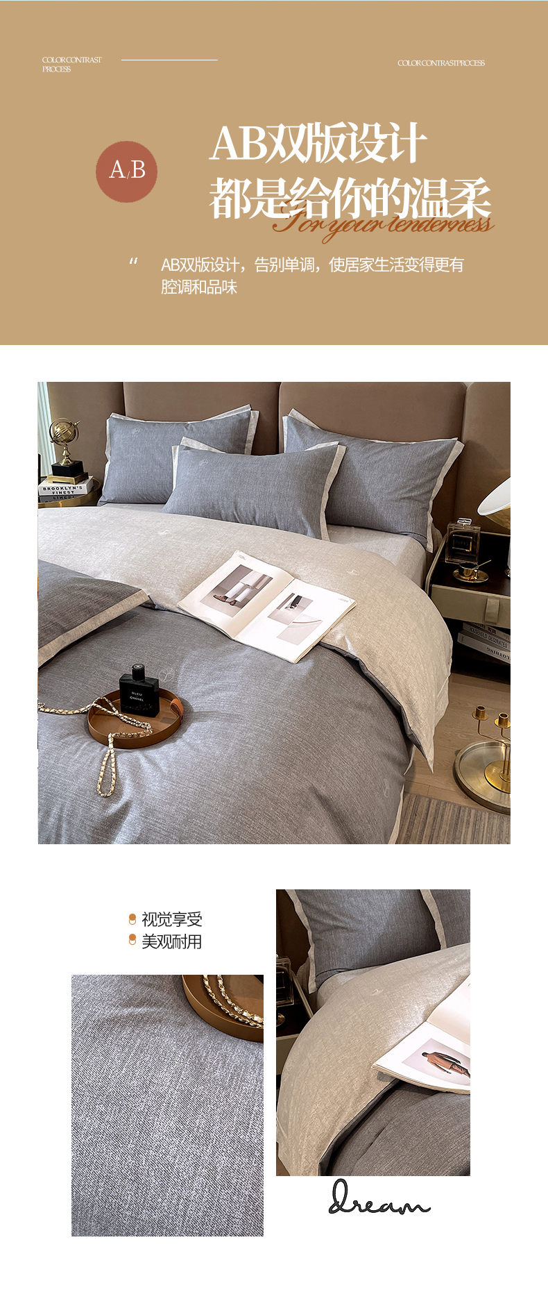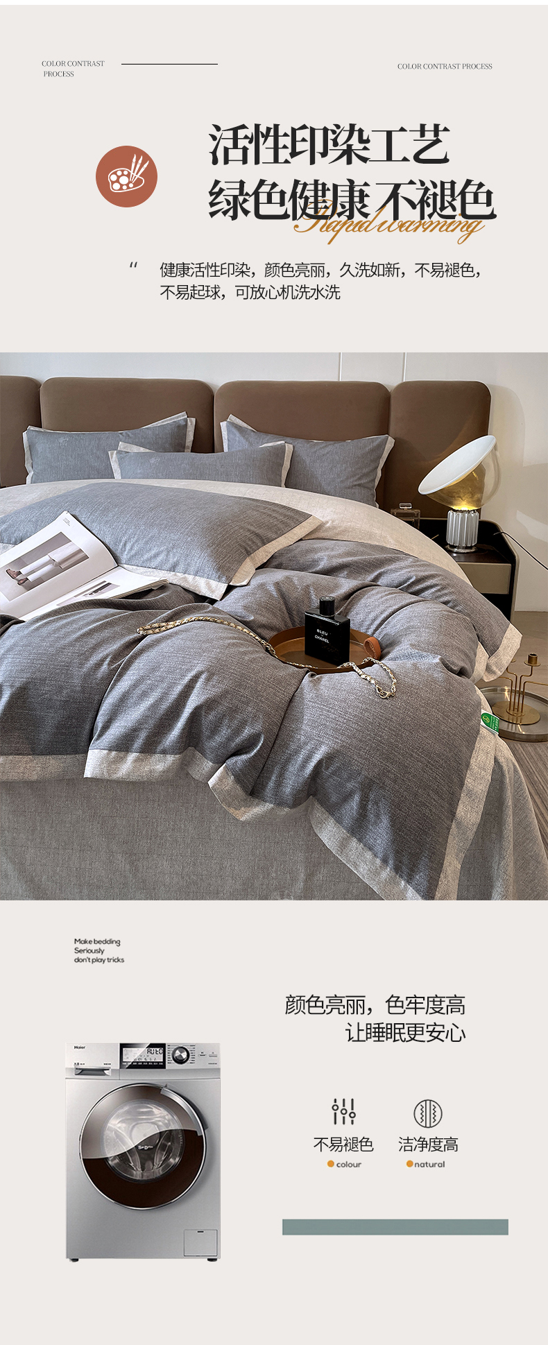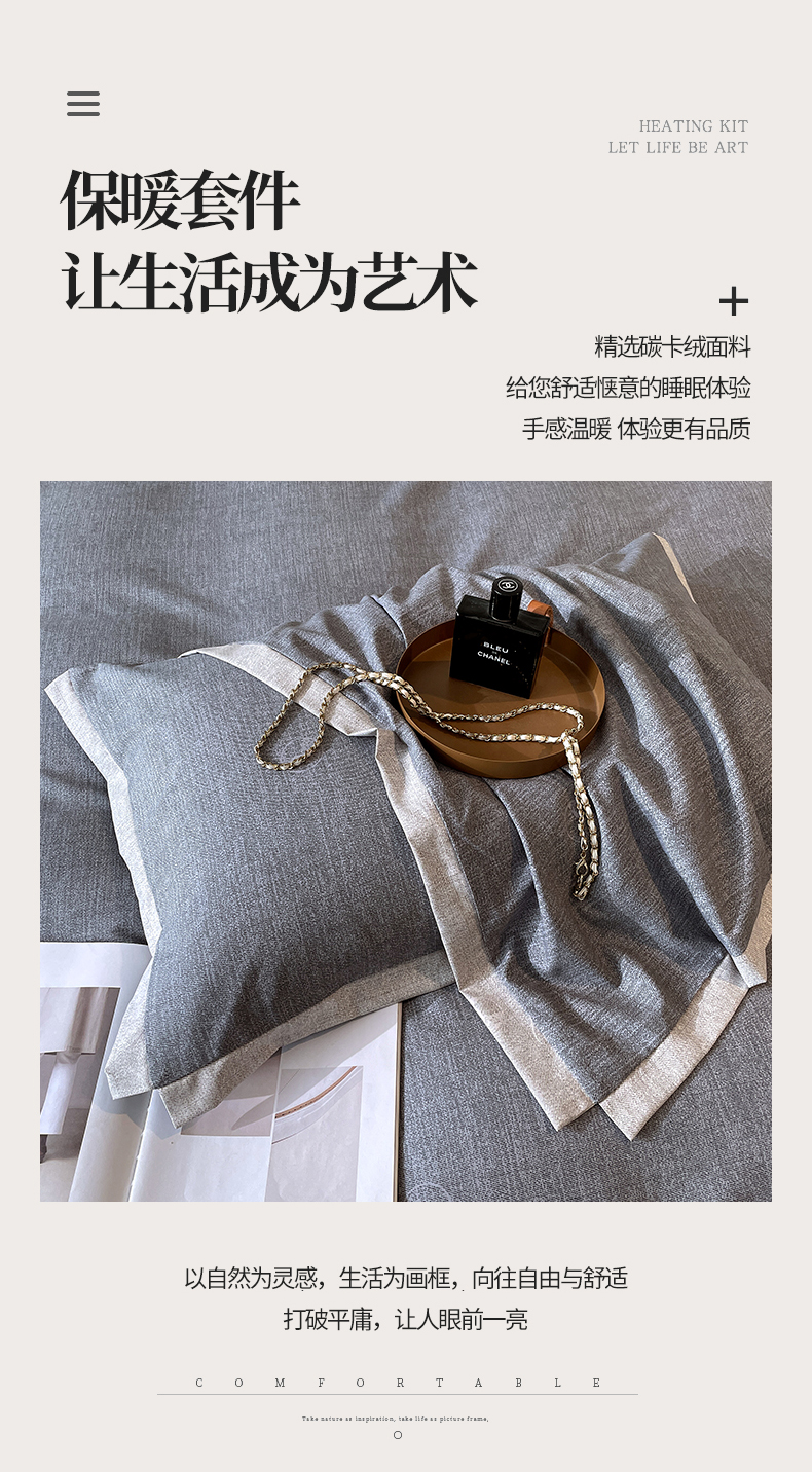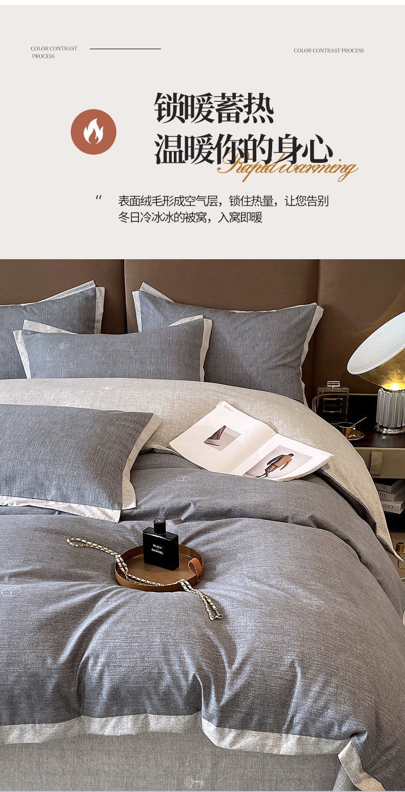 恩和家纺 2026新款森能量碳纤维环保四件套系列 碳卡绒-铅华