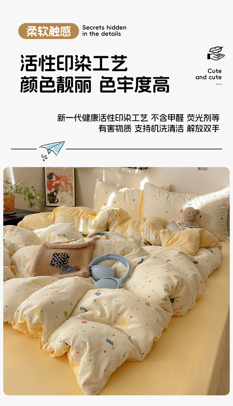 当前位置: 91家纺网 > 商品网购 > 床品套件 > 四件套 > 水洗棉四件套 > 沐芷 2026 【提供买家秀】A类软糯水洗棉四件套床上宿舍三件套床单被套 奶酪点点