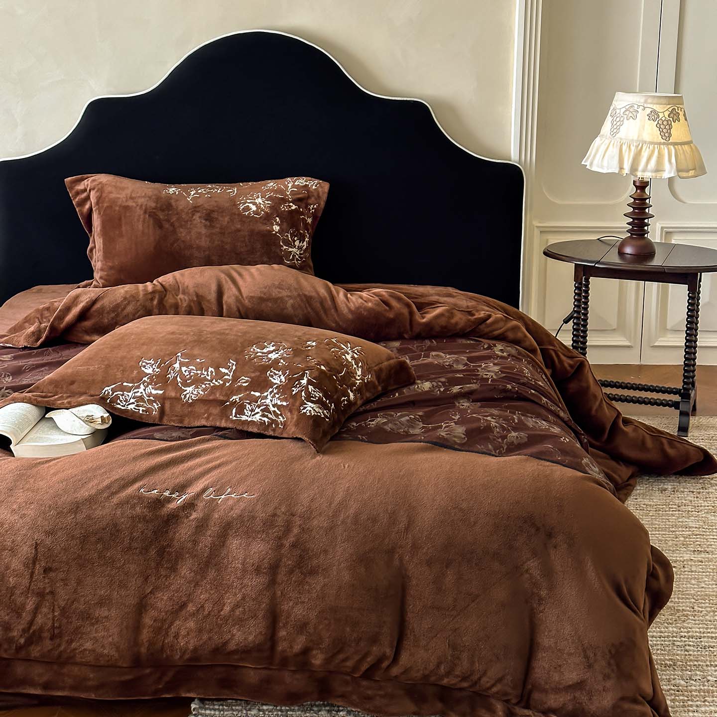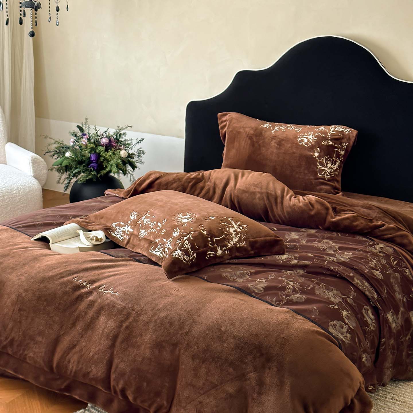 (总)赫帛 2026新款刺绣鎏金绒四件套-郁金香,郁金香-粉色,郁金香-棕色
