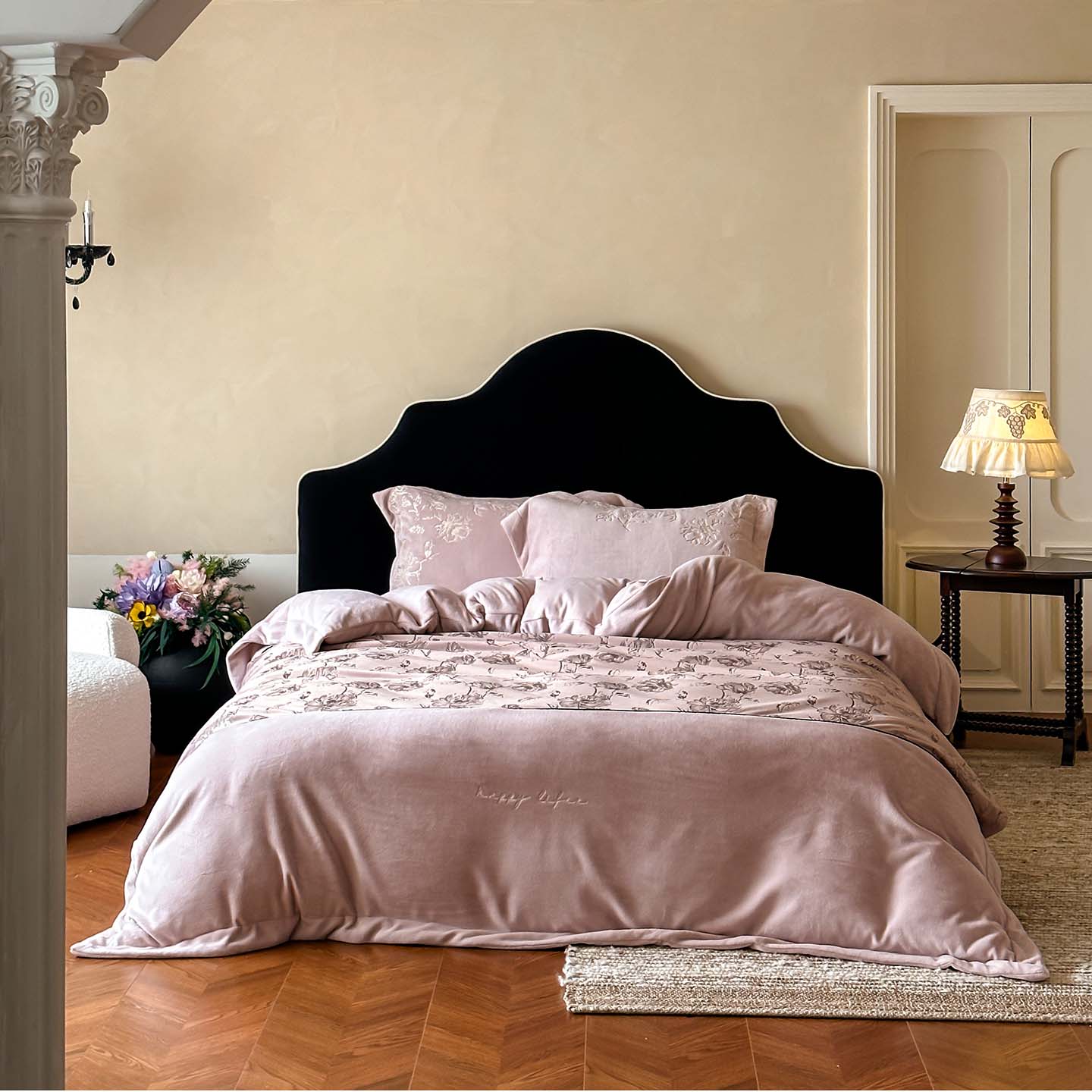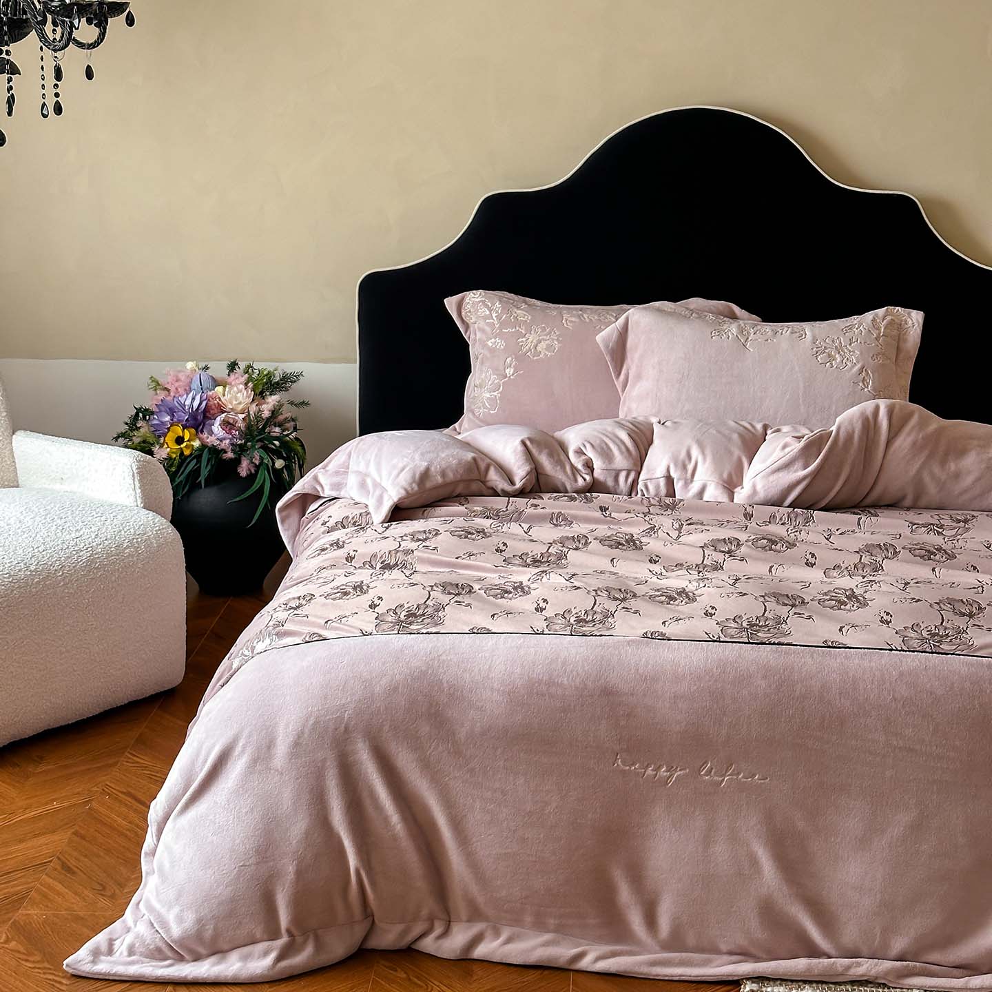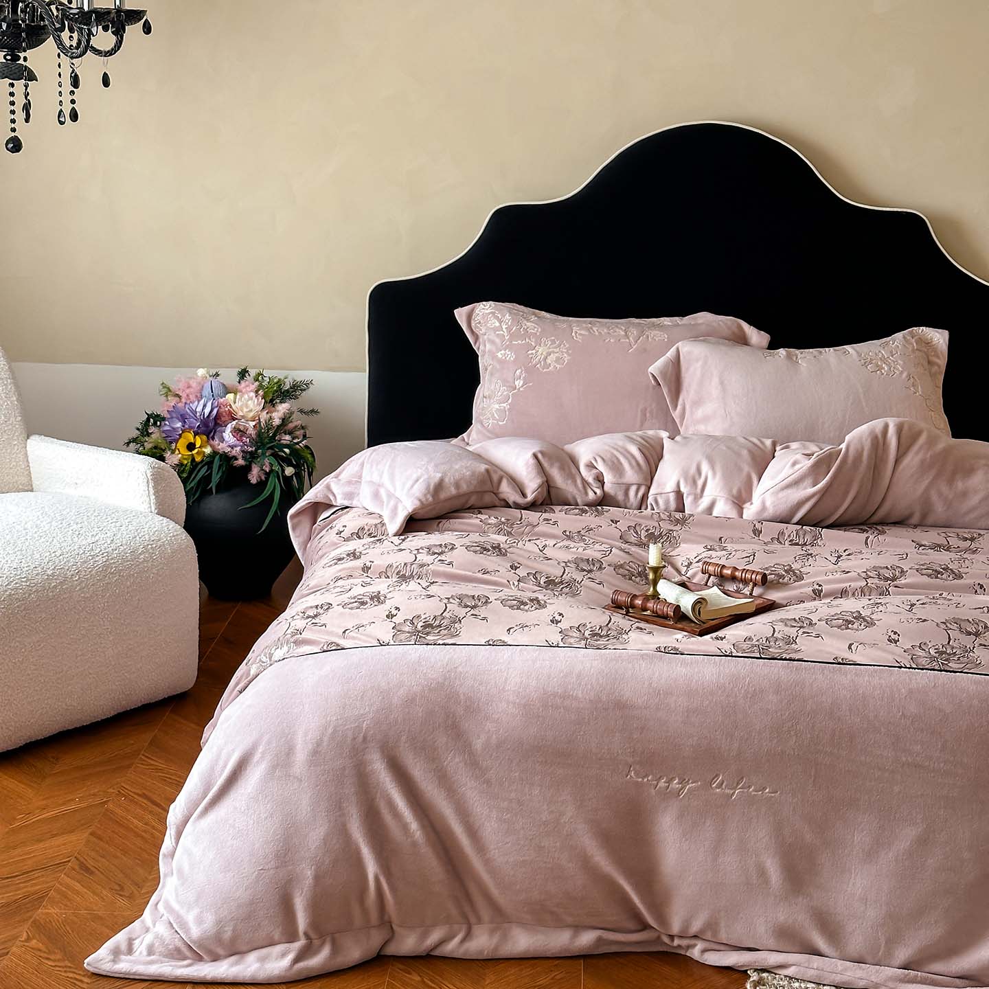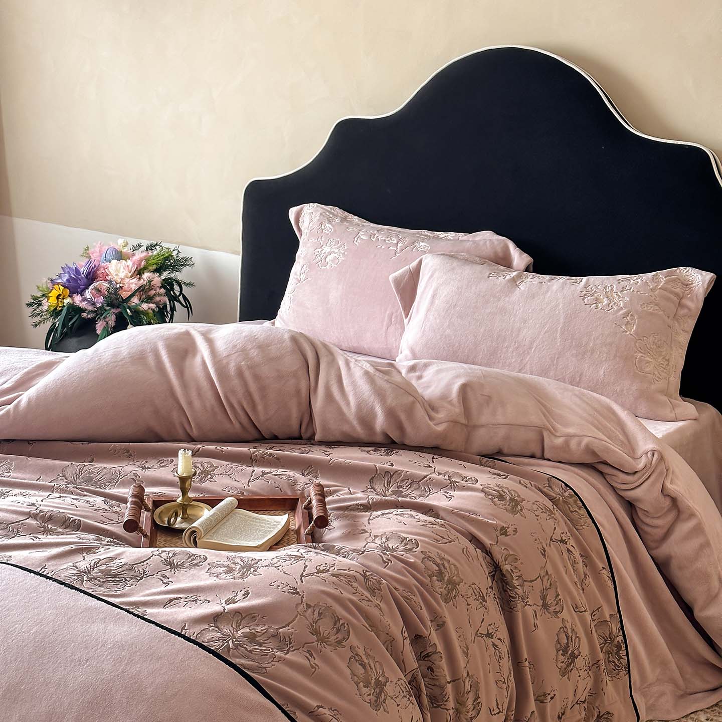 赫帛 2026新款刺绣鎏金绒四件套-郁金香 郁金香-粉色