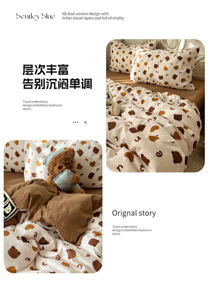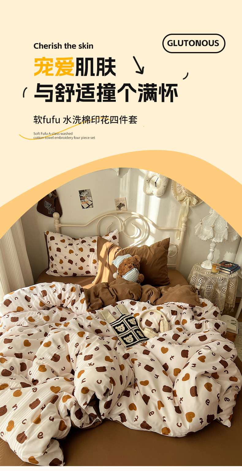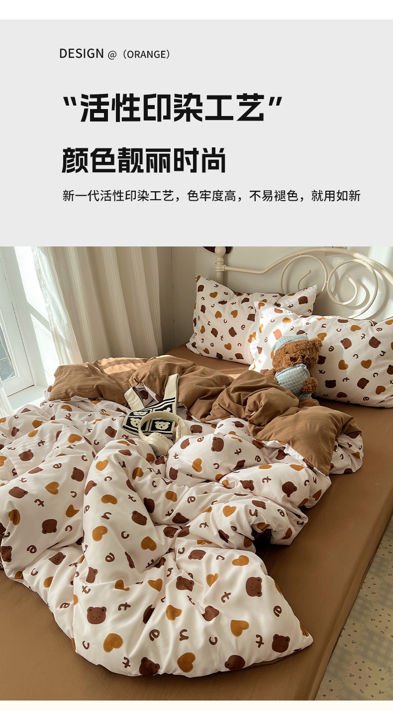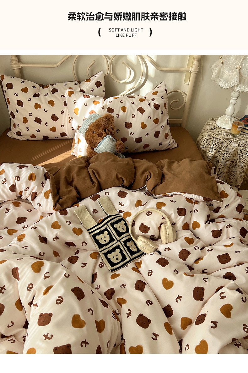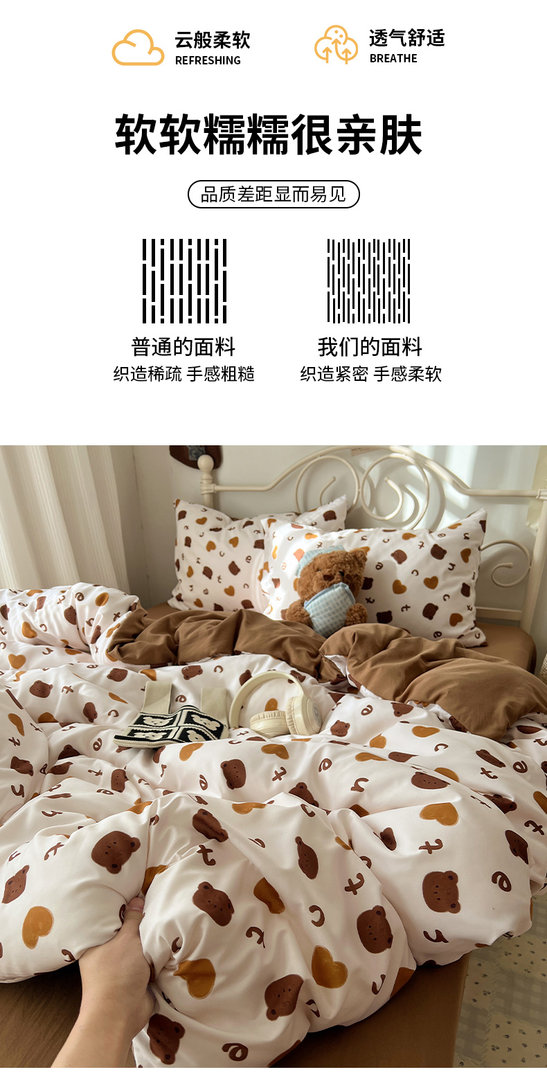 当前位置: 91家纺网 > 商品网购 > 床品套件 > 四件套 > 水洗棉四件套 > 繁花家居 2026简单款水洗棉四件套学生床三件套 咖心小熊