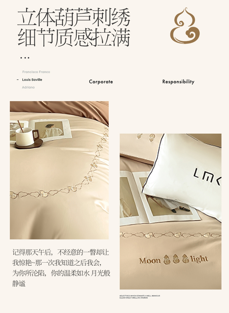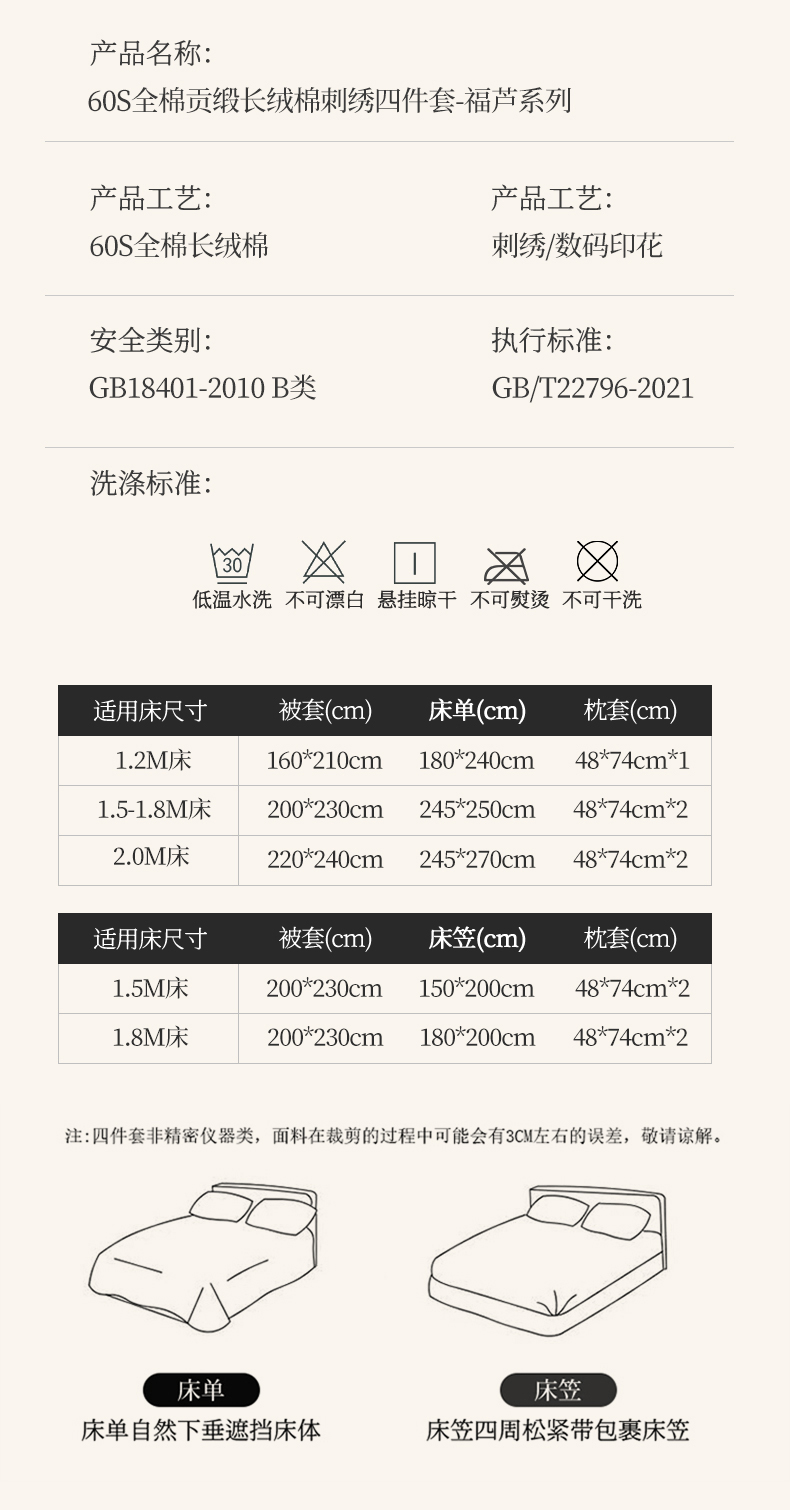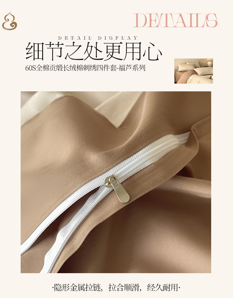 商品名称:蓝米卡夫 2026春季新款-60S长绒棉贡缎刺绣系列四件套-福芦(礼盒) 福芦-玛卡+可可棕