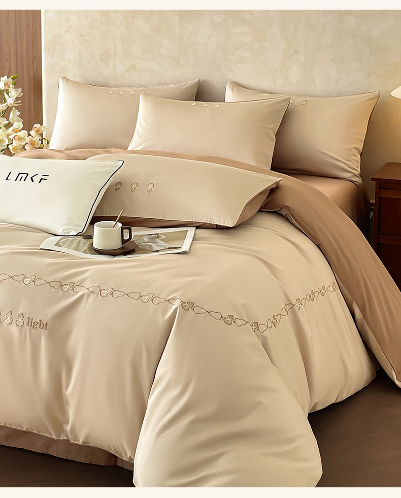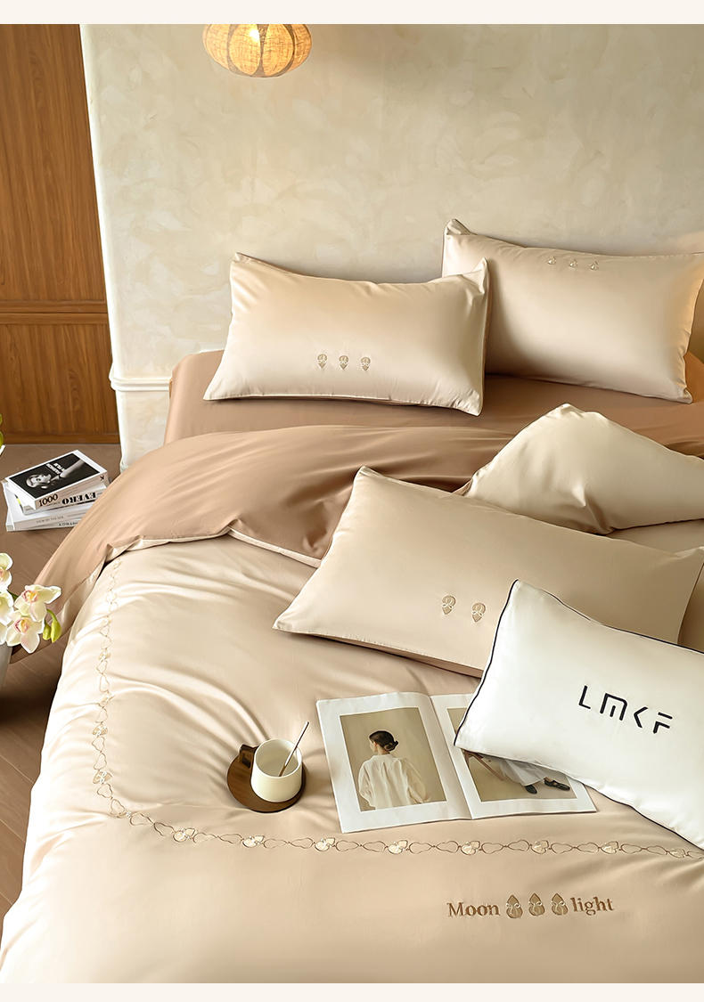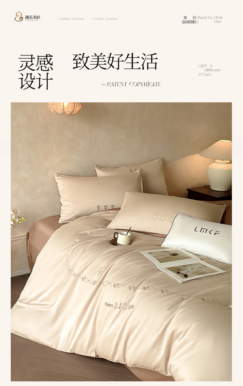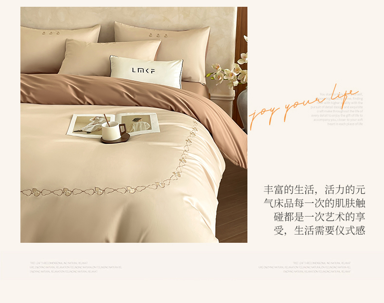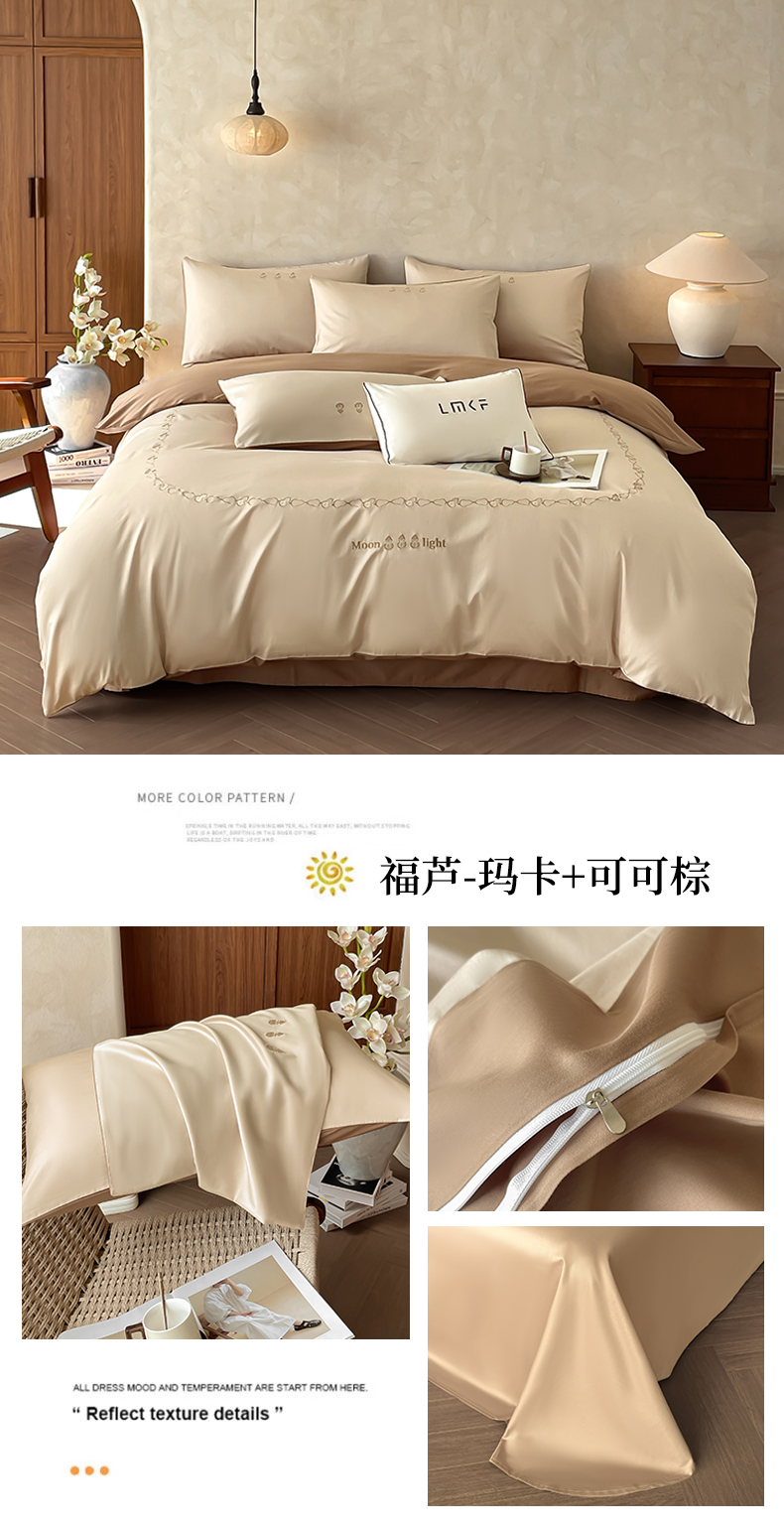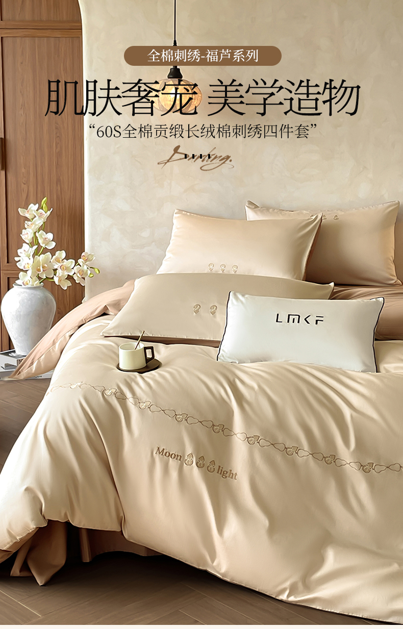蓝米卡夫 2026春季新款-60S长绒棉贡缎刺绣系列四件套-福芦(礼盒) 福芦-玛卡+可可棕