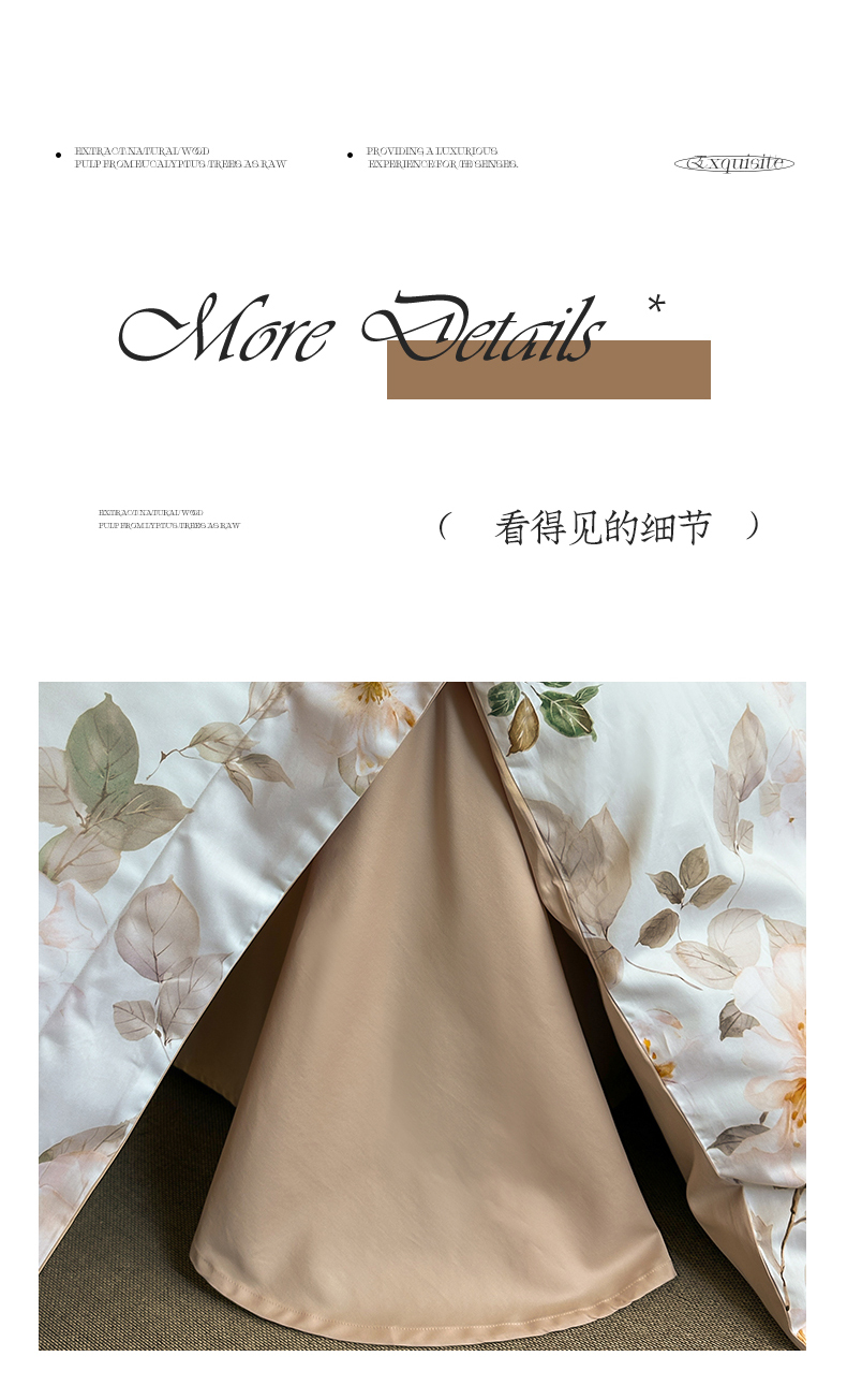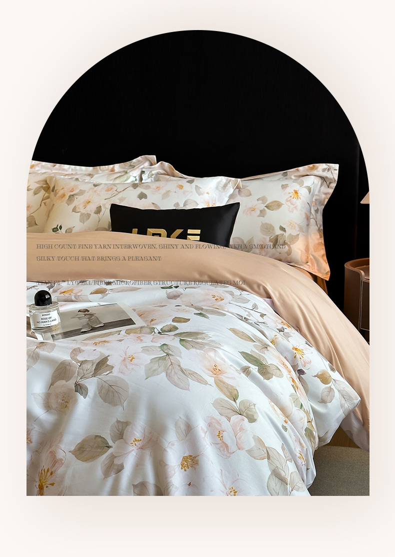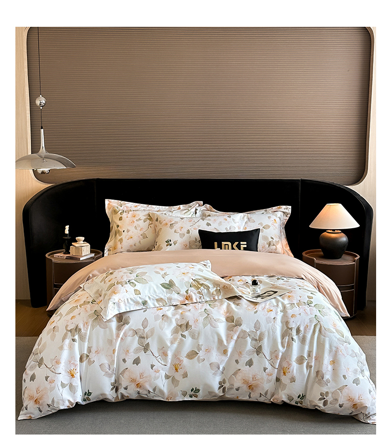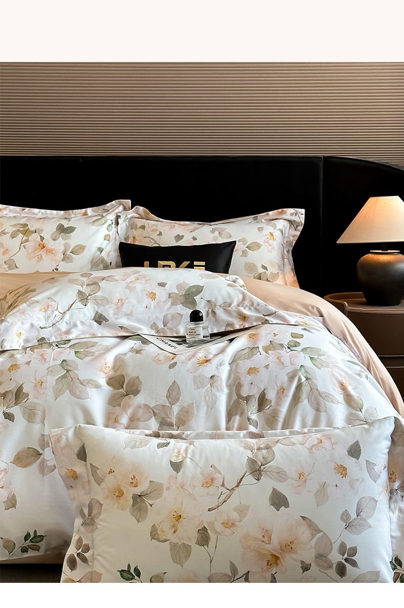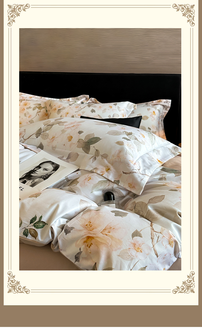 商品名称:蓝米卡夫 2026春季新款-60S长绒棉数码印花贡缎系列四件套(礼盒) 芳香情思-咖