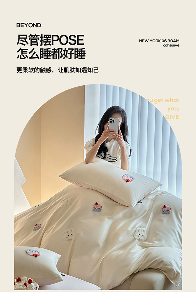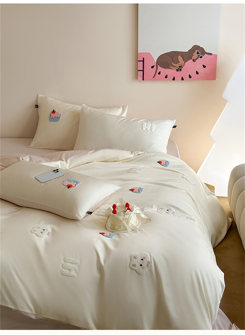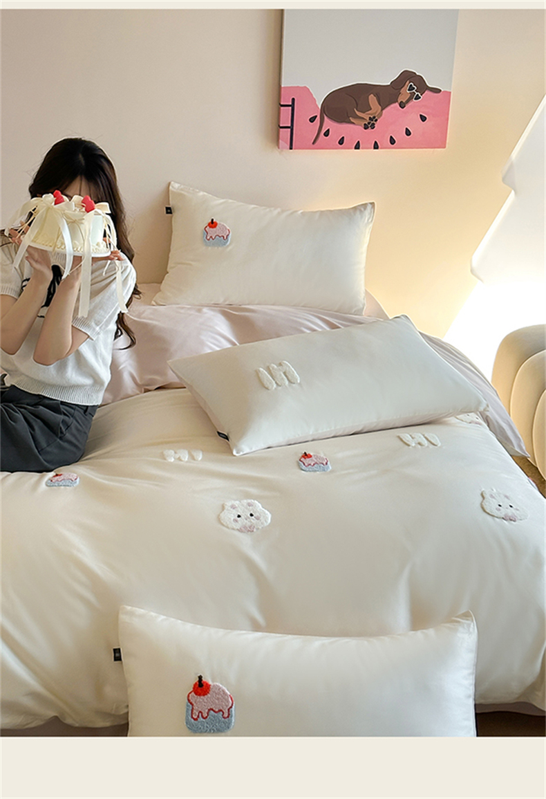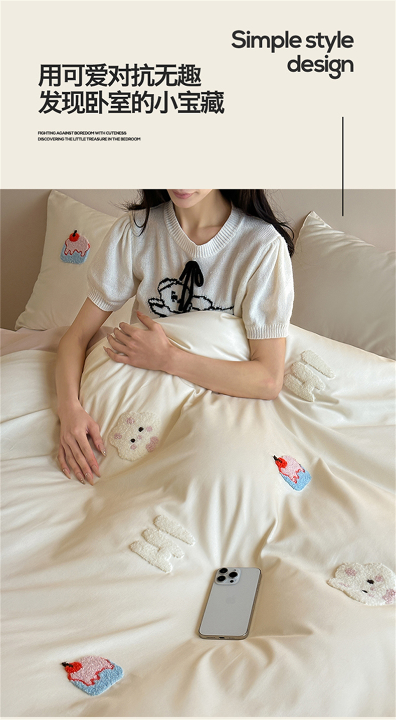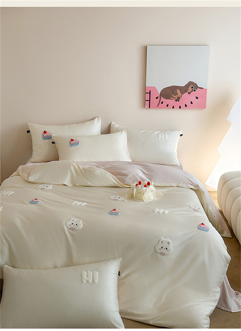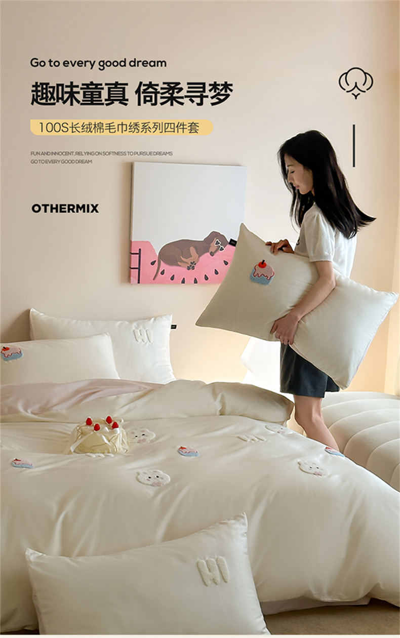 当前位置: 91家纺网 > 商品网购 > 床品套件 > 四件套 > 长绒棉四件套 > (总)蓝米卡夫 2026春季新款-100S长绒棉毛巾绣系列四件套-蛋糕兔兔(礼盒)