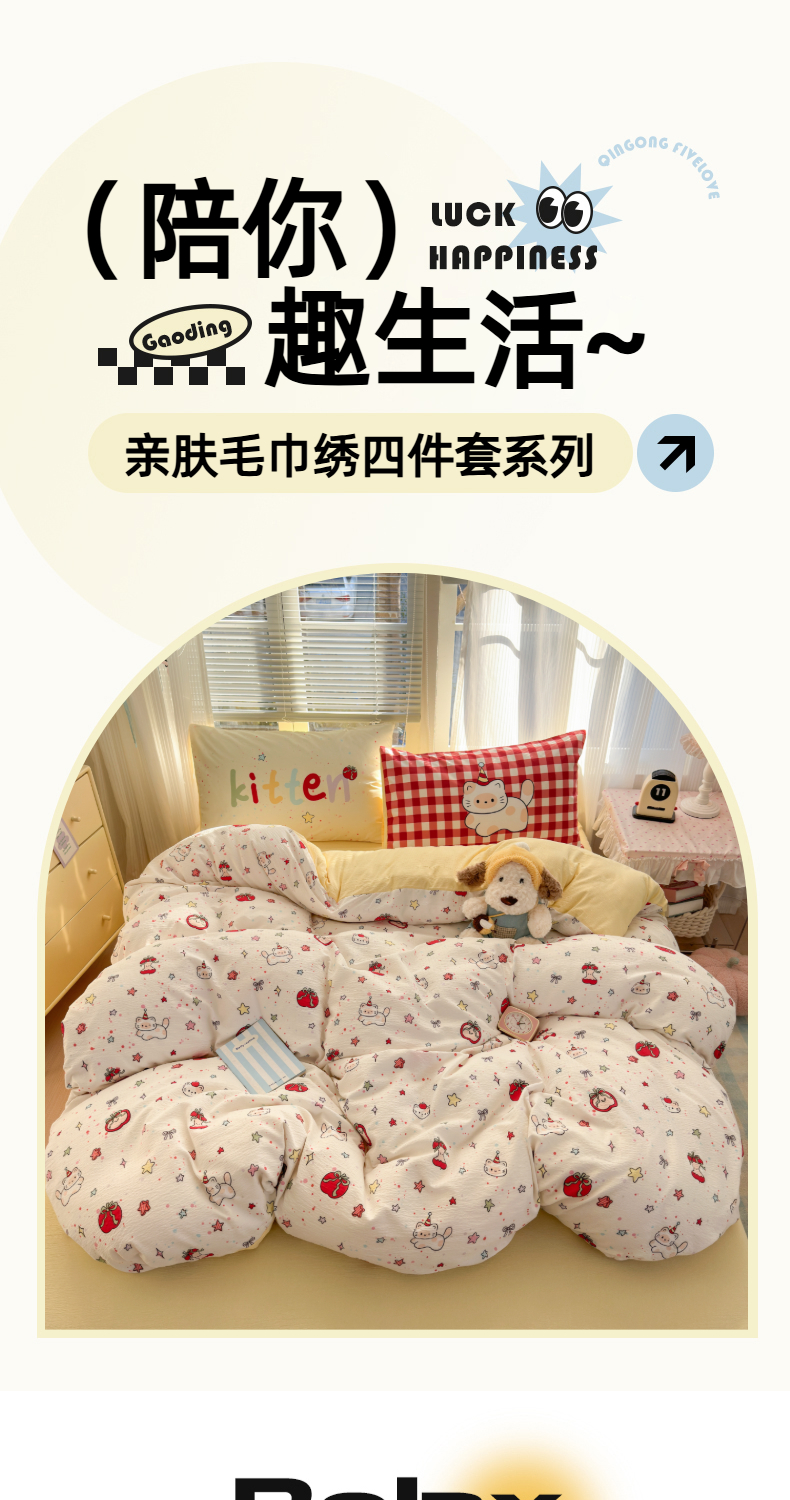 当前位置: 91家纺网 > 商品网购 > 床品套件 > 四件套 > 其它四件套 > 一霖家纺 2026新款云感皱皱纱小清新印花数码系列四件套 小红书爆款 苹果小怪