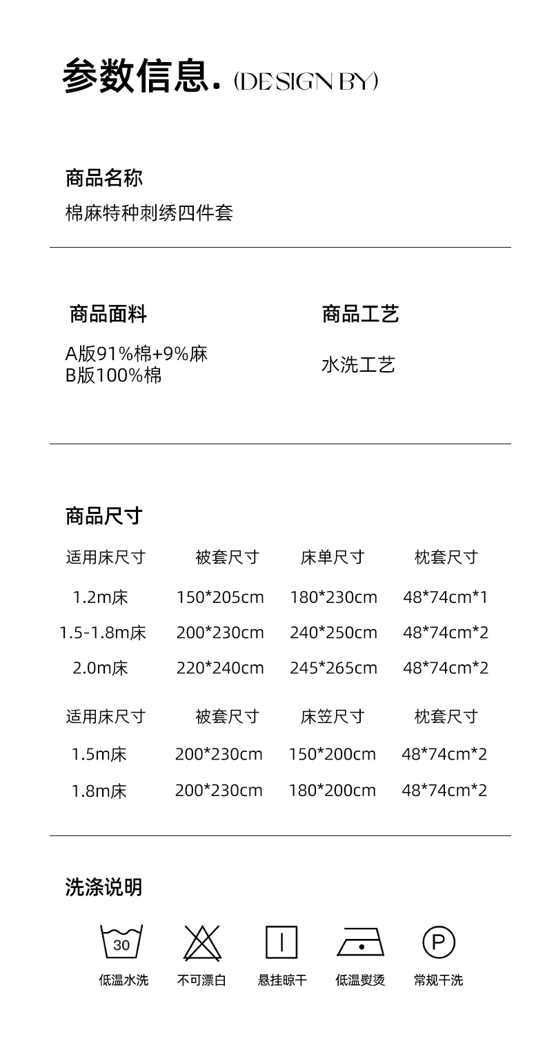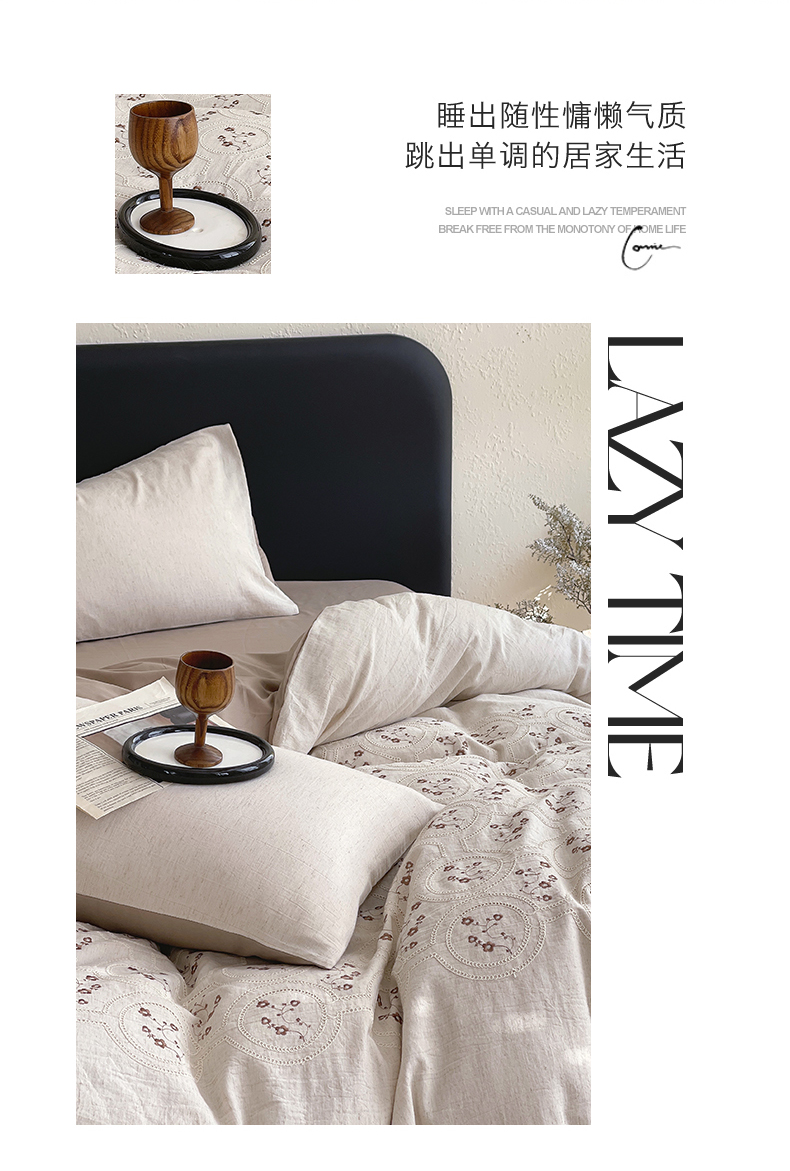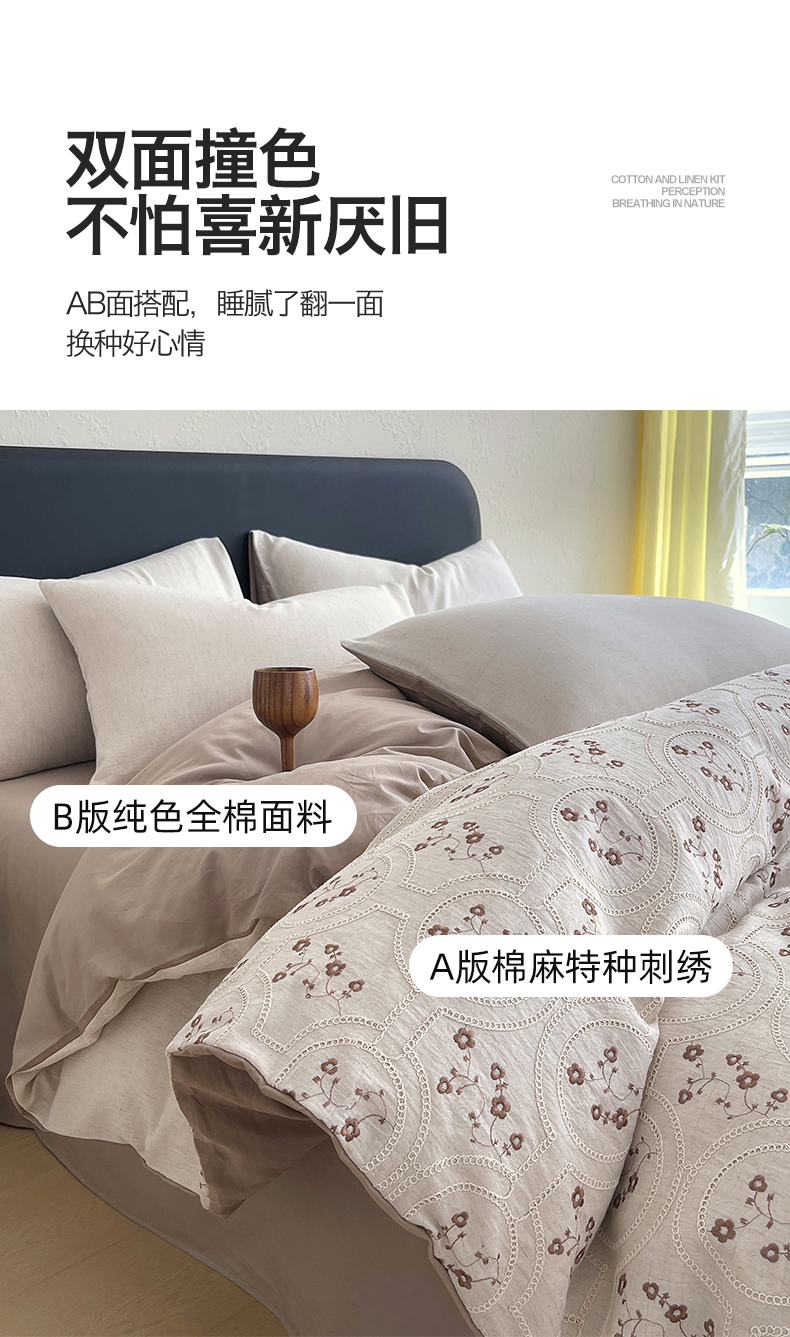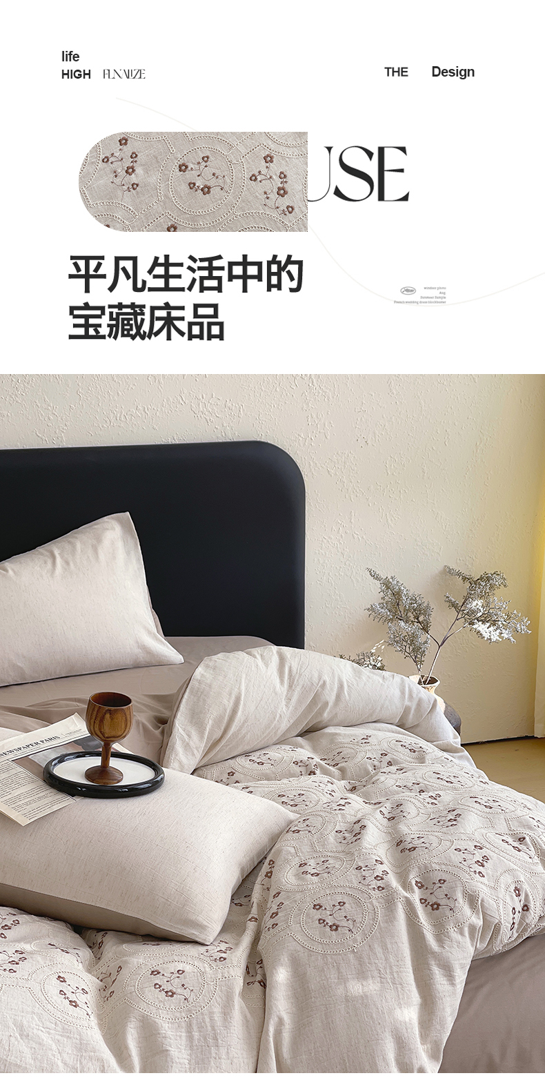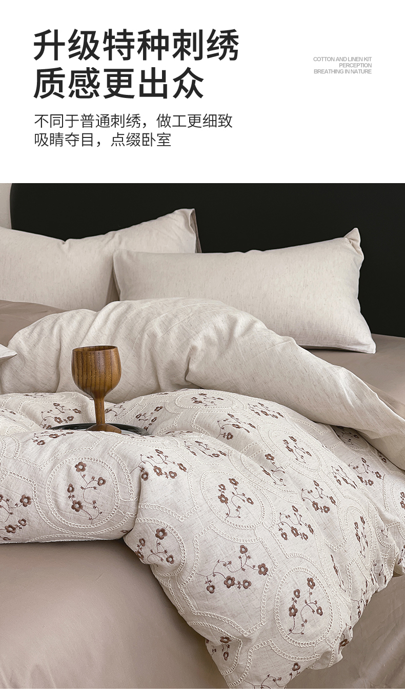 商品名称:琪格格纺织 2026新款棉麻特种刺绣高奢四件套 屿光漫织
