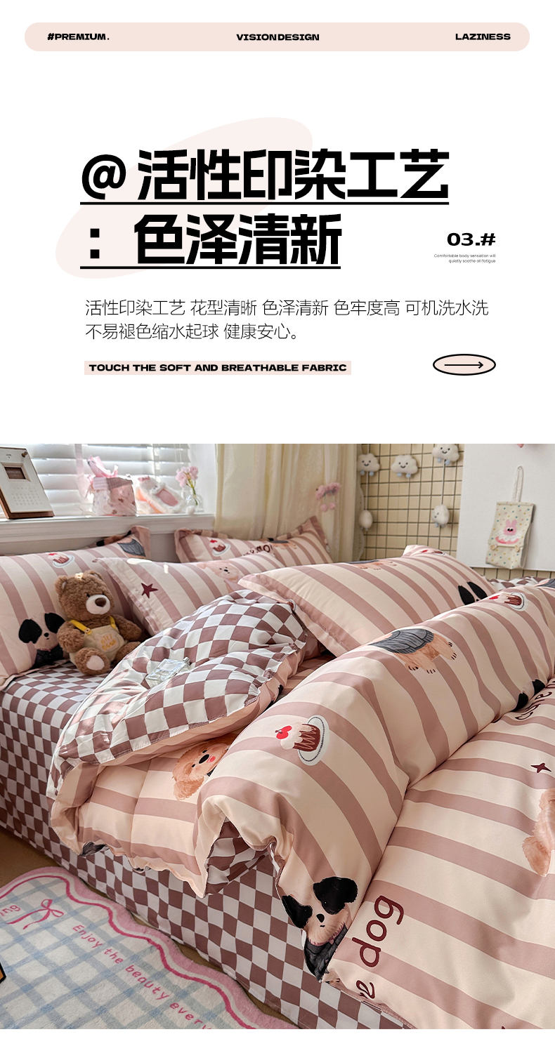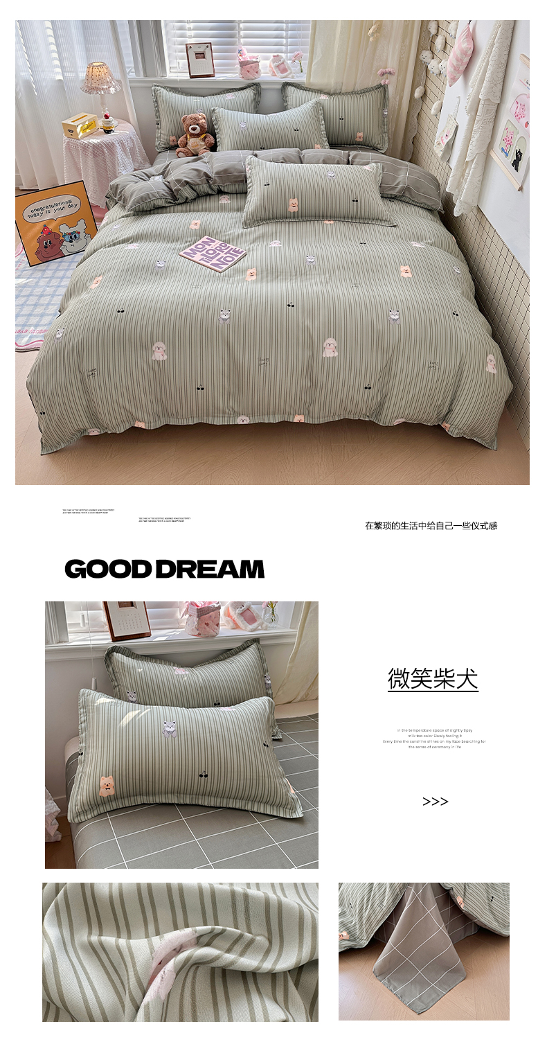 (总)卡斯诺家纺馆 2026新款A类亲肤芦荟棉四件套 下载文件包含买家秀,奶咖萌犬,格纹友趣,花漾汪星,朦胧花兔,奶油小熊,软萌熊格,疏影,微笑柴犬,小熊花梦,星空迷航,熊崽甜莓,英伦格调,幽香花眠,月光花宠,深空灰调