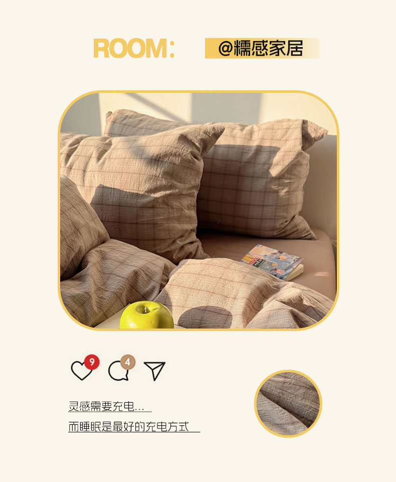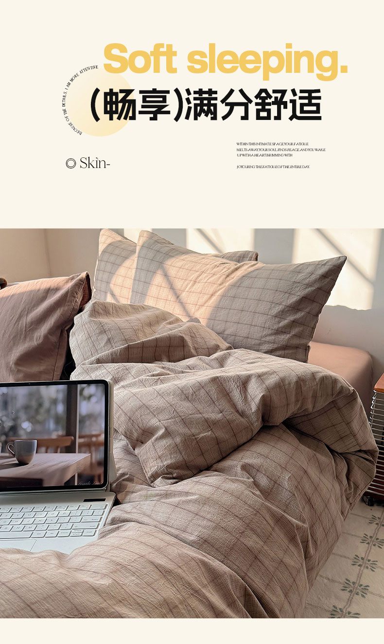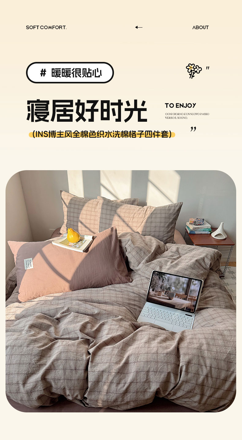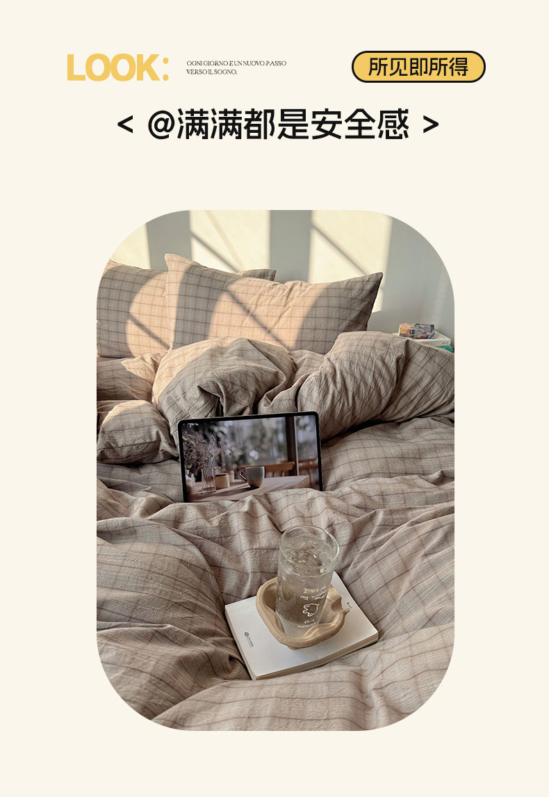 当前位置: 91家纺网 > 商品网购 > 床品套件 > 四件套 > 全棉普通四件套 > 六巷胡同 2026新款INS博主风A类全棉纯棉色织水洗棉格子四件套 悦野-灰格