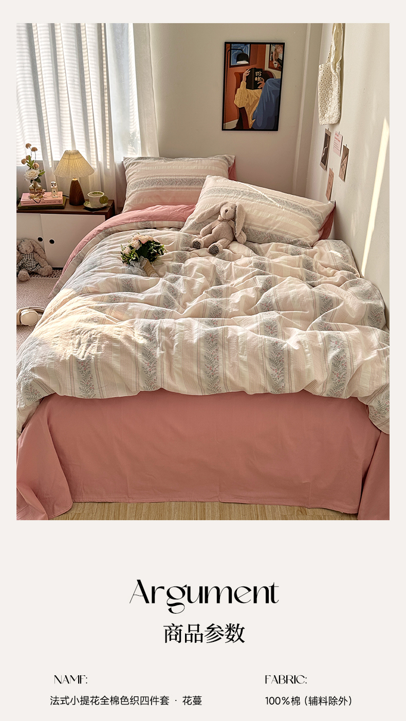 当前位置: 91家纺网 > 商品网购 > 床品套件 > 四件套 > 全棉普通四件套 > 艾咪-Amy ntmy 2026新款全棉纯棉色织提花四件套-花蔓 花蔓粉薇