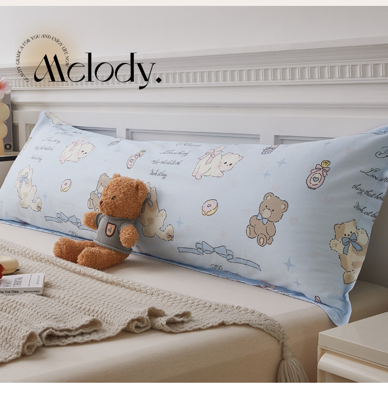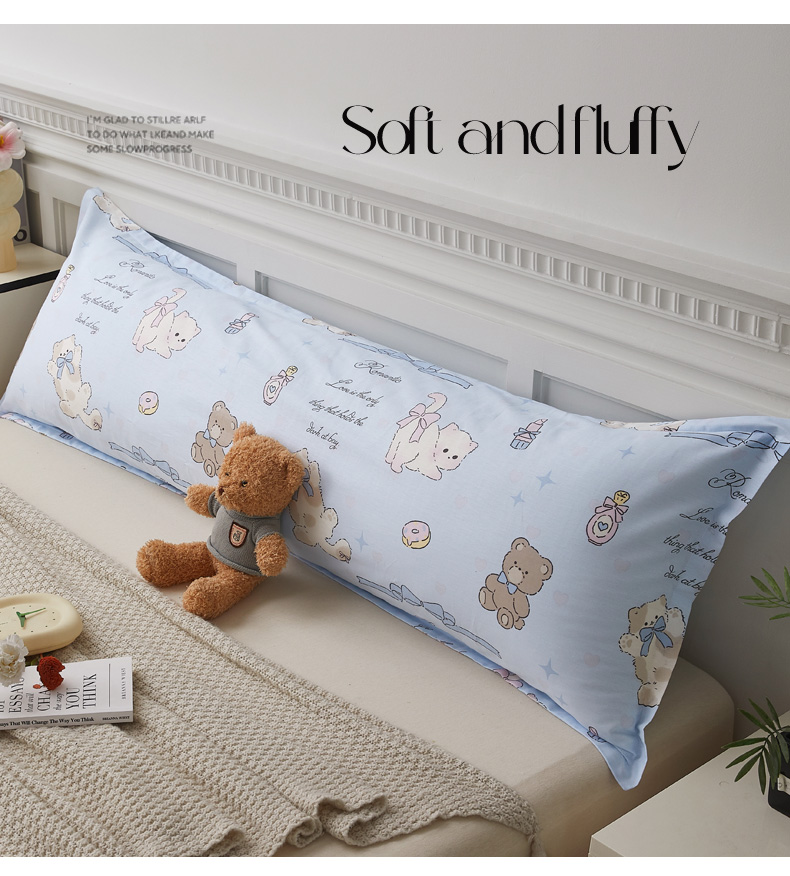 商品名称:翎盈家纺 2026新款小清新卡通全棉纯棉双人枕套长枕头套 奶油阿布-蓝