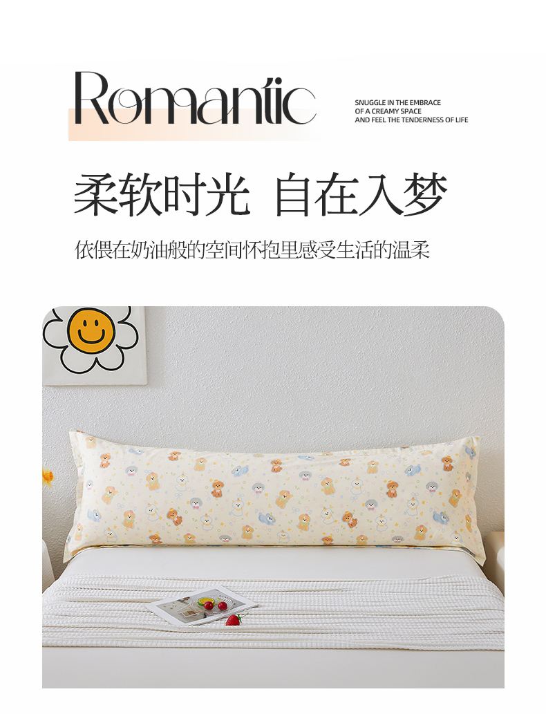 商品名称:翎盈家纺 2026新款小清新卡通全棉纯棉双人枕套长枕头套 童趣绘彩