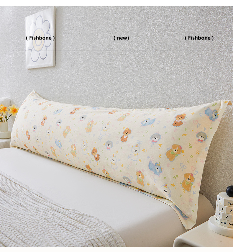 翎盈家纺 2026新款小清新卡通全棉纯棉双人枕套长枕头套 童趣绘彩