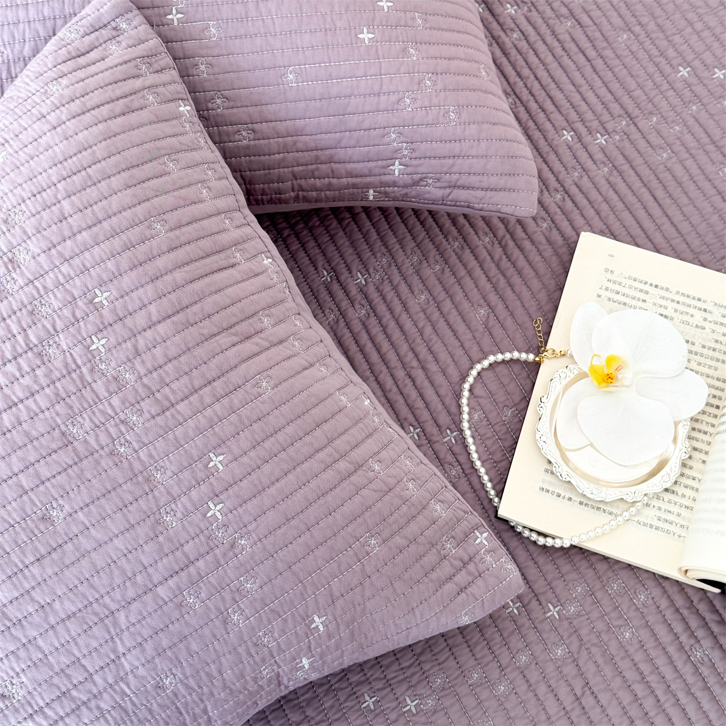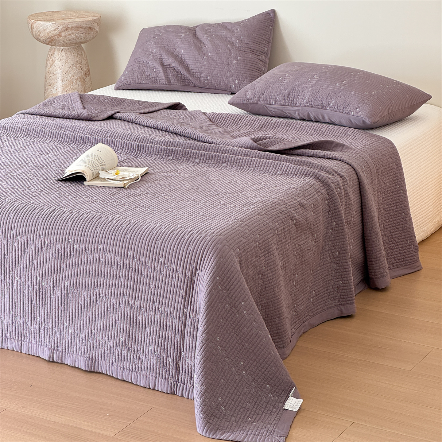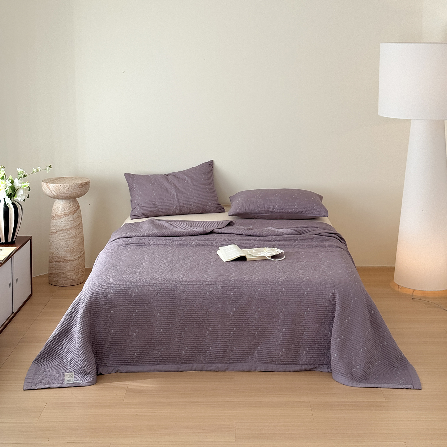 商品名称:床盖工厂店 2026新款四叶草双面莫代尔天丝填充棉花床盖三件套 钛紫灰