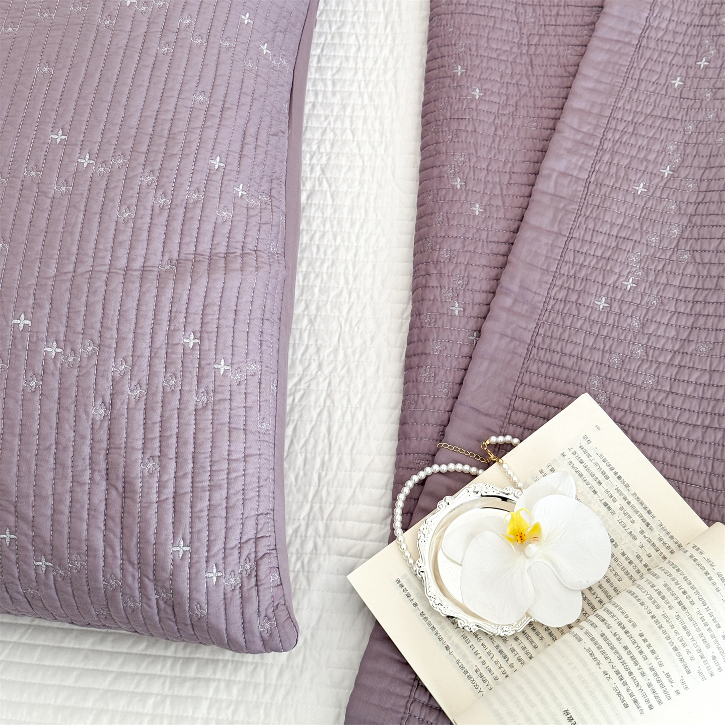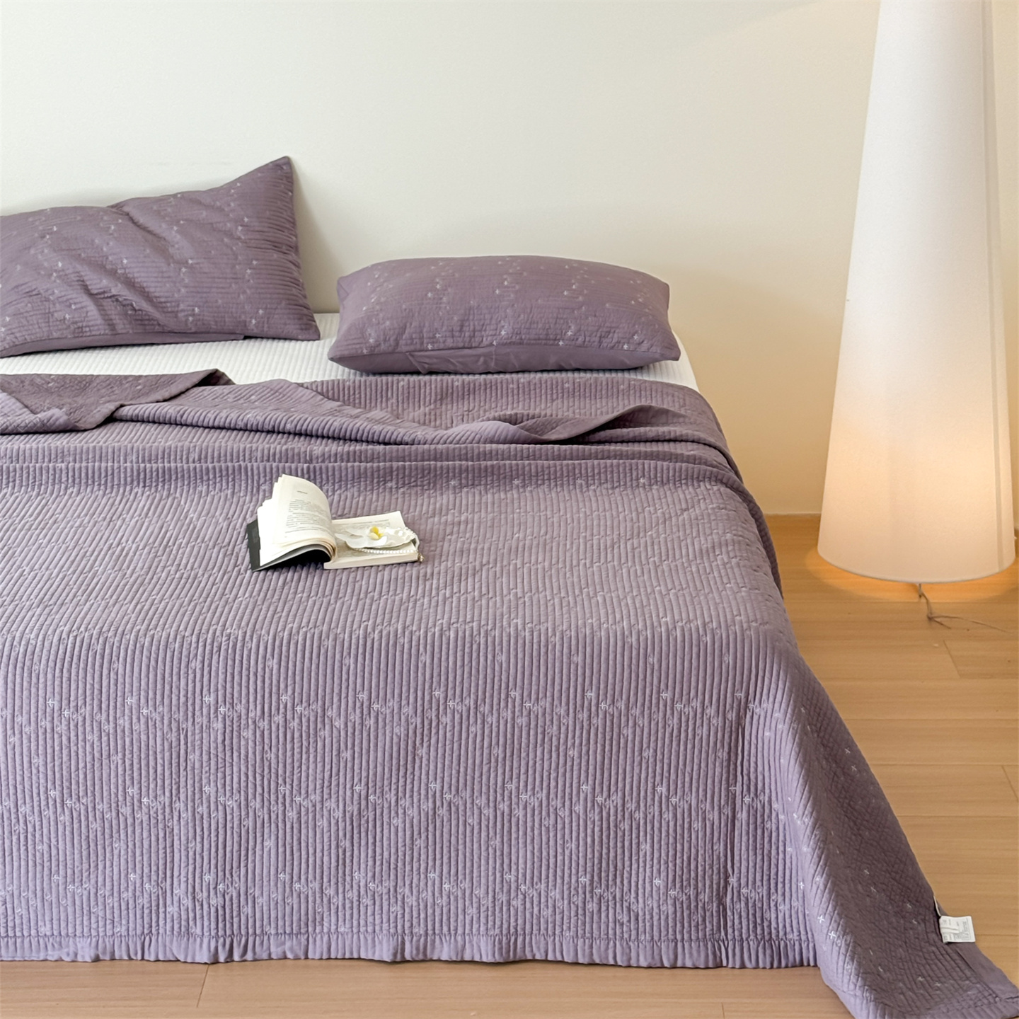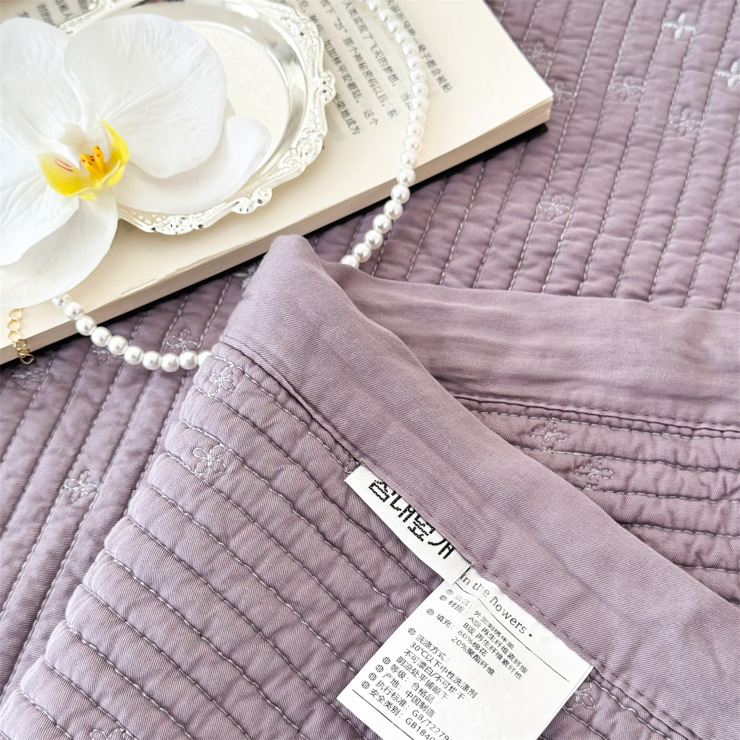 商品名称:床盖工厂店 2026新款四叶草双面莫代尔天丝填充棉花床盖三件套 钛紫灰