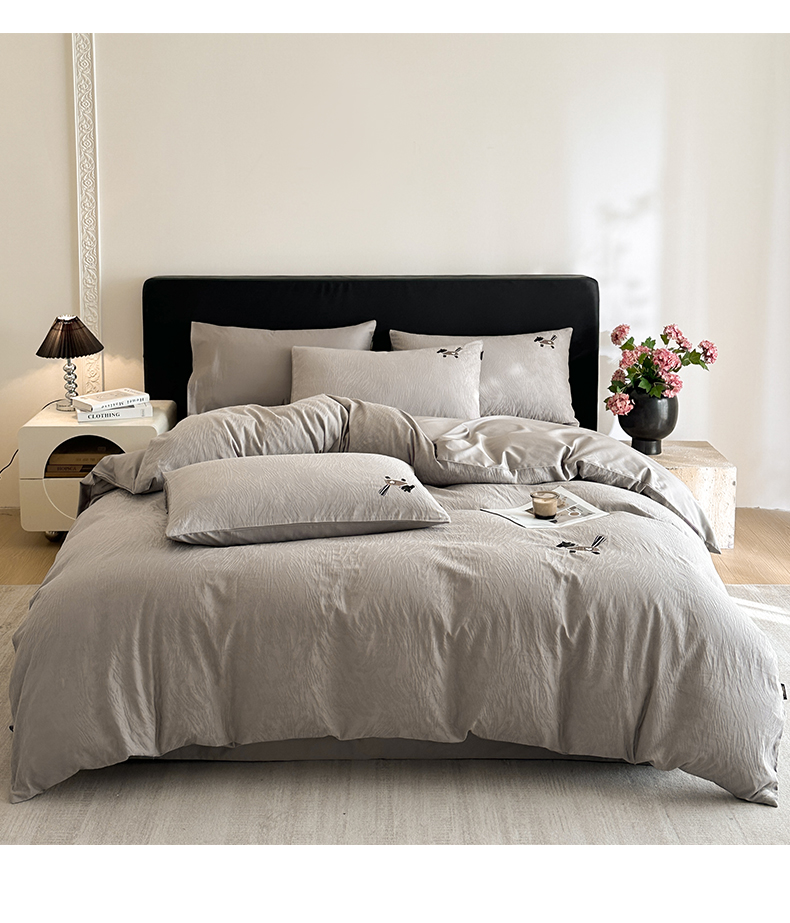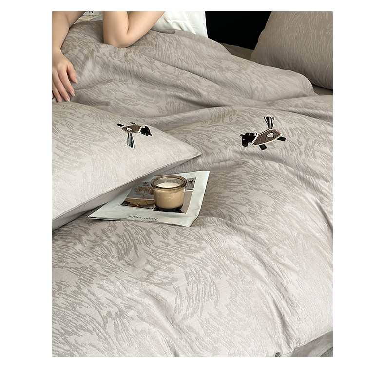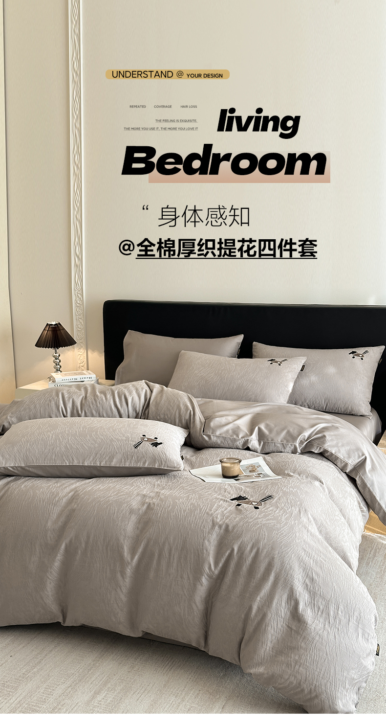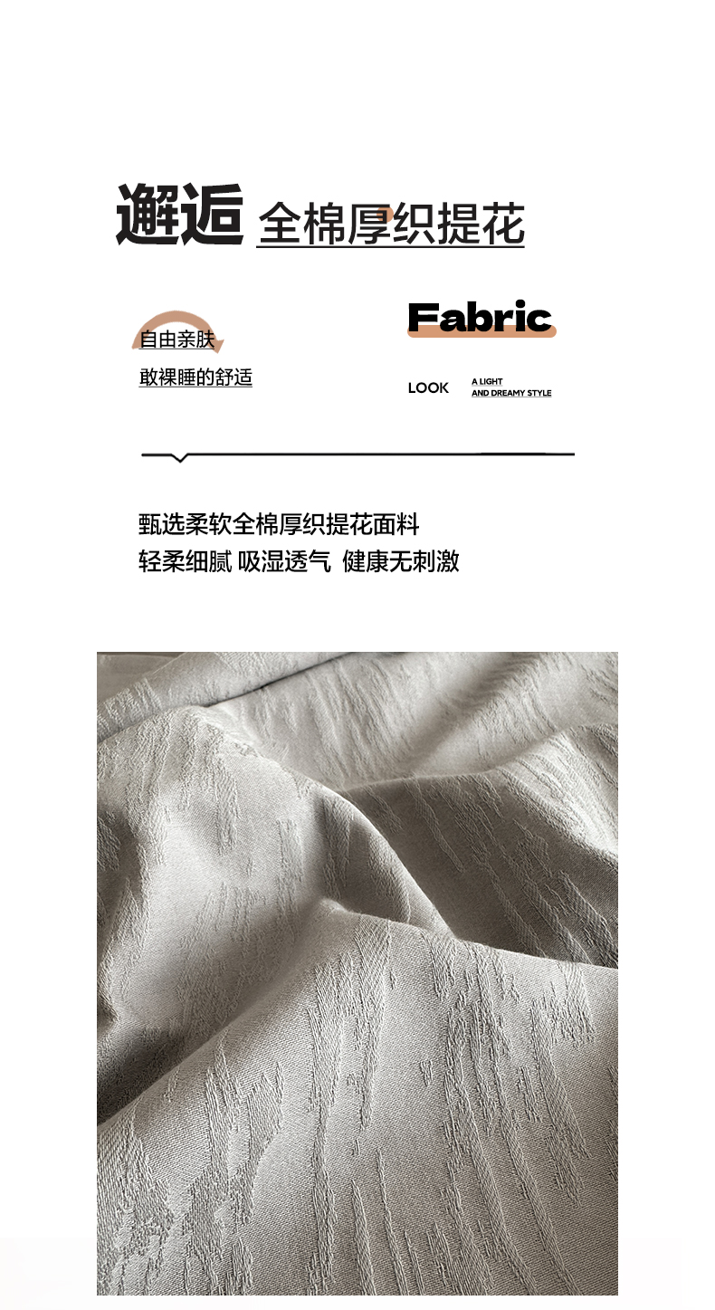 当前位置: 91家纺网 > 商品网购 > 床品套件 > 四件套 > 全棉普通四件套 > 卡巴伦家纺 2026新款全棉纯棉厚织提花四件套 艾比-雅致灰