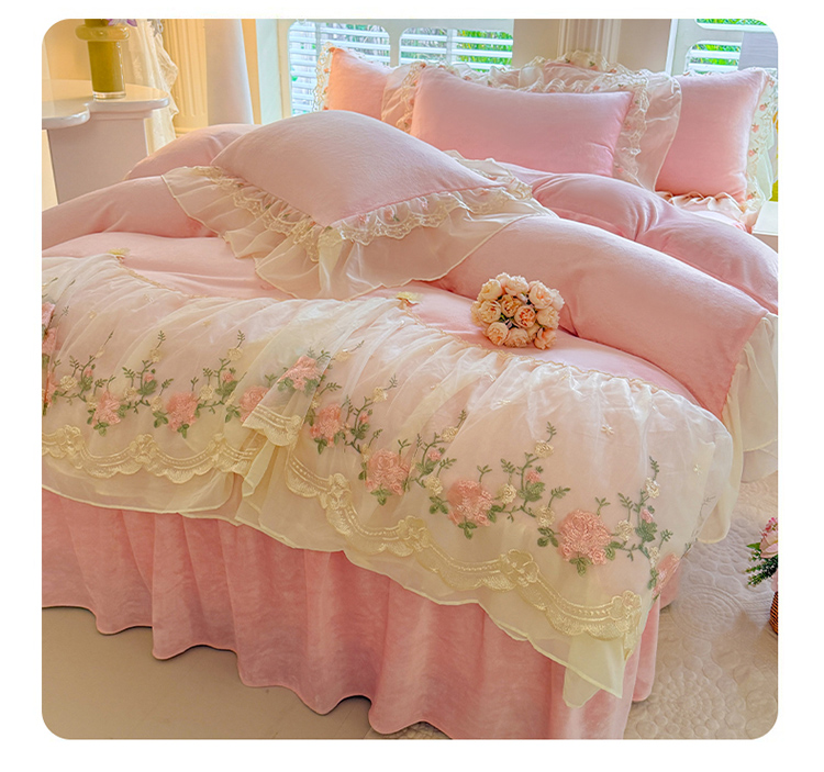 (总)苏米娜家纺SUMINA 2025新款230g高克重韩版立体盘花牛奶蚕丝绒绣花四件套床裙款被套-洛丽塔系列,洛丽塔-嫩黄 ,洛丽塔-香芋紫,洛丽塔-珍珠粉, 洛丽塔-婴儿蓝