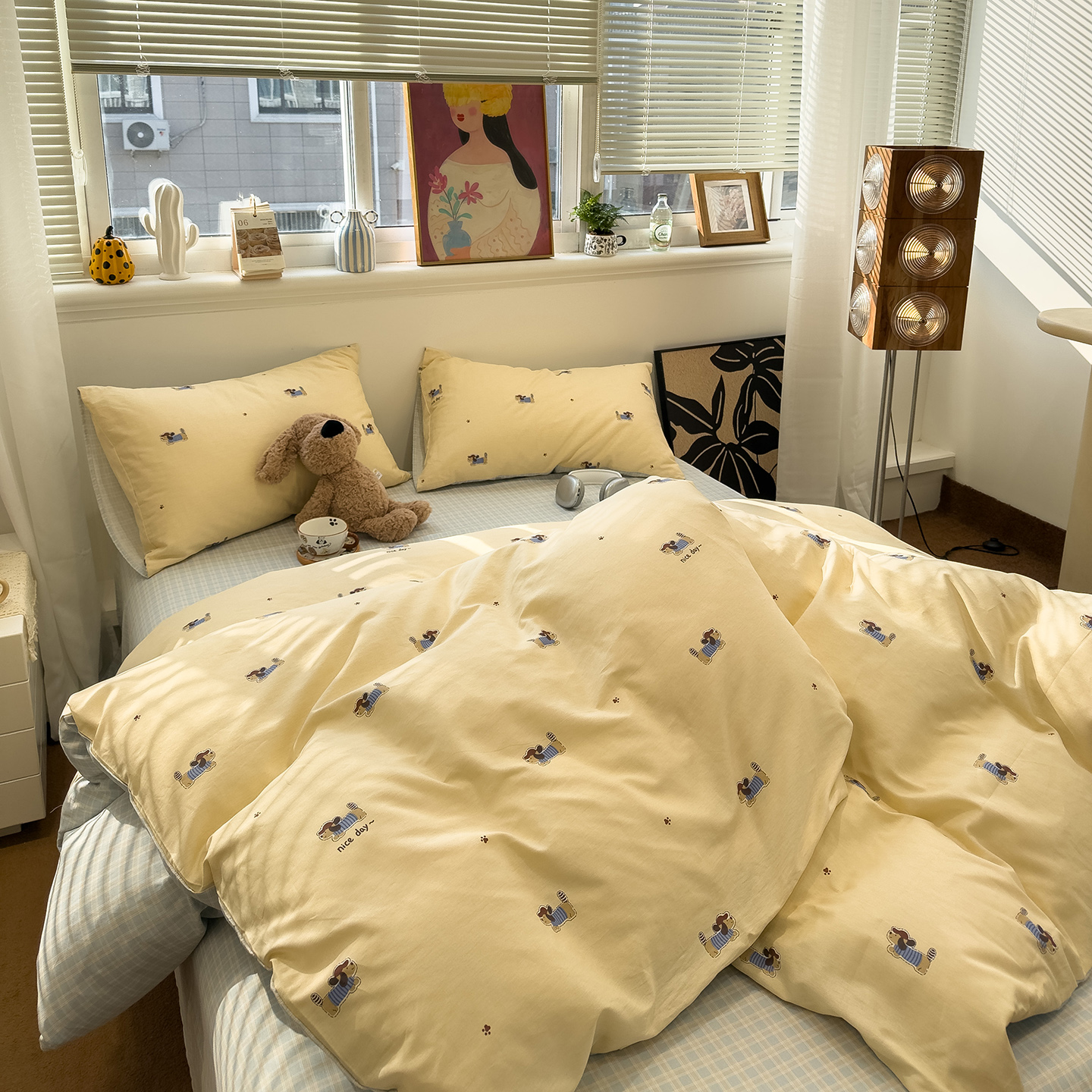 当前位置: 91家纺网 > 商品网购 > 床品套件 > 四件套 > 全棉普通四件套 > 呗旺鹿 2026春夏新款全棉纯棉40支12868卡通ins风四件套 运动小狗