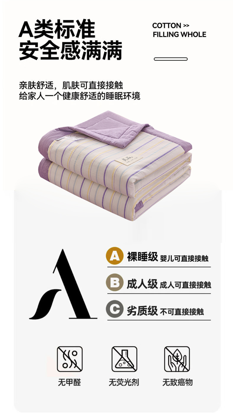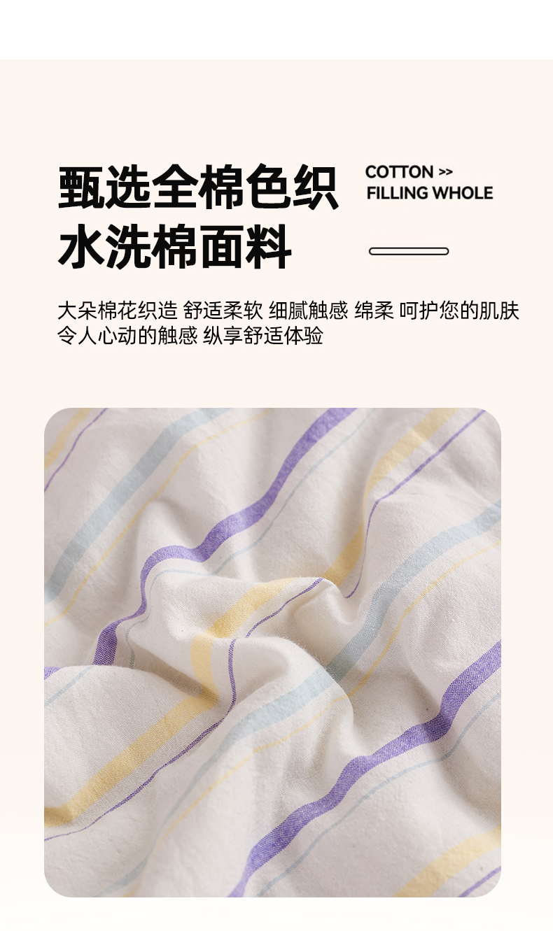 当前位置: 91家纺网 > 商品网购 > 被子 > 夏被 > 尊妙被业 2026全棉色织水洗全棉棉花夏被 被子被芯 夏被四件套(竖条款) 且乐-紫