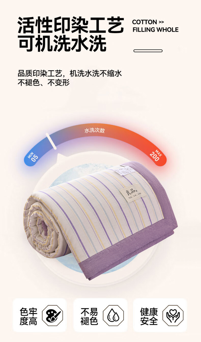 尊妙被业 2026全棉色织水洗全棉棉花夏被 被子被芯 夏被四件套(竖条款) 且乐-紫