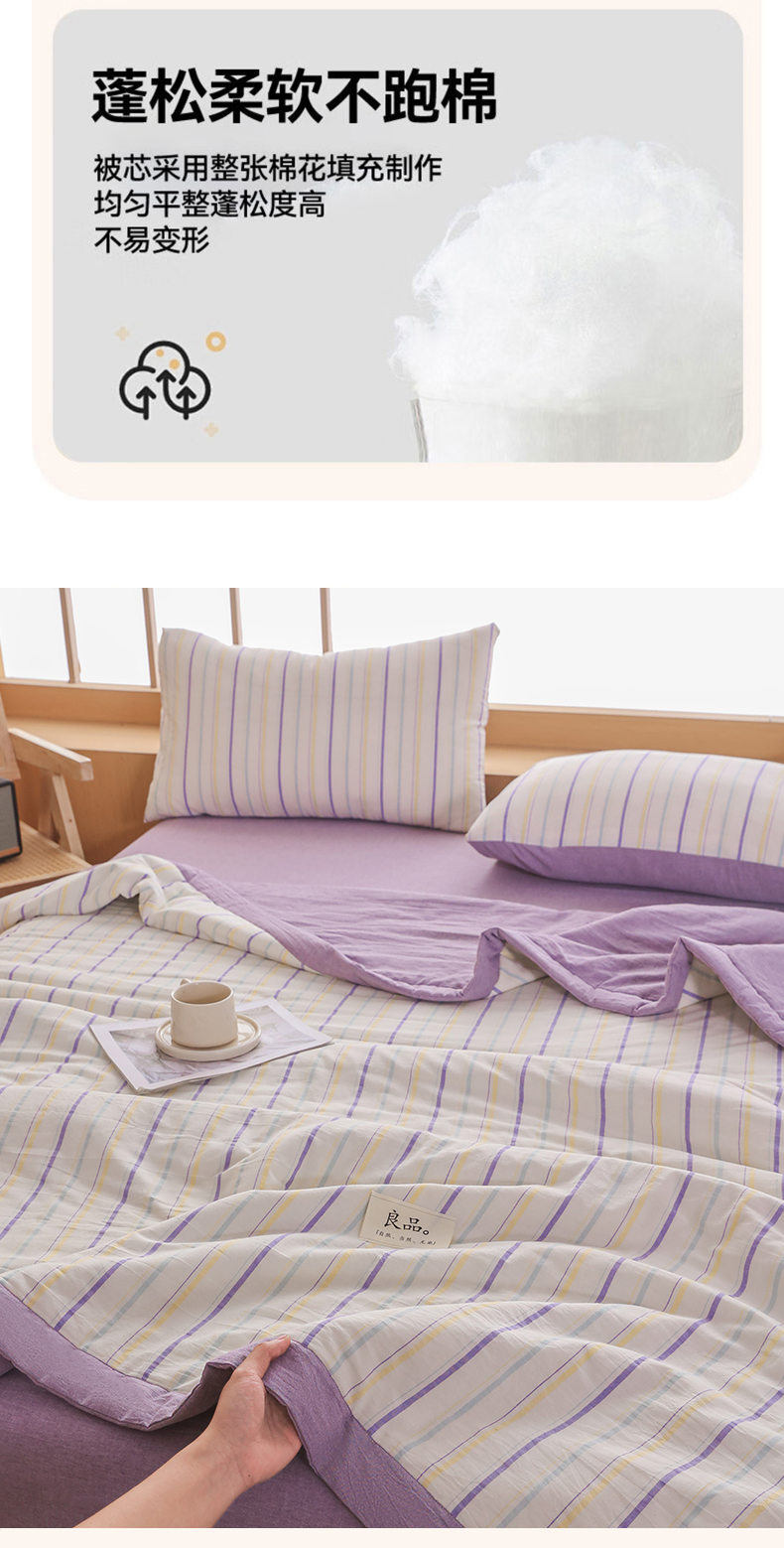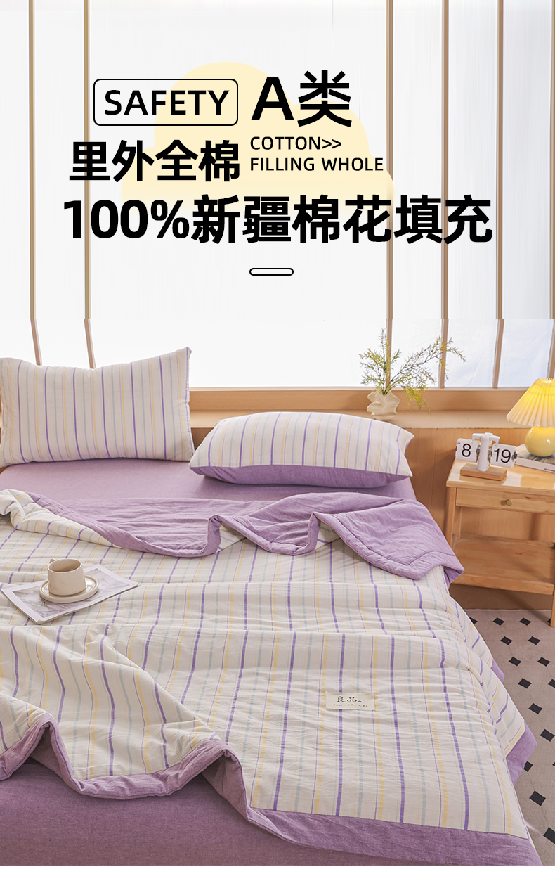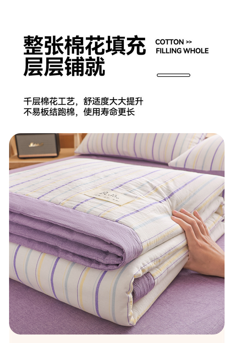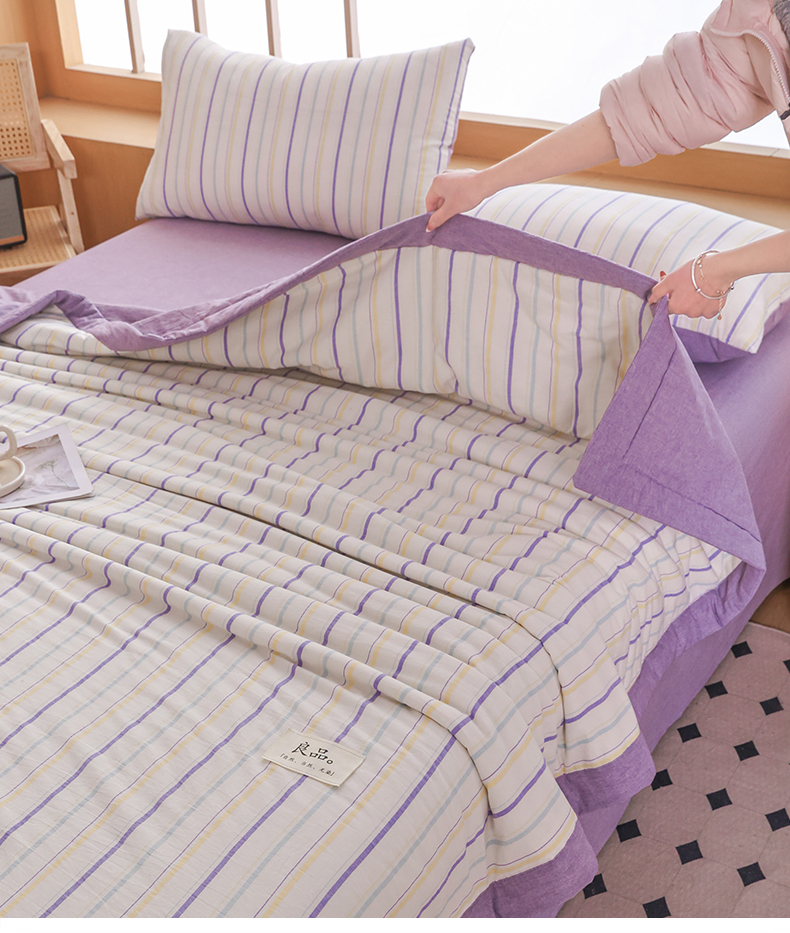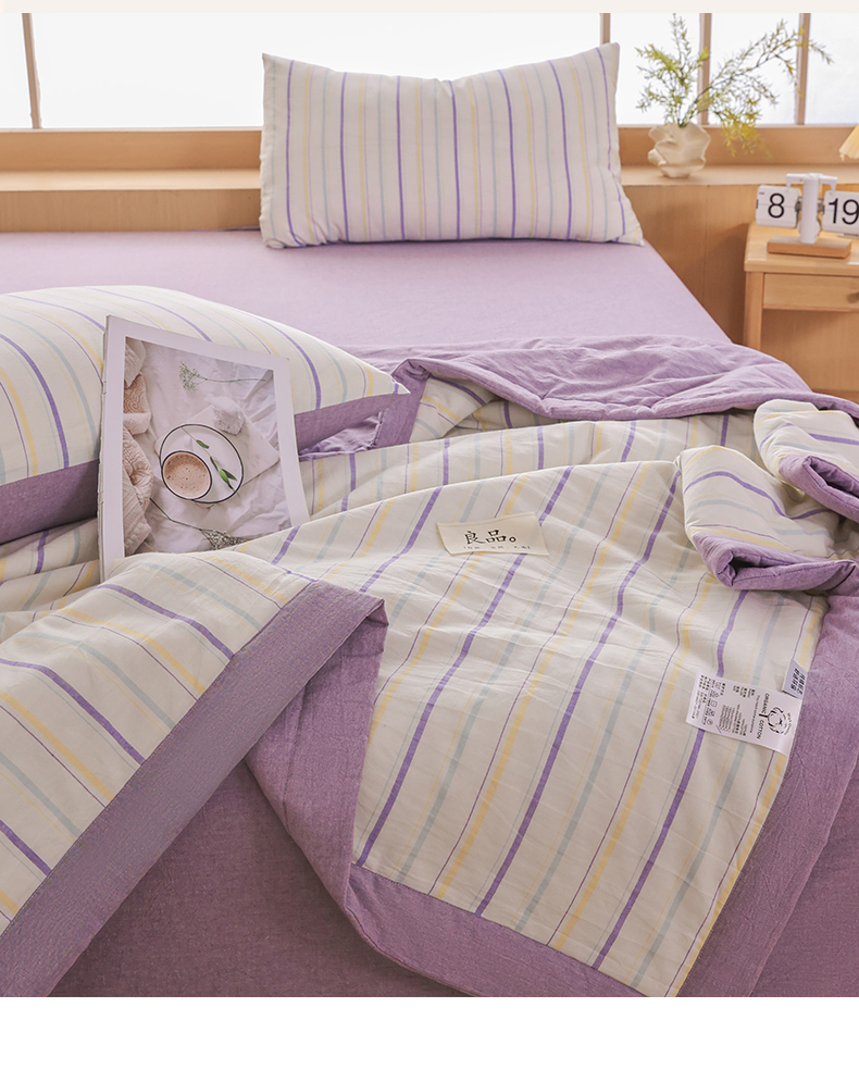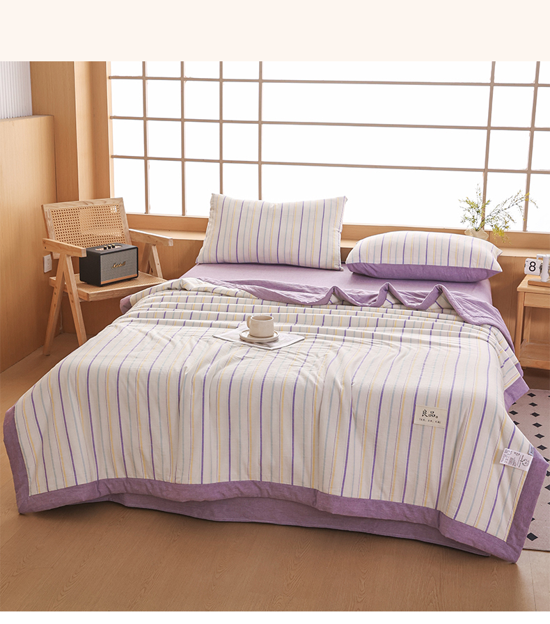 • 91家纺网 家纺一手货源 找家纺 尊妙被业 2026全棉色织水洗全棉棉花夏被 被子被芯 夏被四件套(竖条款) 且乐-紫