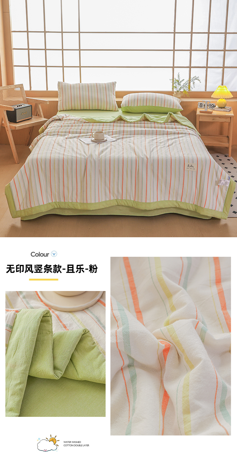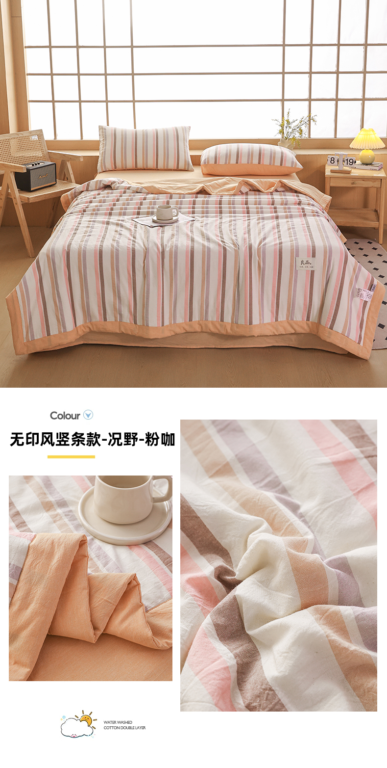 • 91家纺网 家纺一手货源 找家纺 (总)尊妙被业 2026全棉色织水洗全棉棉花夏被 被子被芯 夏被四件套(竖条款),况野-粉咖,且乐-粉,且乐-紫,左岸-绿,BG咖细条,BG蓝风