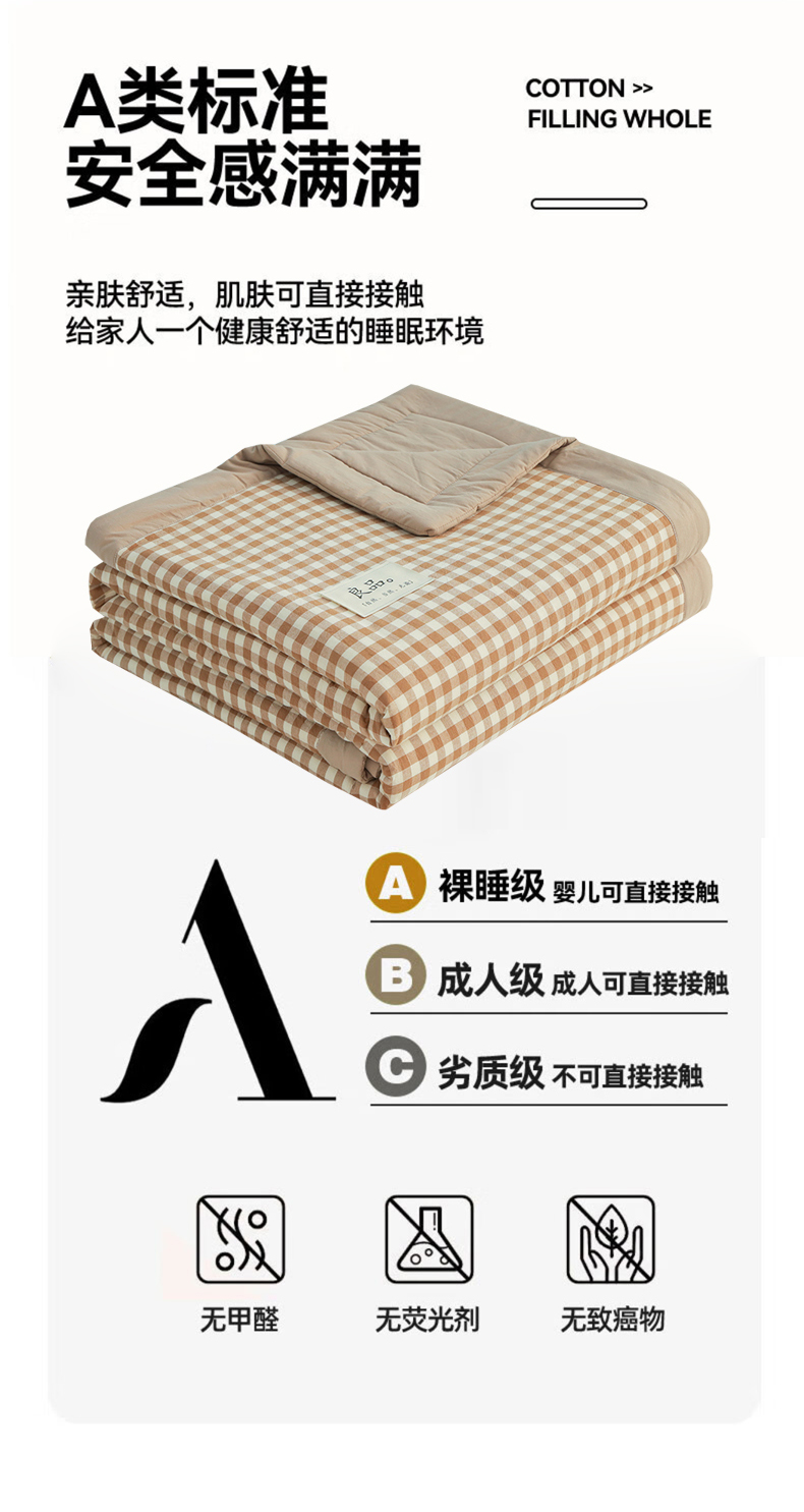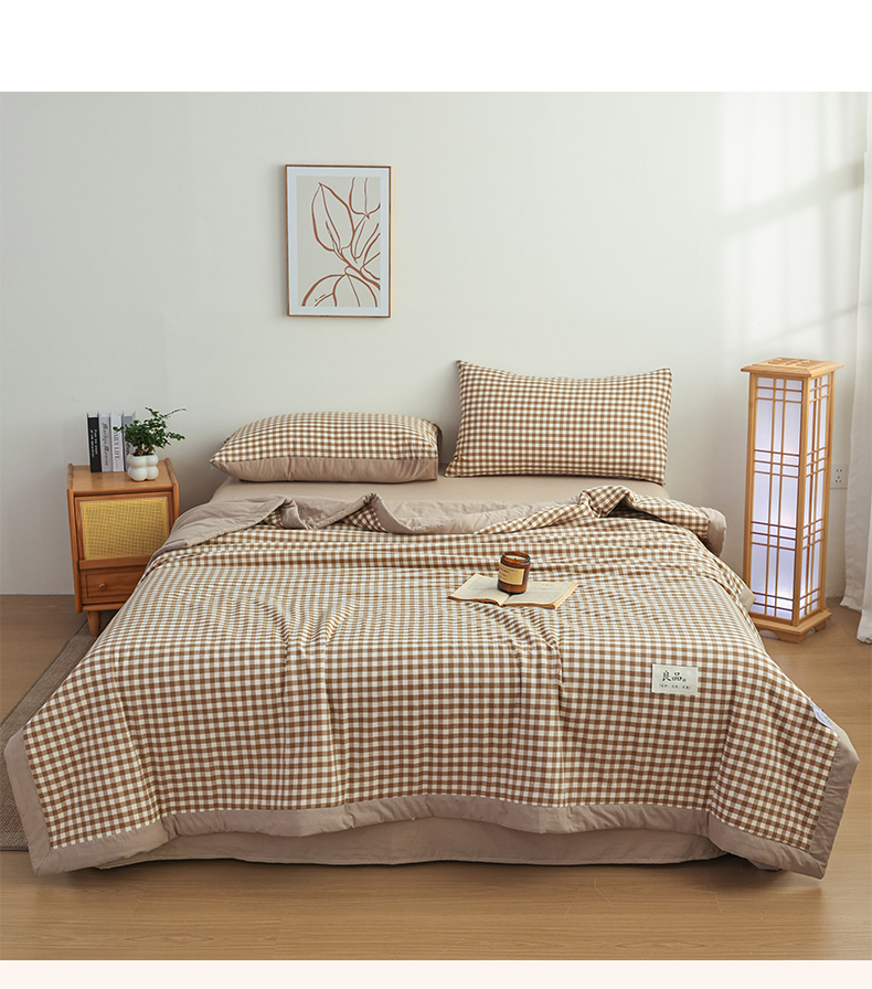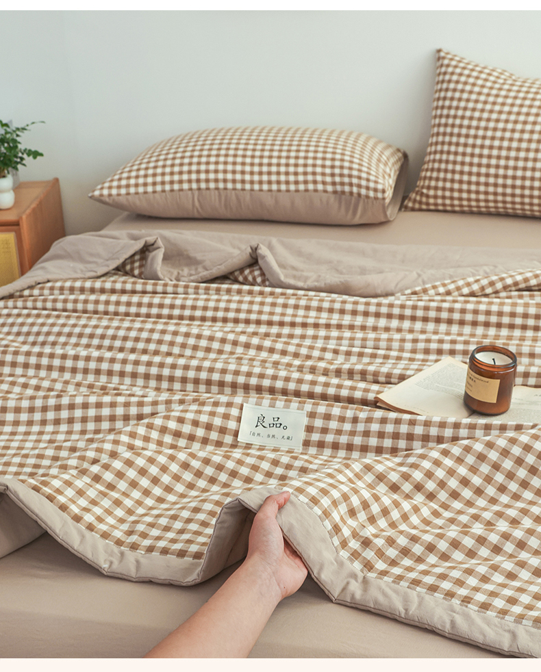 • 91家纺网 家纺一手货源 找家纺 尊妙被业 2026全棉色织水洗全棉棉花夏被 被子被芯 夏被四件套(格子款) 咖小格