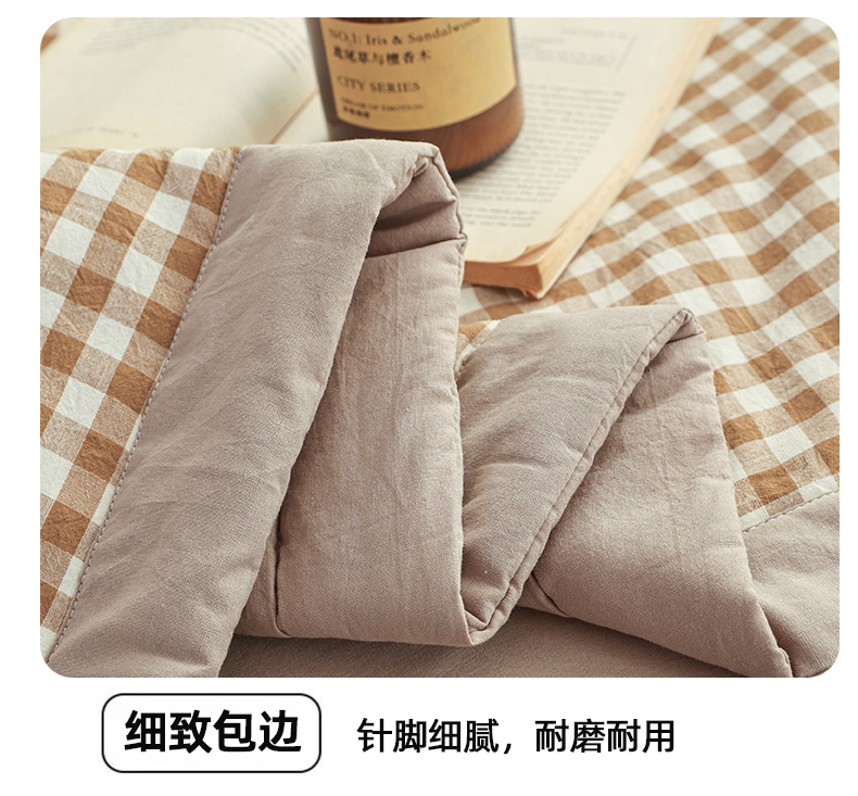尊妙被业 2026全棉色织水洗全棉棉花夏被 被子被芯 夏被四件套(格子款) 咖小格