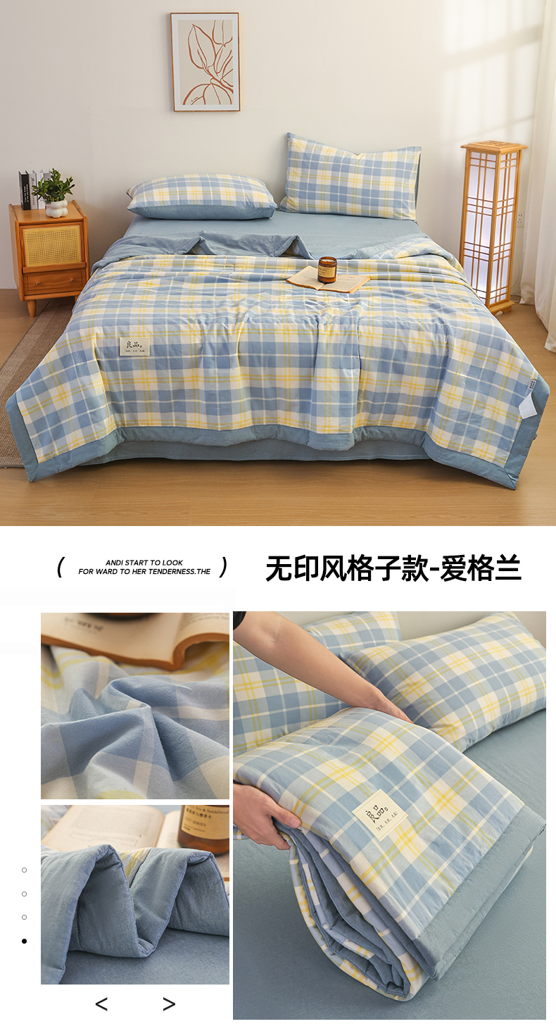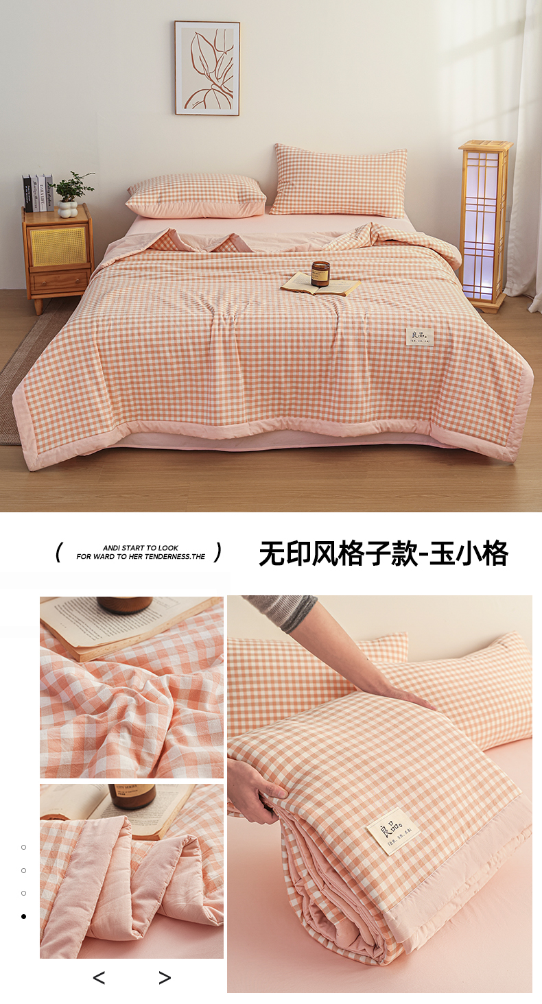 • 91家纺网 家纺一手货源 找家纺 (总)尊妙被业 2026全棉色织水洗全棉棉花夏被 被子被芯 夏被四件套(格子款),贝拉咖,爱格,爱格兰,爱格绿,潮格白,粉小格,咖小格,蓝小格,绿小格