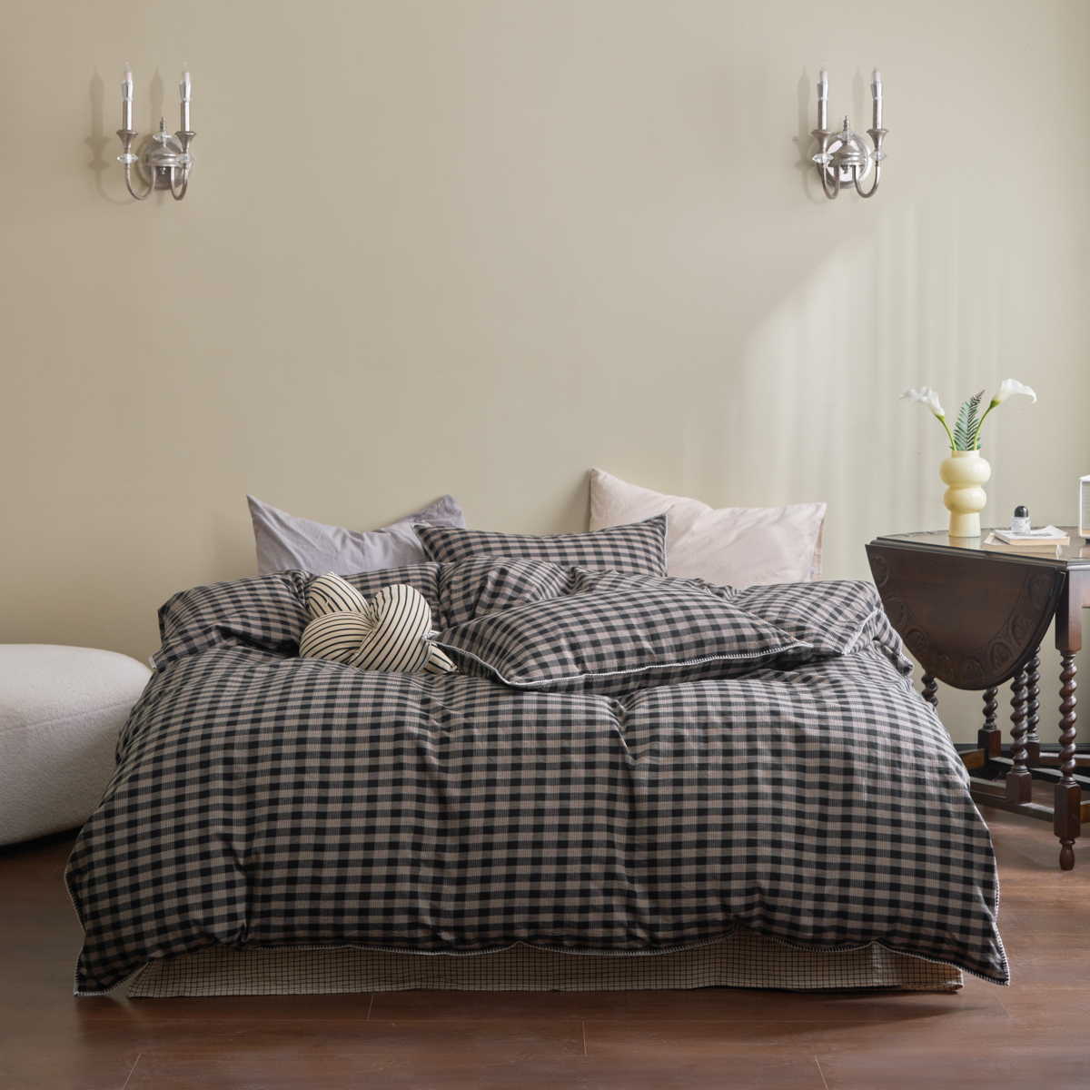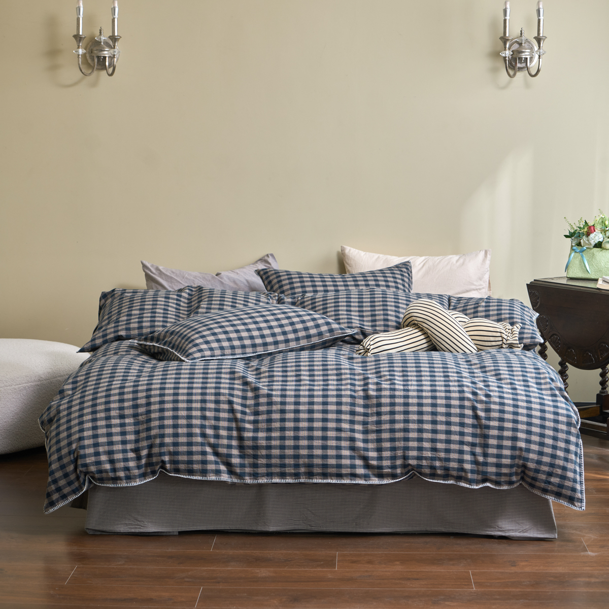(总)洋铭区 2023新款色织水洗棉格子四件套,牛油果格,青桃格,山竹格,香橙格