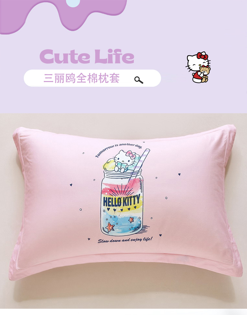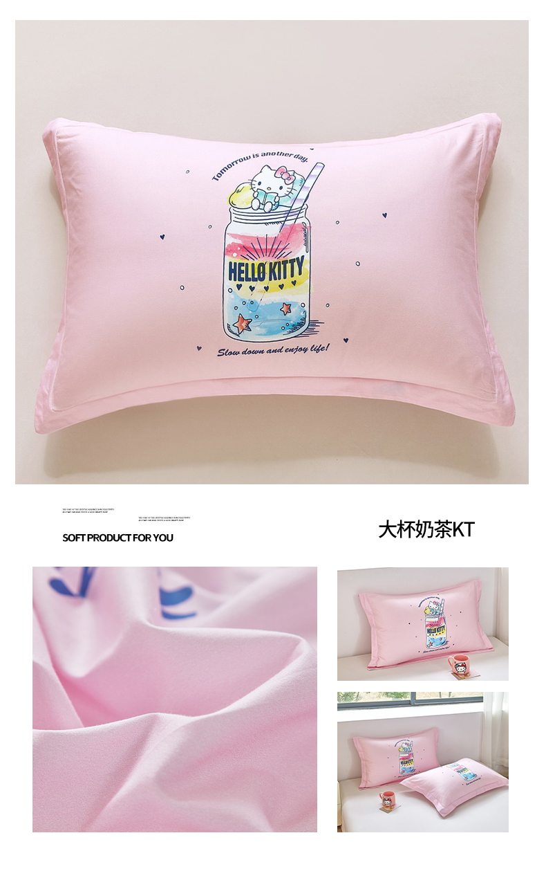 商品名称:蘭菲家纺 2026新款全棉三丽欧印花卡通单品枕套 大杯奶茶KT