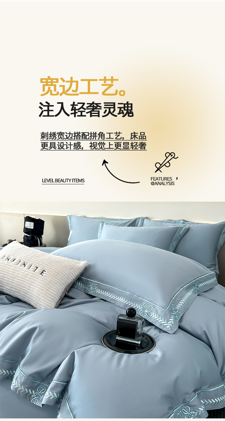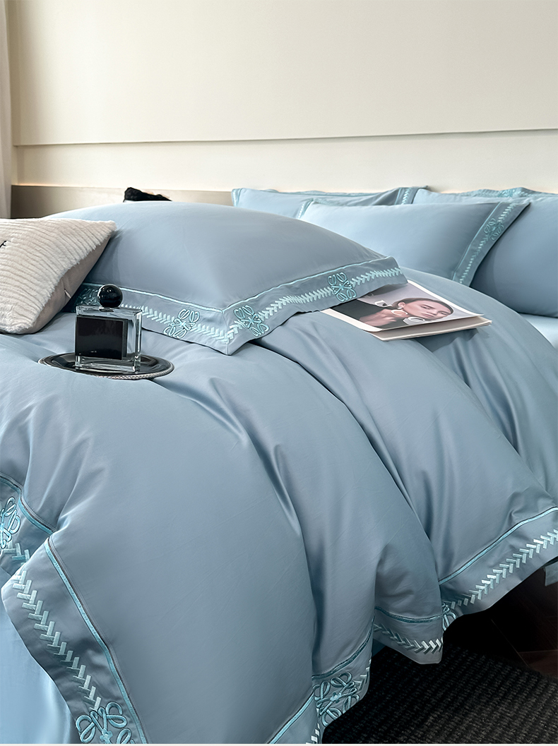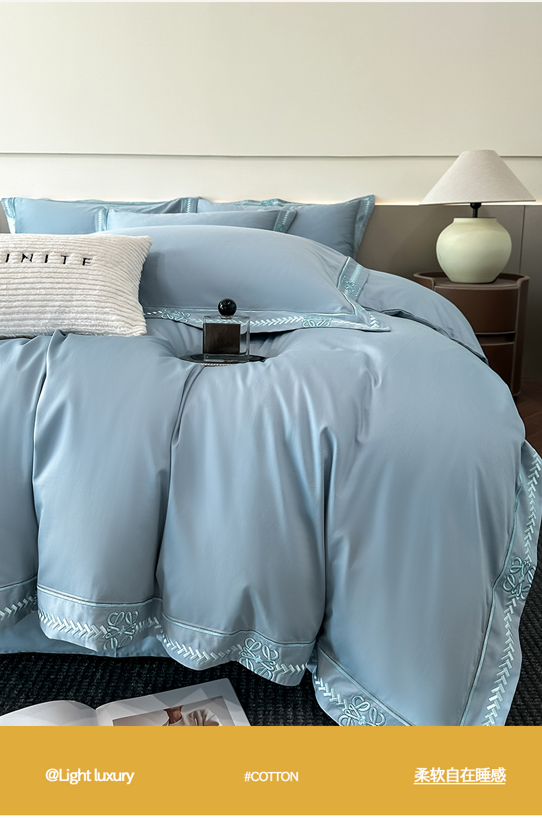当前位置: 91家纺网 > 商品网购 > 床品套件 > 四件套 > 其它四件套 > 置顶家纺 2026春夏新款多伦多系列亲肤刺绣拼角四件套 多伦多-天蓝