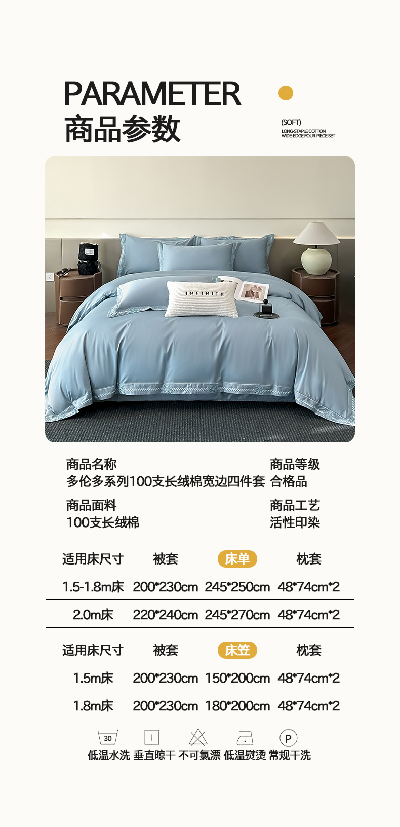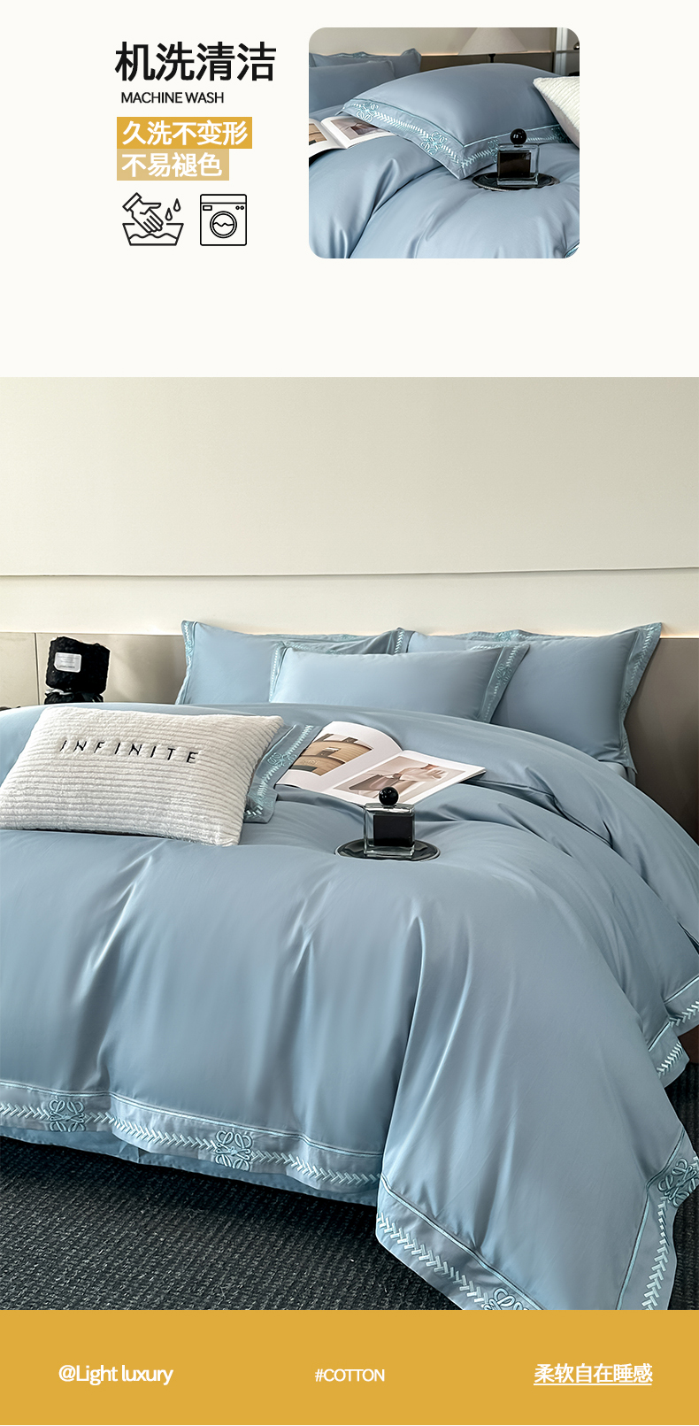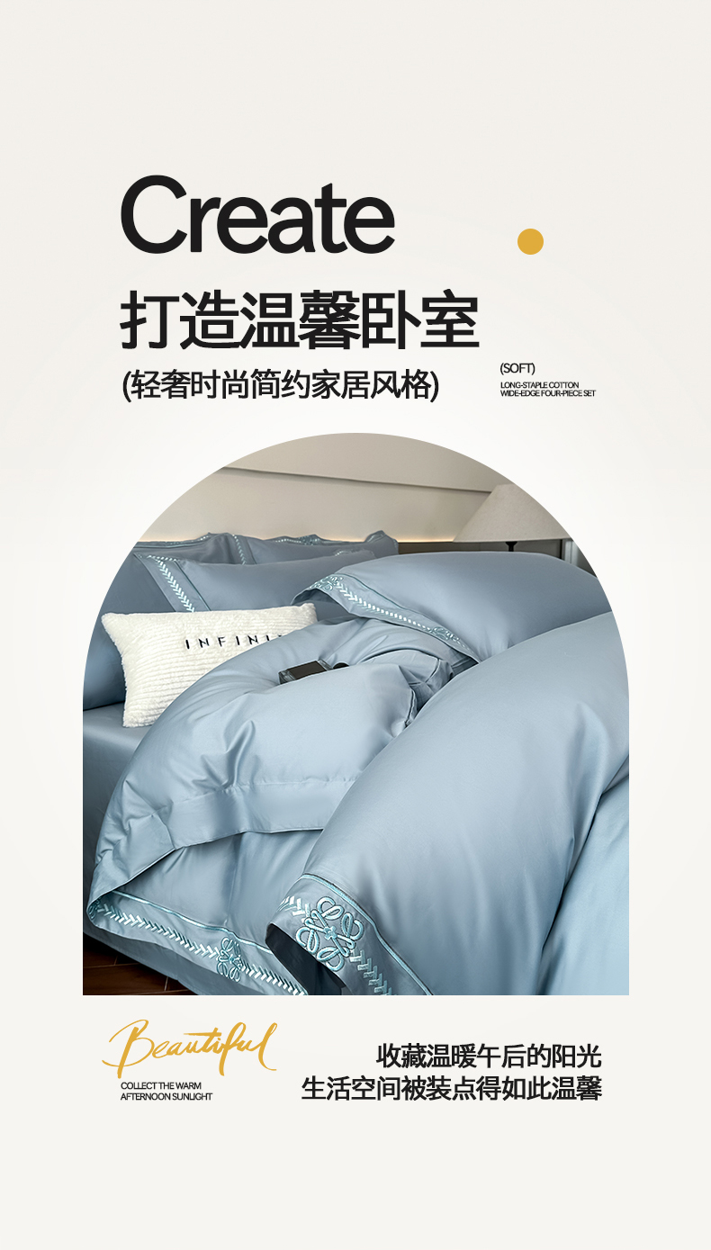 当前位置: 91家纺网 > 商品网购 > 床品套件 > 四件套 > 其它四件套 > 置顶家纺 2026春夏新款多伦多系列亲肤刺绣拼角四件套 多伦多-天蓝