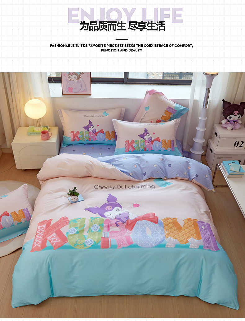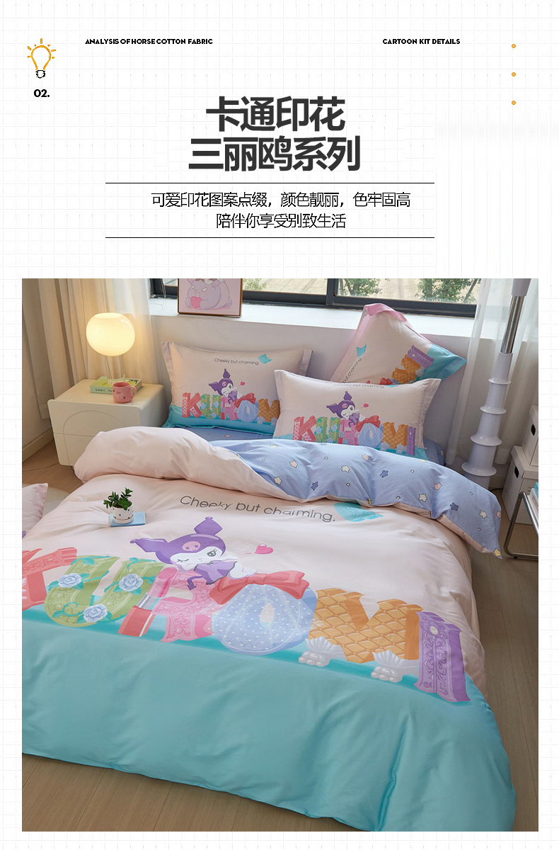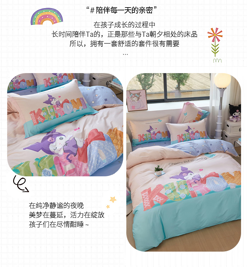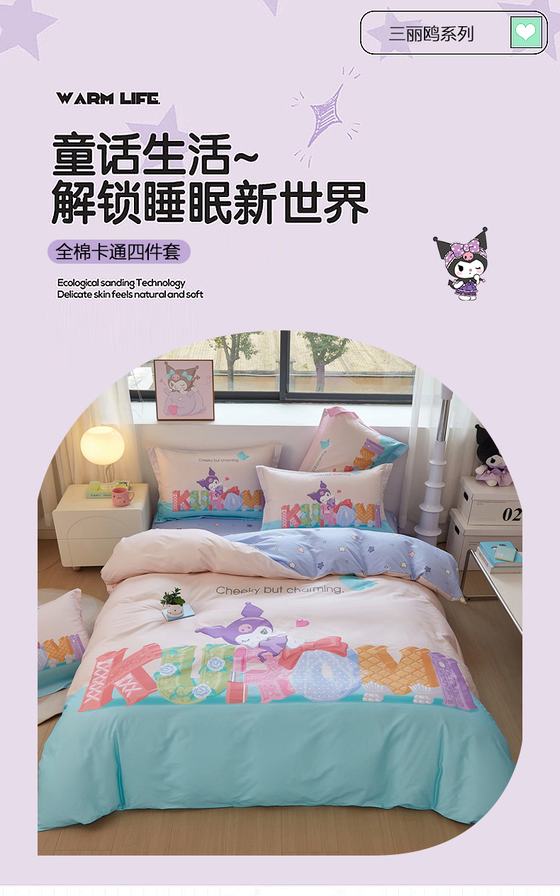 当前位置: 91家纺网 > 商品网购 > 床品套件 > 四件套 > 全棉普通四件套 > 蘭菲家纺 2026新款全棉三丽欧印花卡通四件套 快乐小库