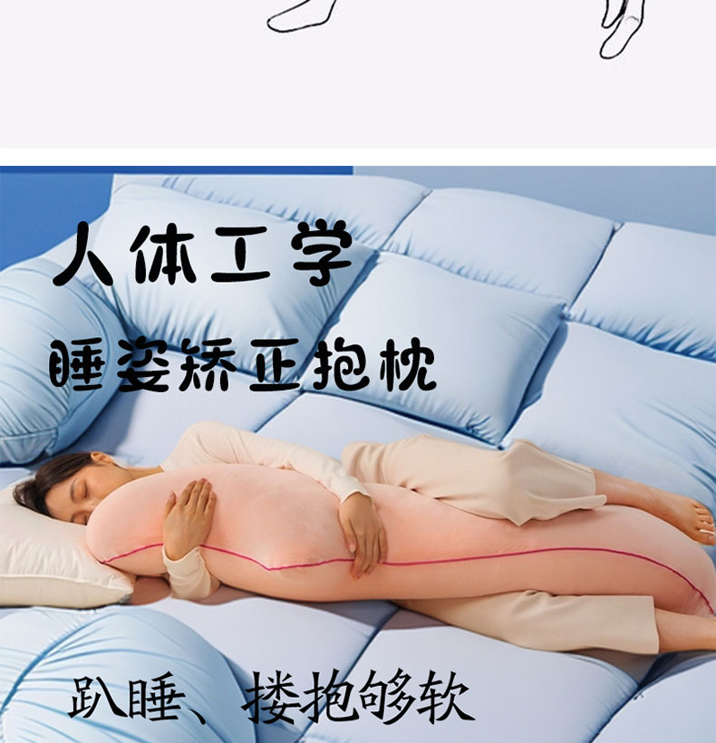 (总)2025新款四面弹冰丝人体工学睡姿矫正抱枕829,829粉色,829灰色,829蓝色