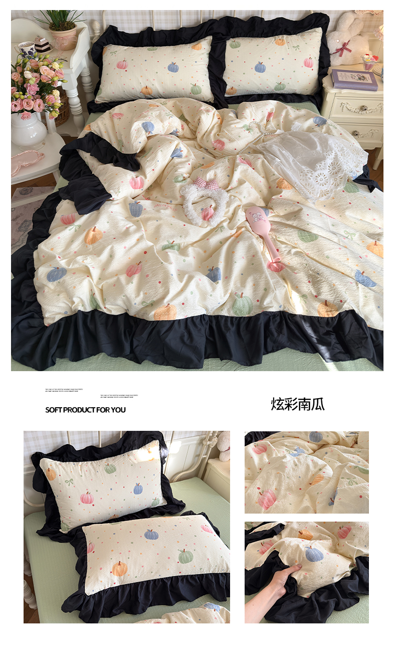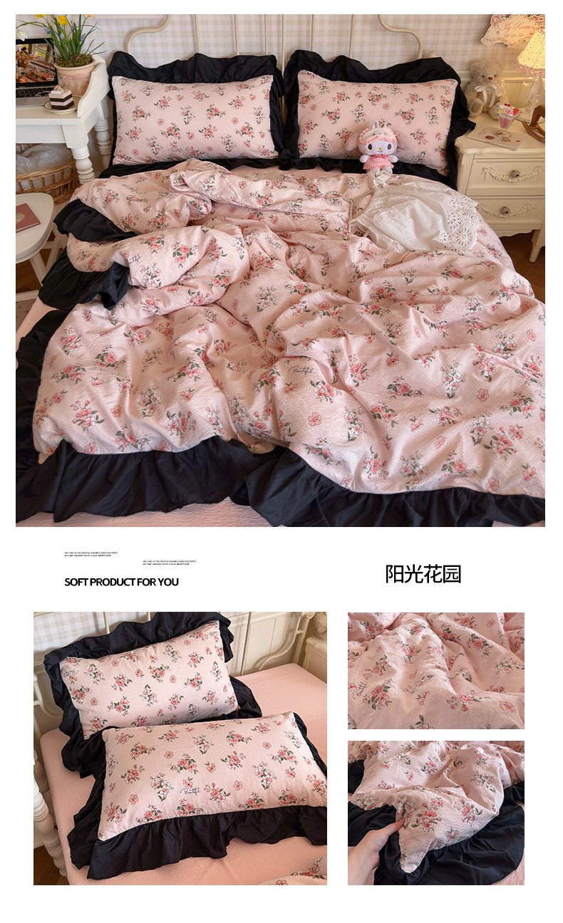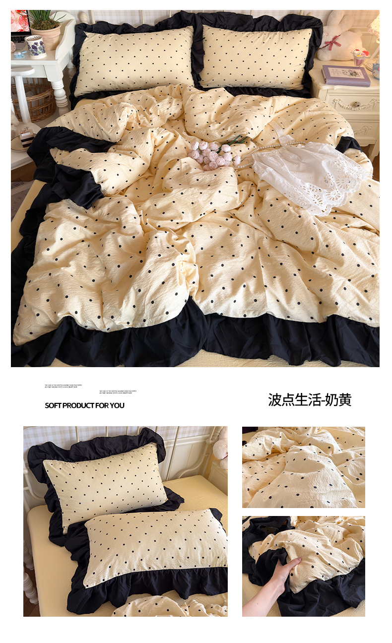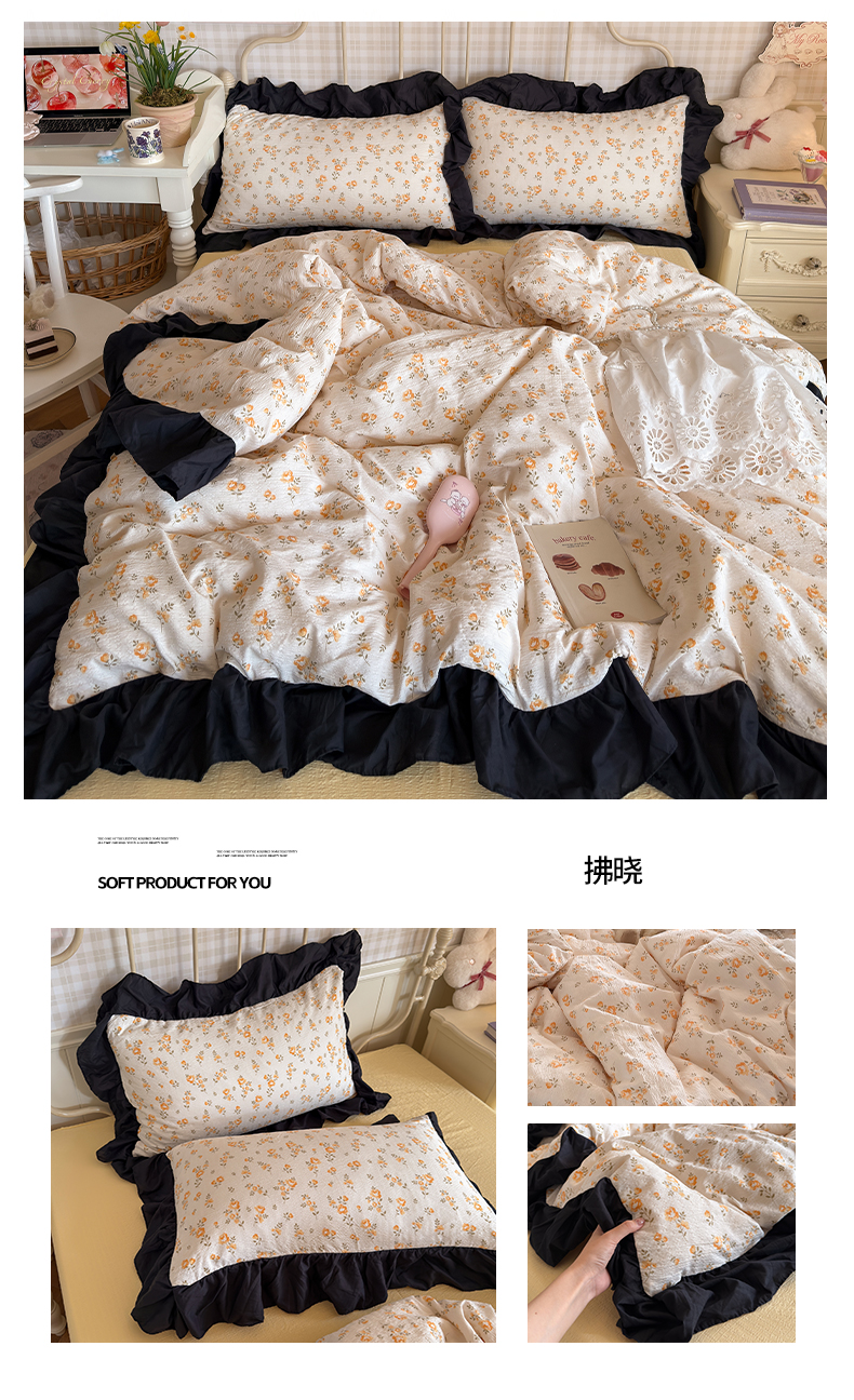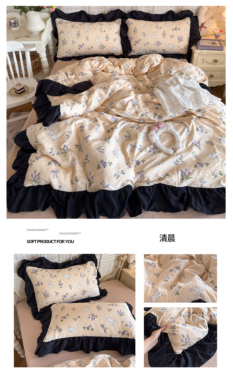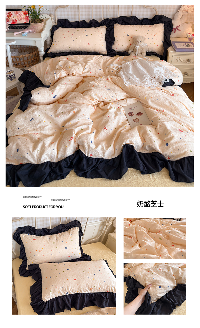 商品名称:(总)优卡迪家纺馆 2026新款皱皱棉双层纱黑花边四件套下载文件包含买家秀
