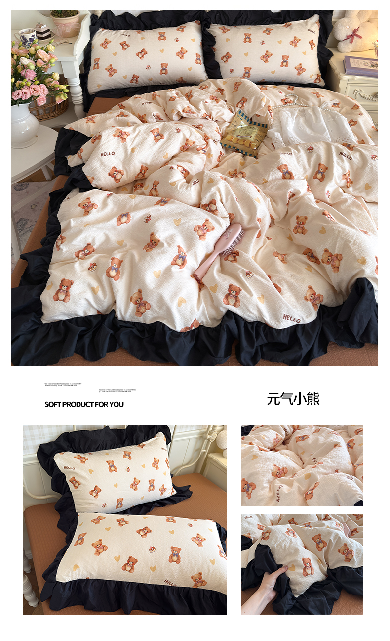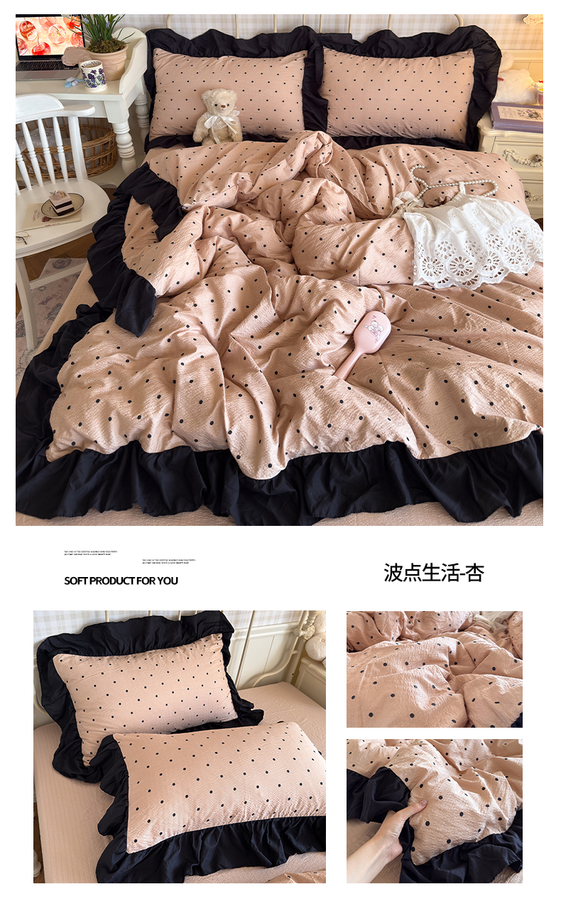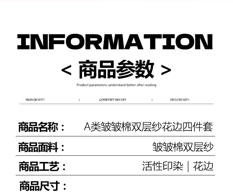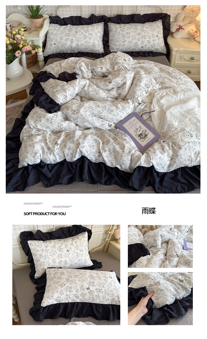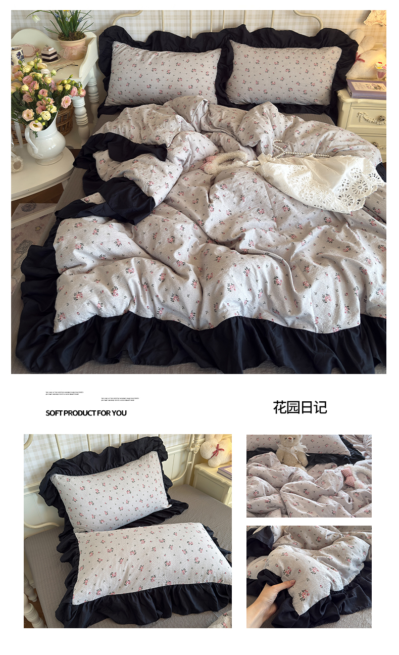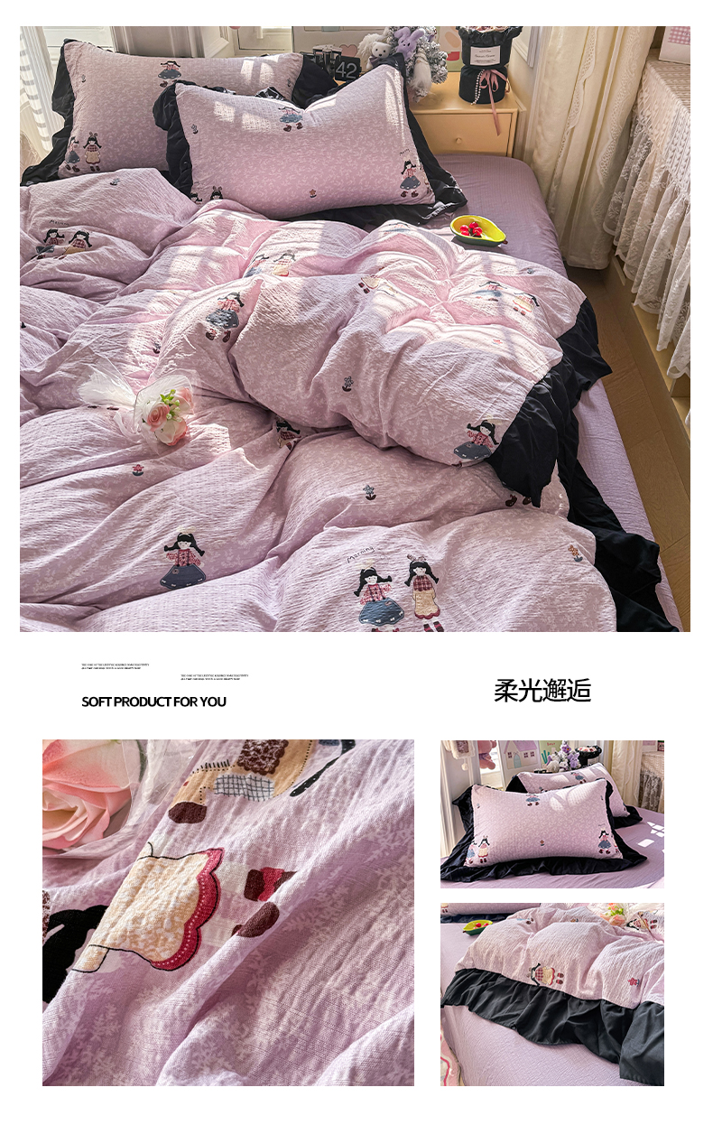 商品名称:(总)优卡迪家纺馆 2026新款皱皱棉双层纱黑花边四件套下载文件包含买家秀